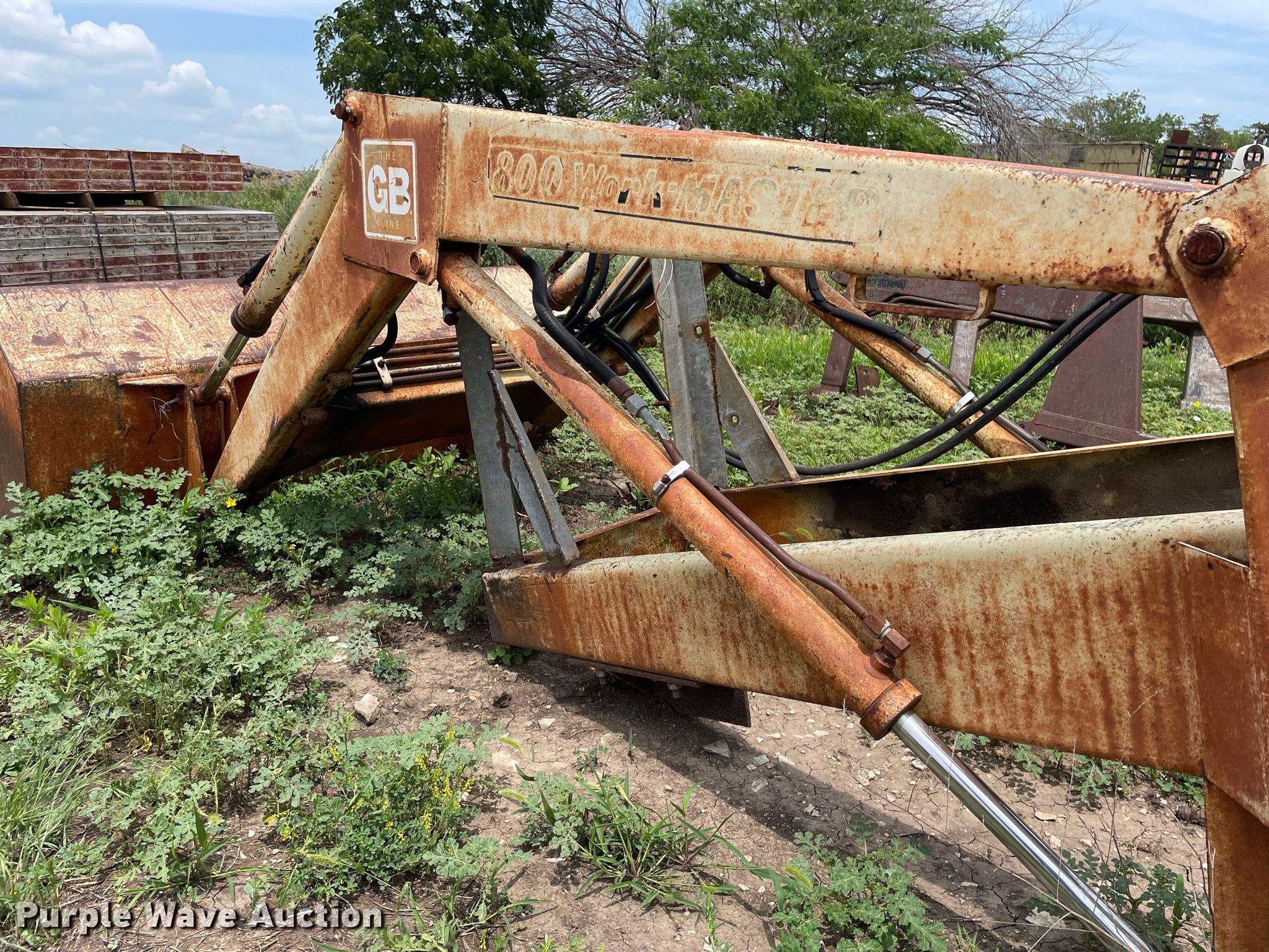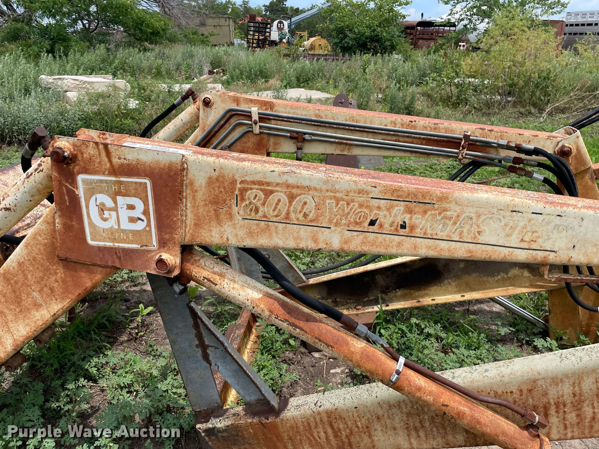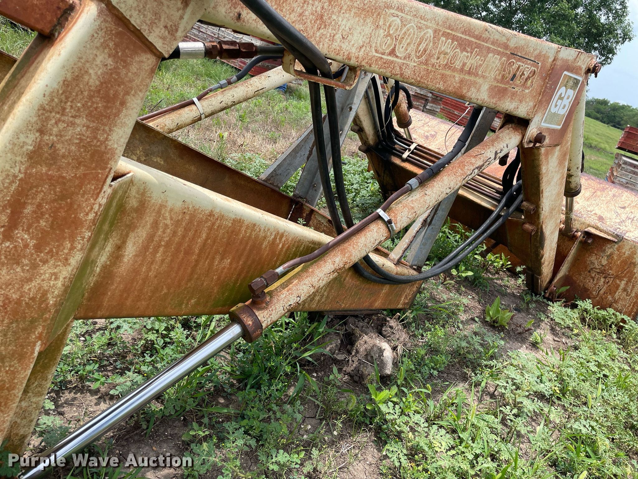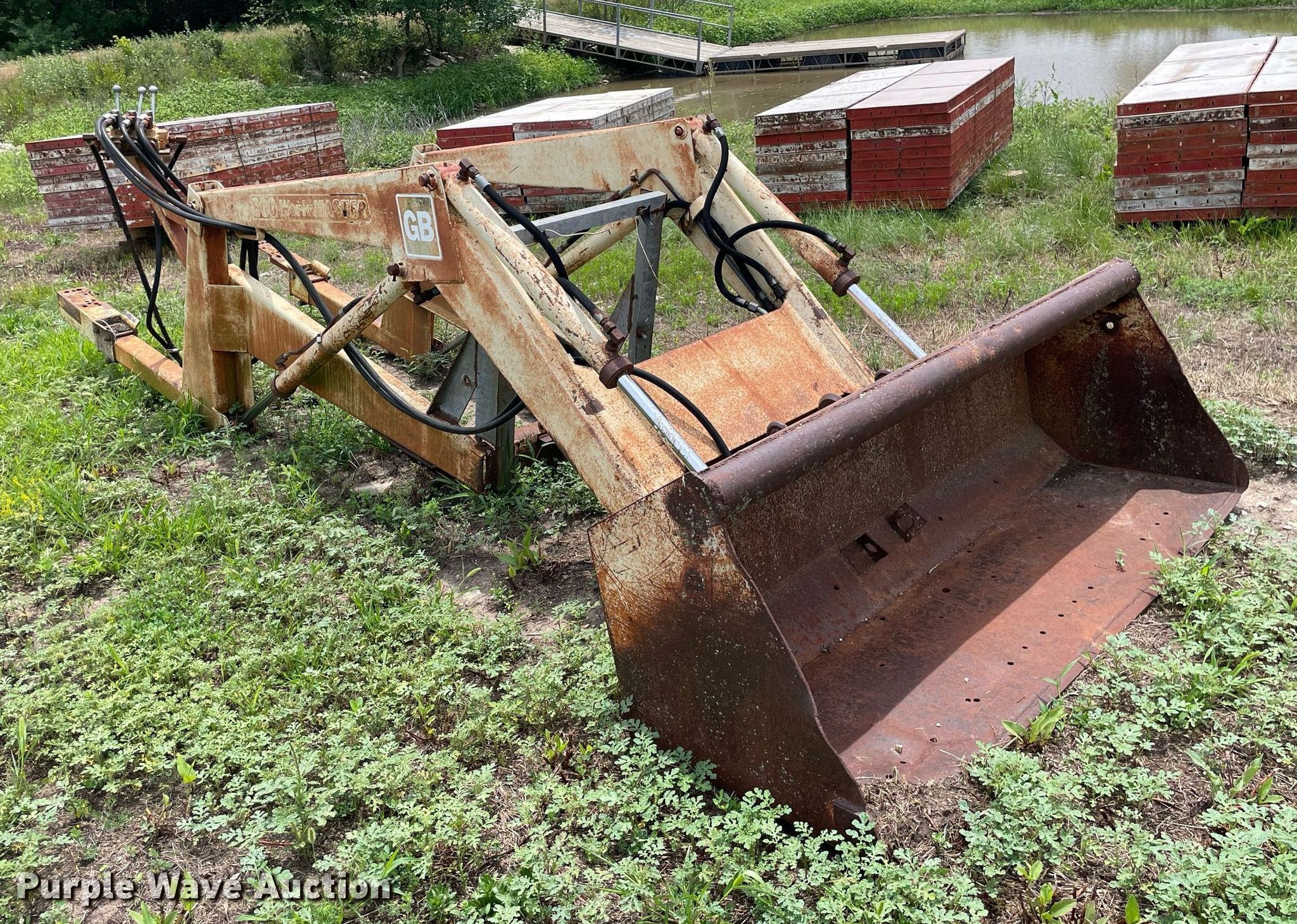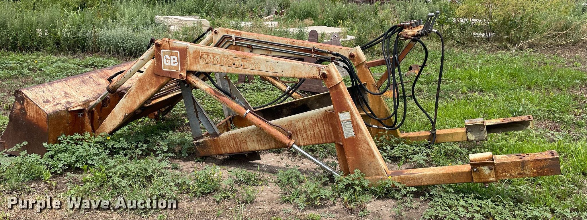 Purple Wave is selling a used Ag Tractor Loader or Attach. in Kansas. This item is a GB Workmaster 800 loader with the following: Controls: Two lever, Bucket, Width: 72"