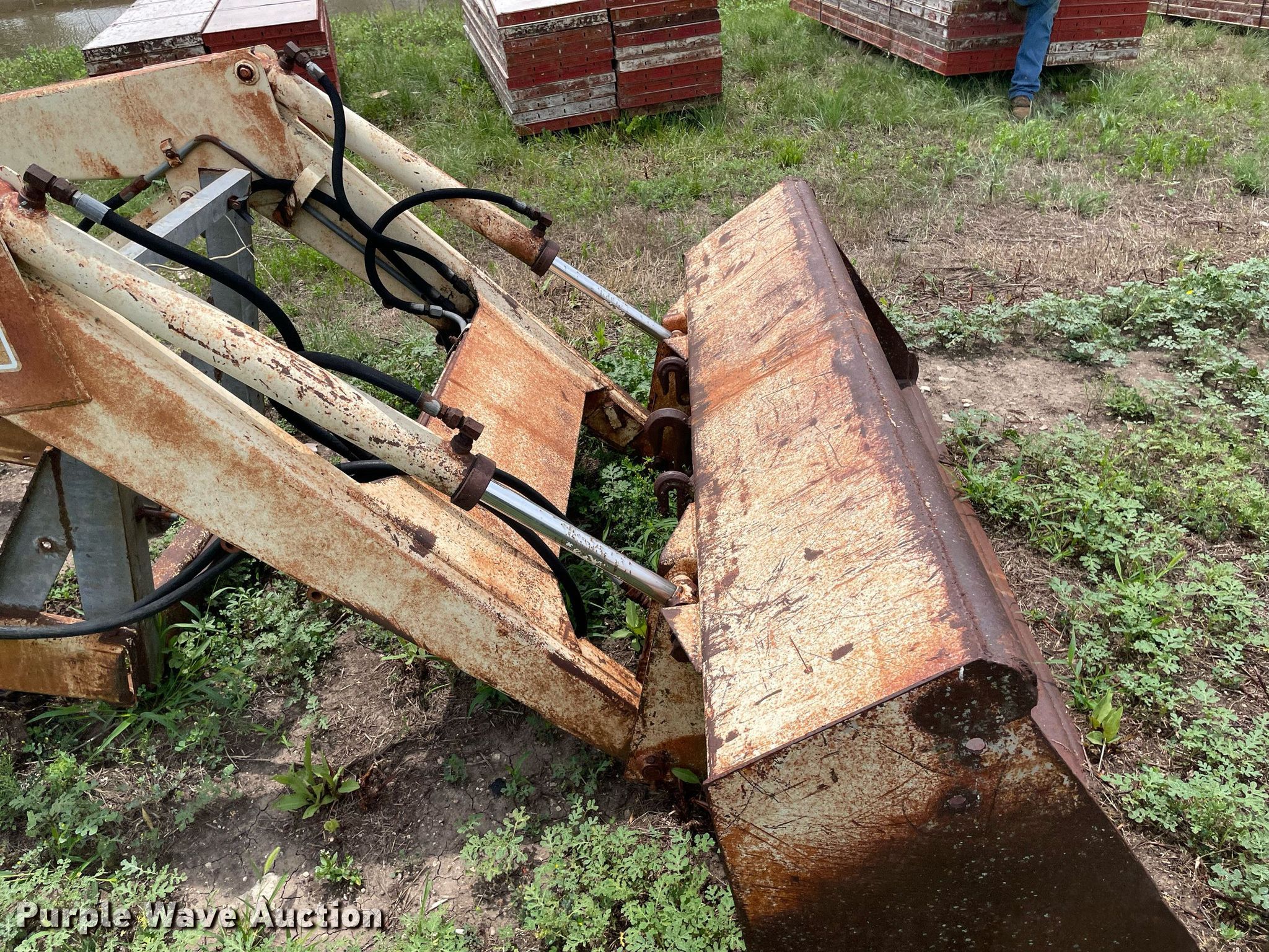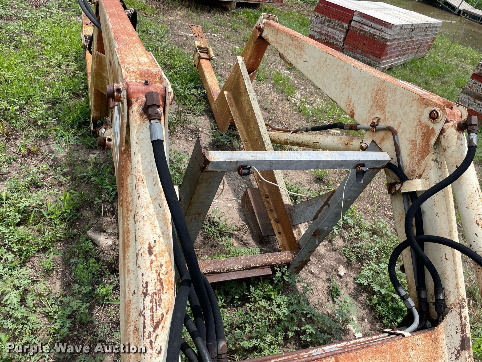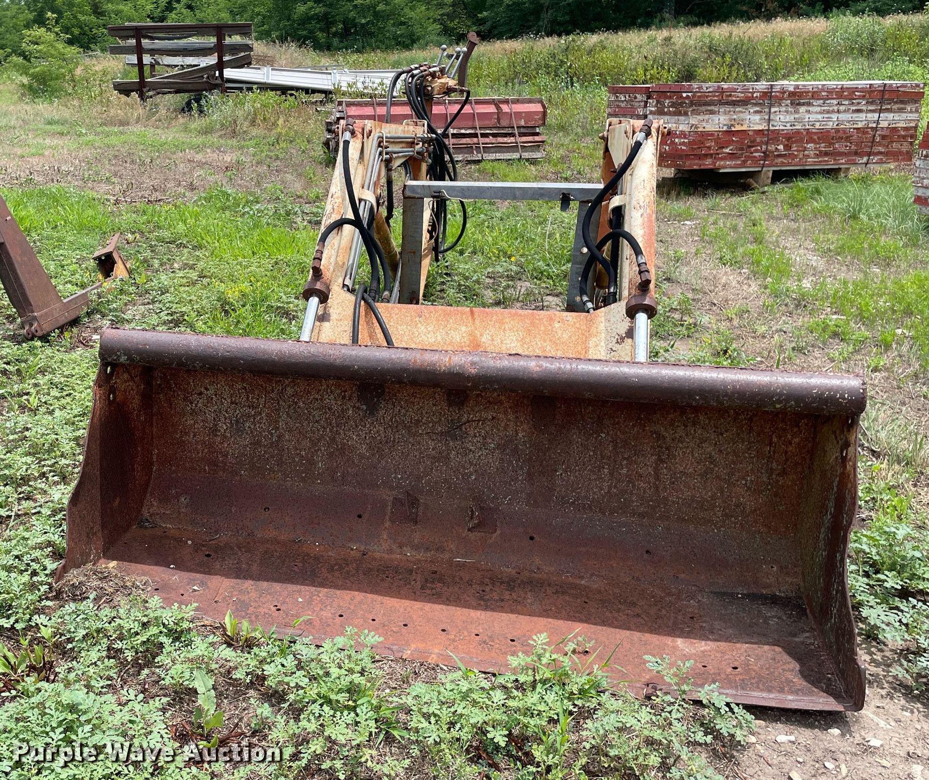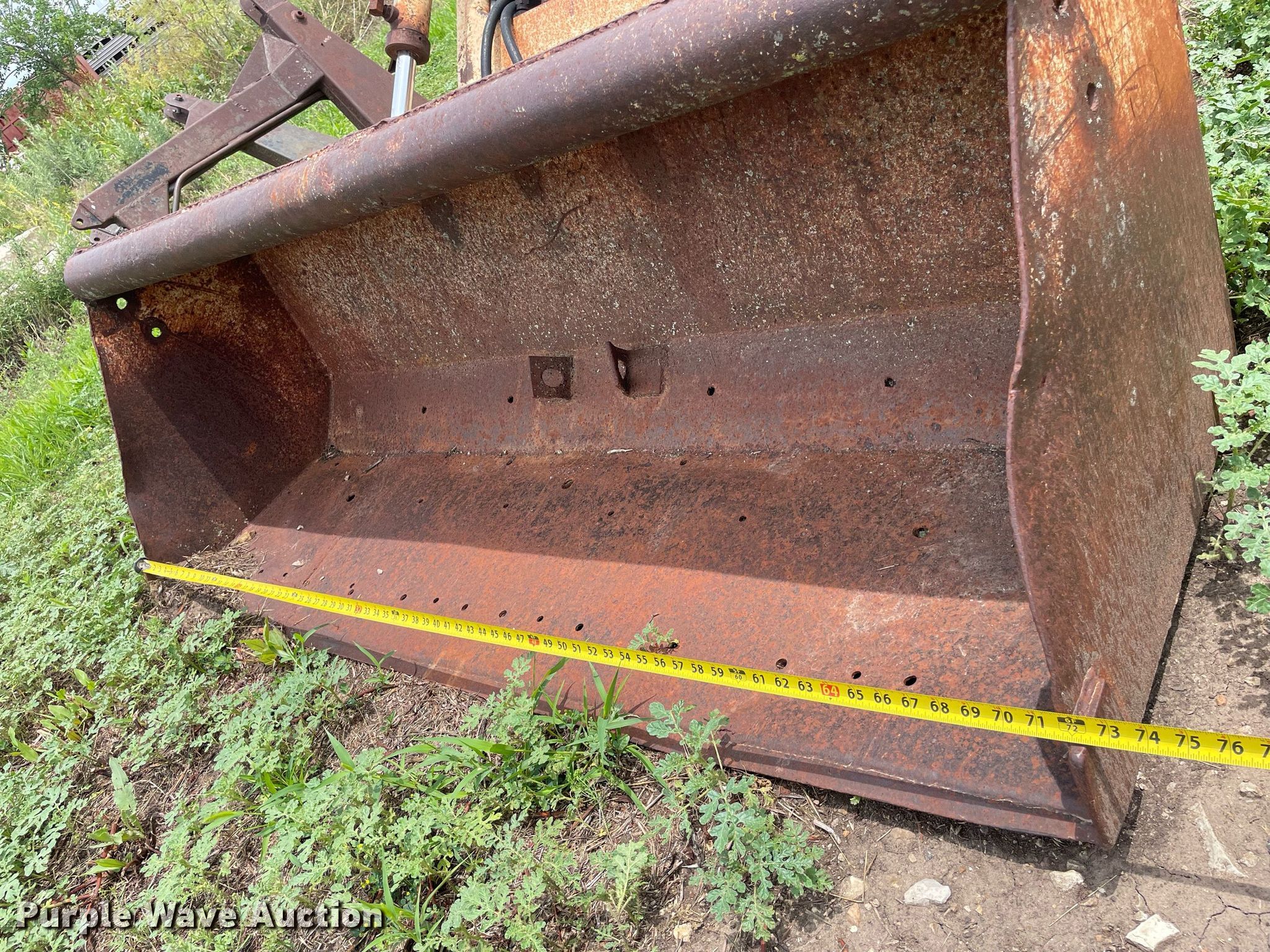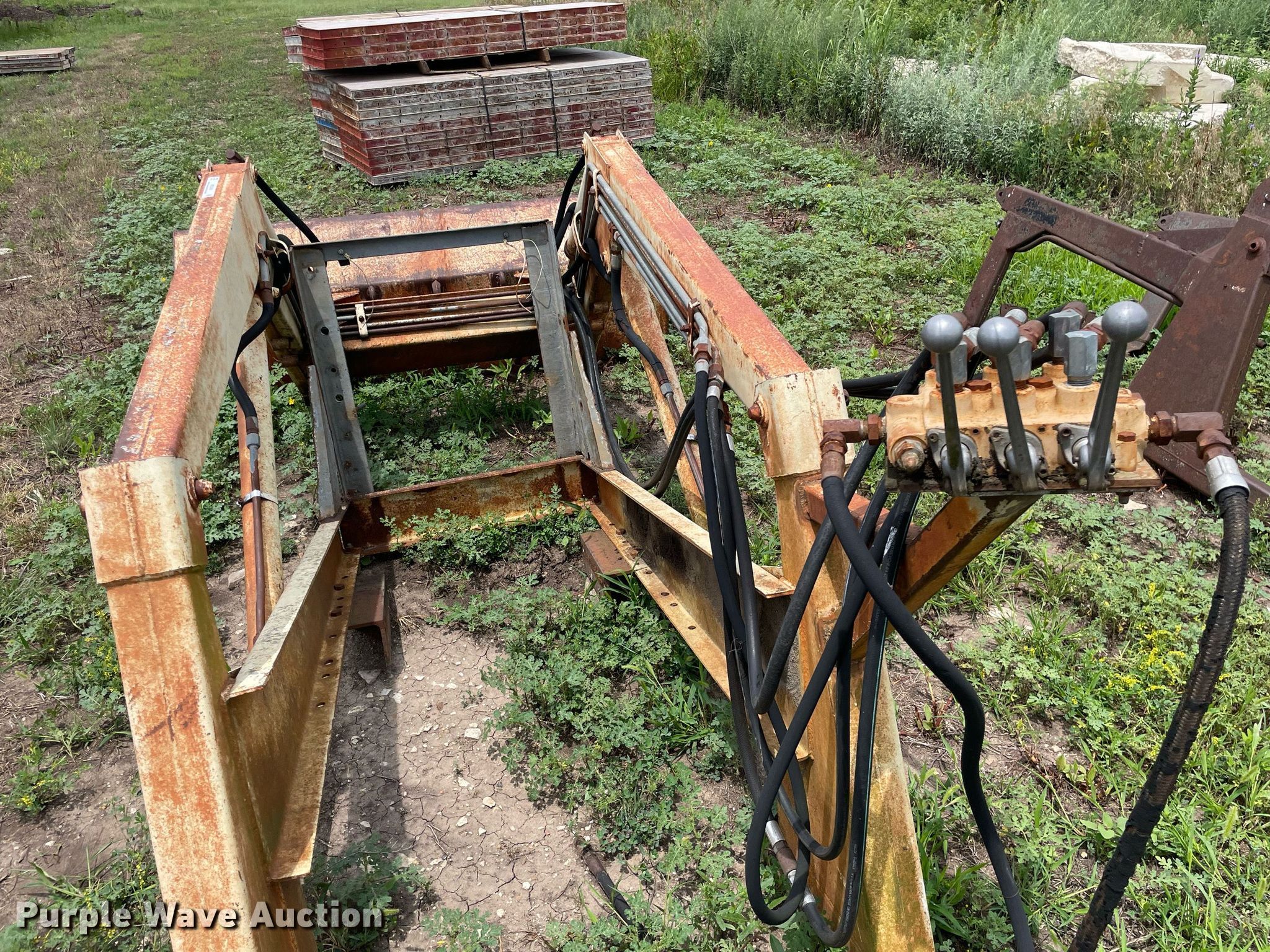 Purple Wave is selling a used Ag Tractor Loader or Attach. in Kansas. This item is a GB Workmaster 800 loader with the following: Controls: Two lever, Bucket, Width: 72"