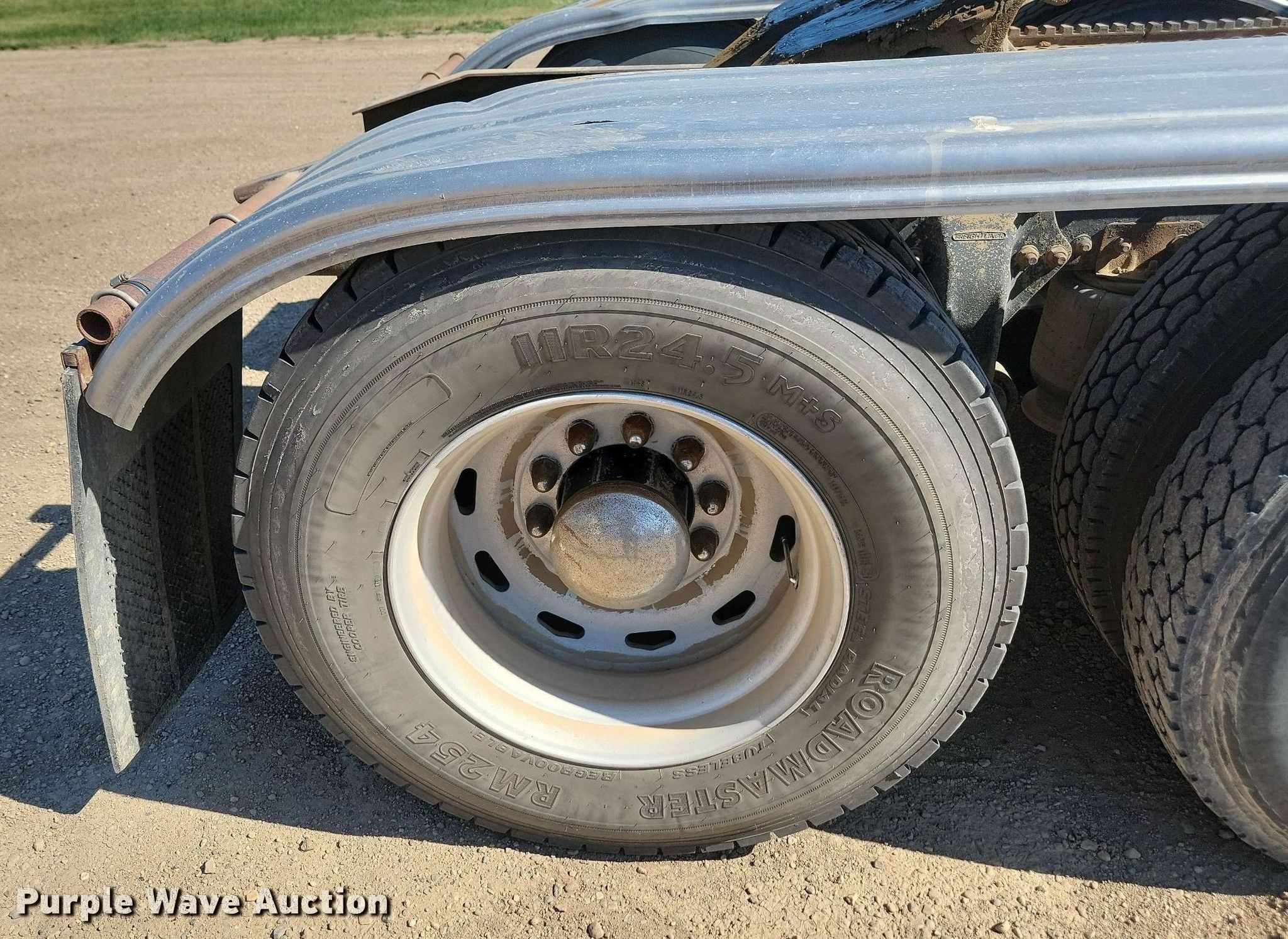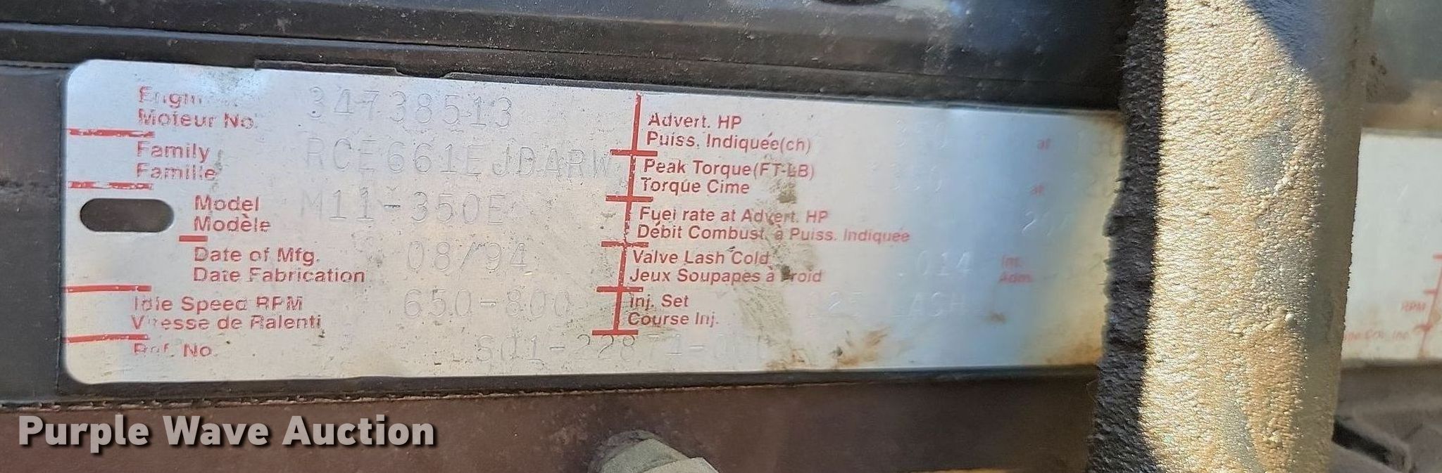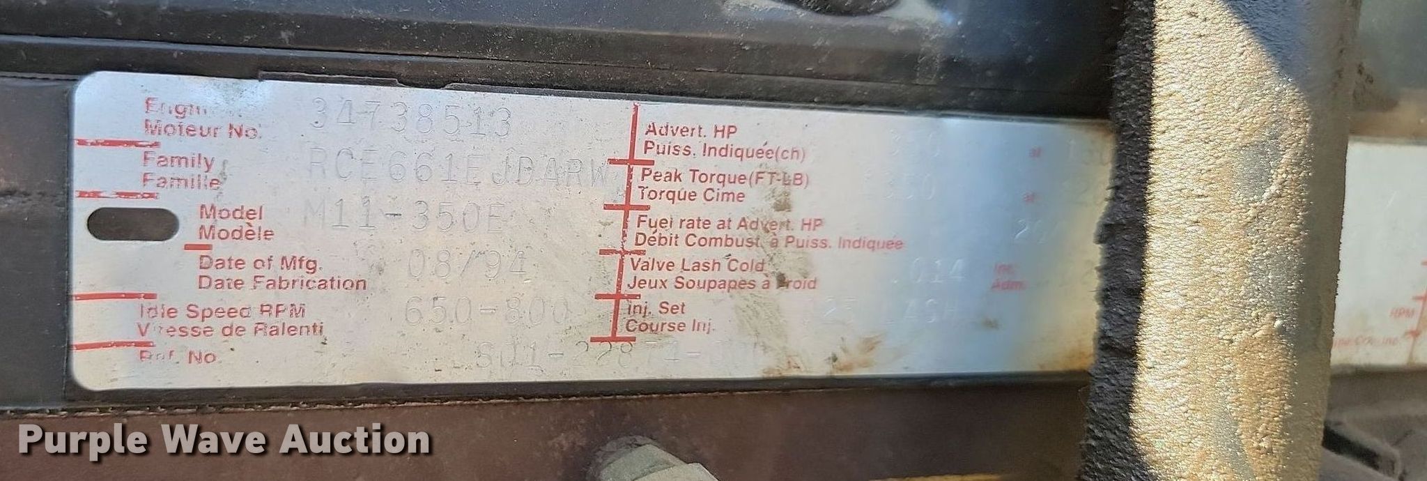 1995 Freightliner FLD120 semi truck. Miles: 577,788 on odometer, VIN: 1FUY3MDB7SP649701. Engine Cummins M11-350E, Displacement: 10.8L, Cylinders: 6, Fuel type: Diesel. Transmission Rockwell, Manual, Speed: 10. Chassis Axles: Tandem, Differential lock: Inter-axle, Suspension: Air Dump valves, Brakes: Air, PTO, GVWR: 52,000 lbs FAWR: 12,000 lbs, IAWR: 20,000 lbs, RAWR: 20,000 lbs. Interior AC, Heat, Cruise control, Air ride cab, Sleeper Sleeper length: 42", Beds: Single, Rear climate control. Features Fifth wheel type: Air operated, Sliding, Fuel tank: Dual. Tires Size: 11R24.5. South Dakota title. Title distribution may be delayed up to 14 days from verification of funds. Agland Coop. 115 South 1st Street. Parkston, SD 57366