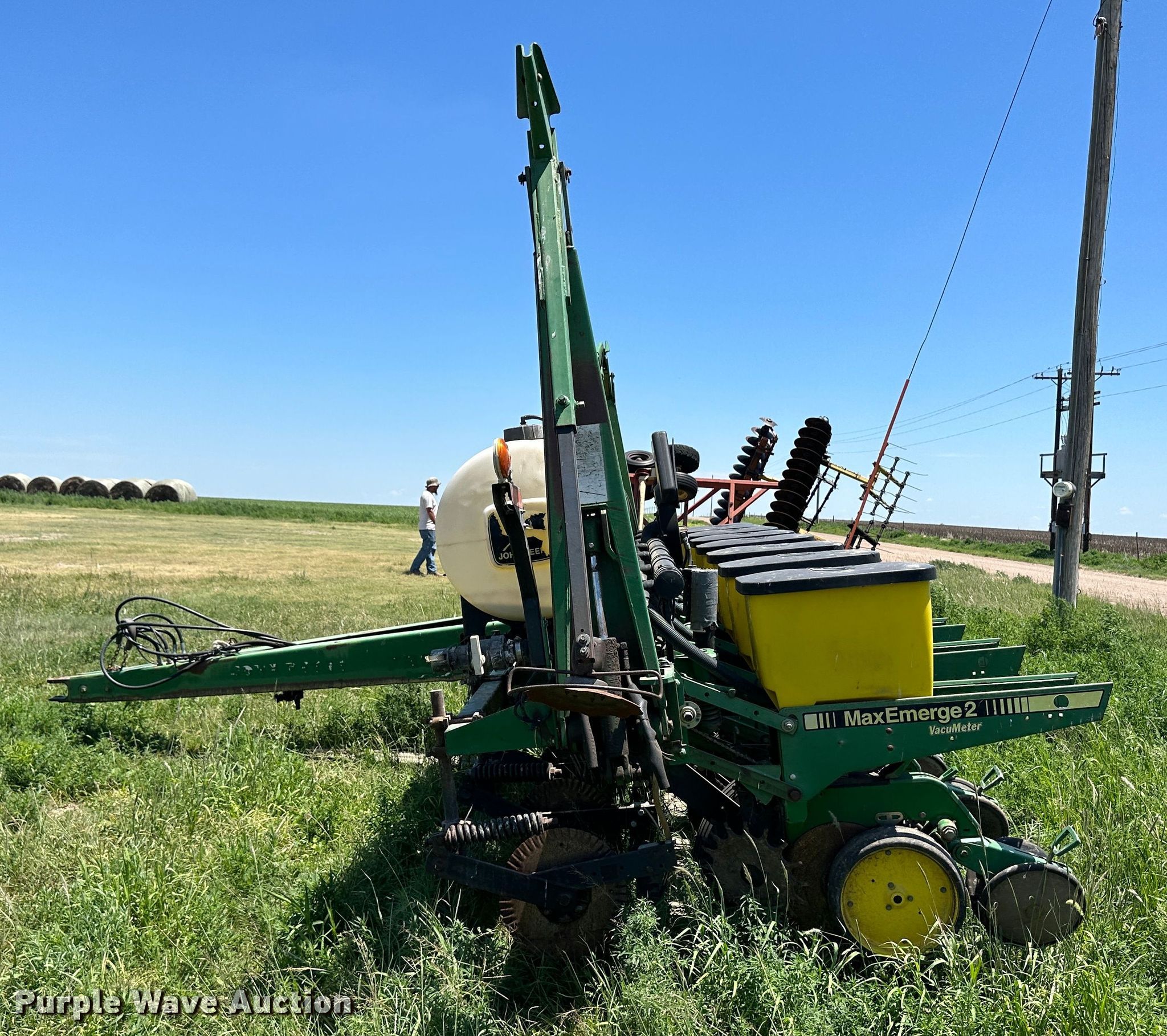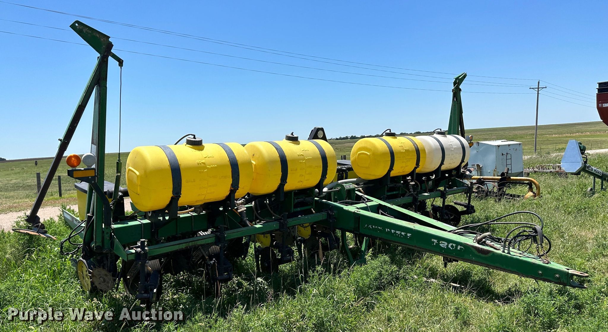 Purple Wave is selling a used Planter in Kansas. This item is a John Deere 7200 planter with the following: Row units: 8, Row spacing: 30", Serial: H07200E660356