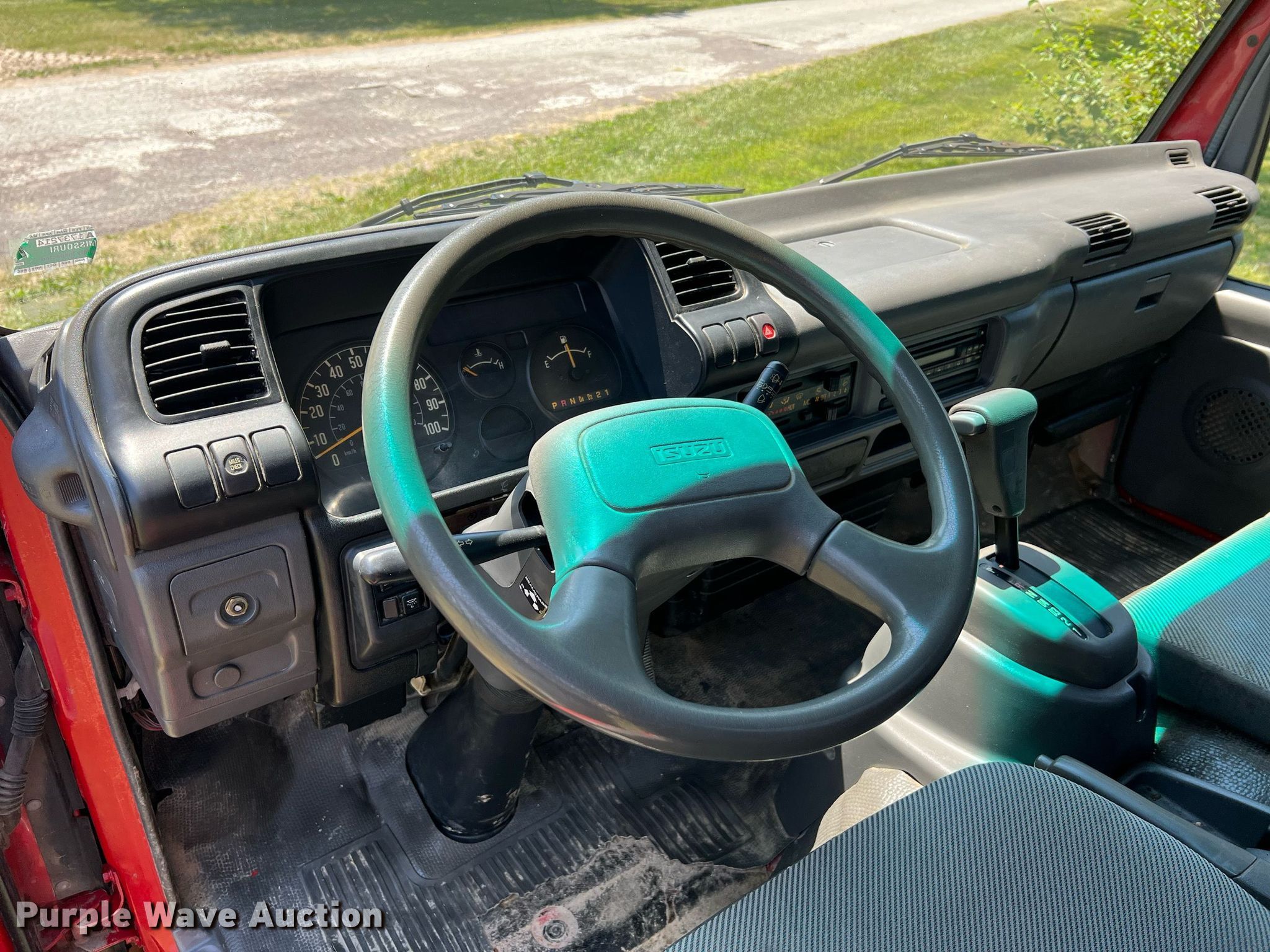 This 2005 Isuzu NPR flatbed truck will sell to the highest bidder regardless of price.