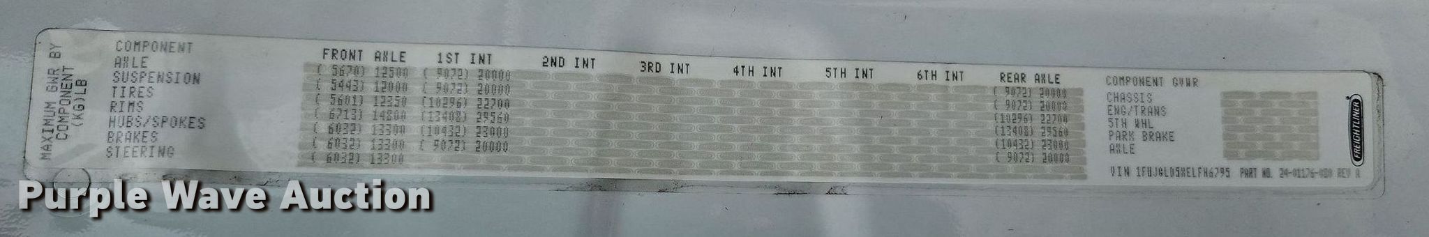 2014 Freightliner Cascadia semi truck. Miles: 1,096,247 on odometer, VIN: 1FUJGLD5XELFH6795. Engine Detroit Diesel DD15, Displacement: 14.8L, Cylinders: 6, Fuel type: Diesel, Engine brake. Transmission Eaton Fuller , Manual, Speed: 10. Chassis Axles: Tandem, Differential lock: Inter-axle, Suspension: Air Dump valves, Brakes: Air, Truck chassis: 13', GVWR: 52,000 lbs FAWR: 12,000 lbs, IAWR: 20,000 lbs, RAWR: 20,000 lbs. Interior AC, Heat, Heated mirrors, Power windows, Power locks, Cruise control, Air ride cab, Sleeper Sleeper length: 6', Beds: Double bunk, Rear climate control. Features Deck plate: Aluminum, Fifth wheel type: Air operated, Sliding, Fuel tank: Dual. Tires Size: 295/75R22.5. Notes Dash warning indicator: Check engine, Windshield chipped or cracked. Kansas title. Title distribution may be delayed up to 14 days from verification of funds. Transline, LLC. 901 W Ironwood St. Olathe, KS 66061