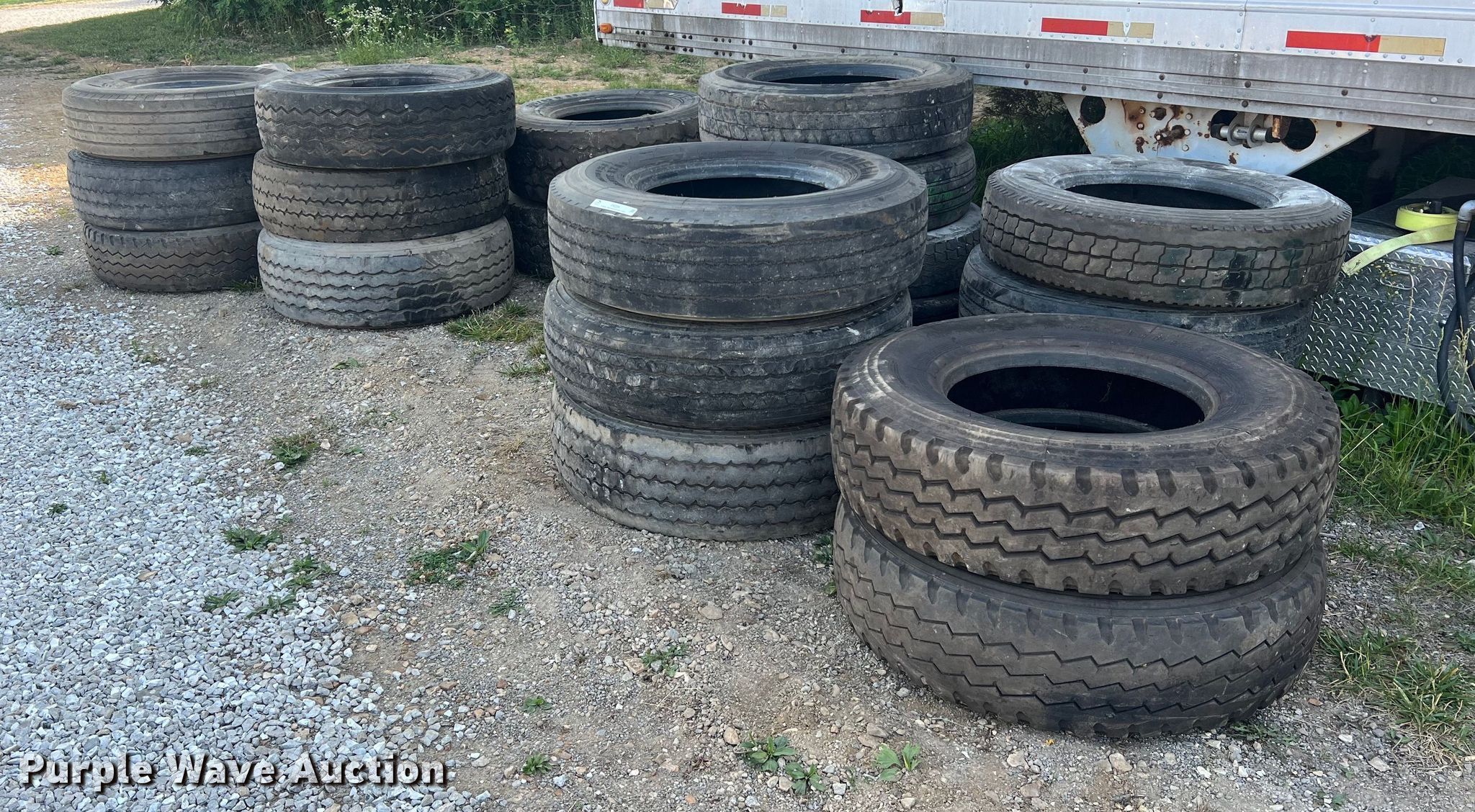 Purple Wave is selling a used Fleet Tires in Missouri. This item is a (23) tires with the following: 385/65R22.5, 285/75R24.5, 315/80R22.5 and more