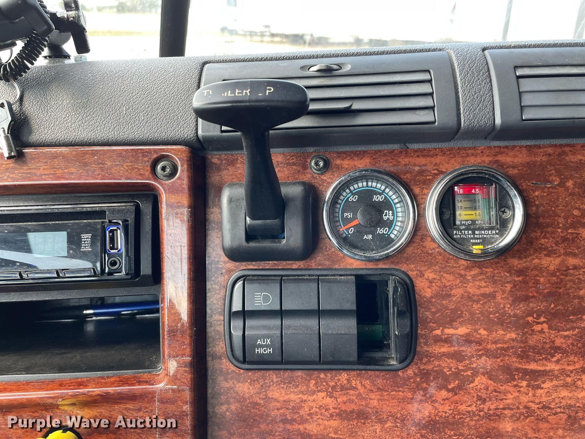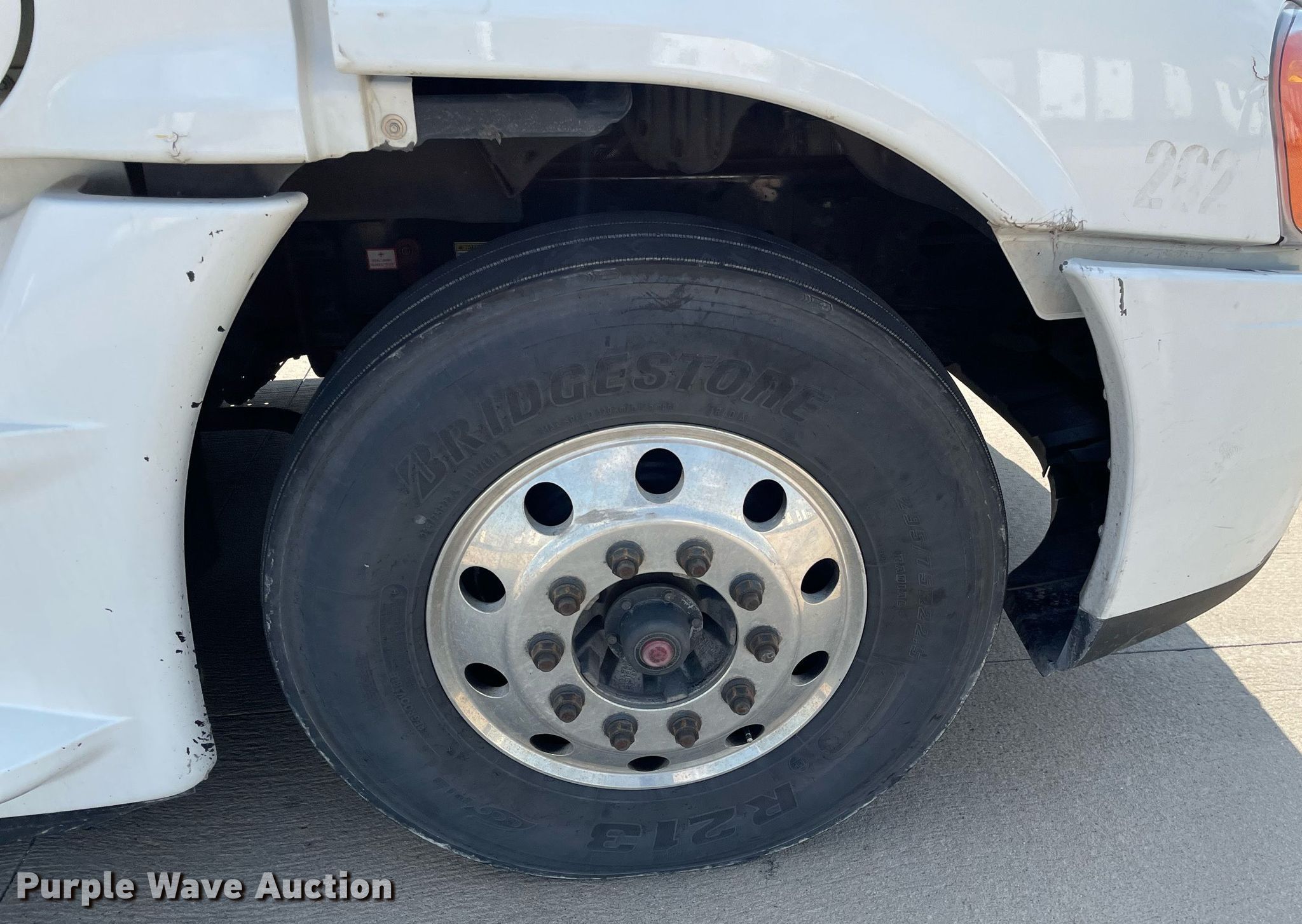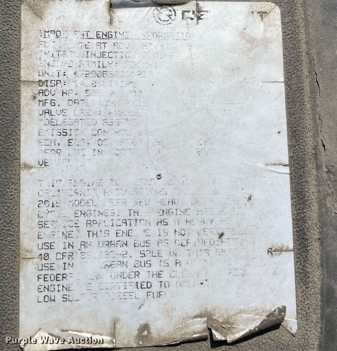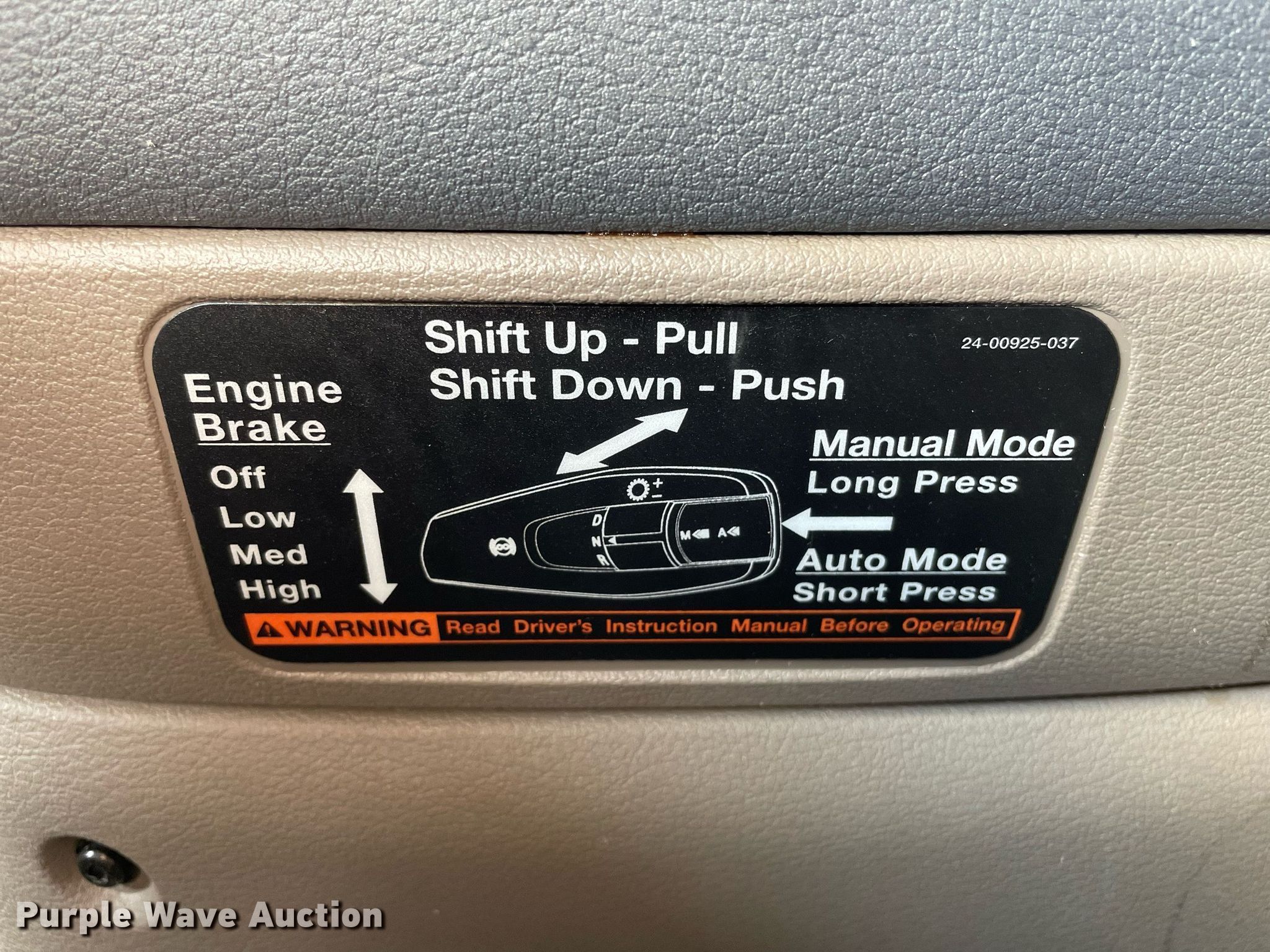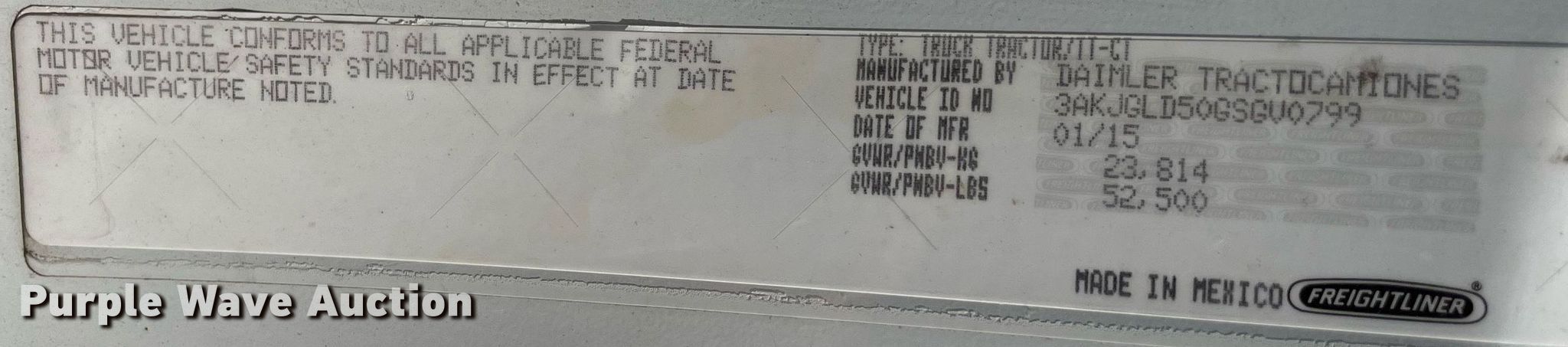 2016 Freightliner Cascadia semi truck. Miles: 777,447 on odometer, Hours: 17,268 on meter, VIN: 3AKJGLD50GSGV0799, Unit #: 202. Engine Detroit Diesel DD15, Displacement: 14.8L, Cylinders: 6, Fuel type: Diesel, HP: 505, Engine brake. Transmission Detroit DT12, Automated manual. Chassis Axles: Tandem, Differential lock: Inter-axle, Suspension: Air Dump valves, Brakes: Air, Truck chassis: 12' 6", GVWR: 52,500 lbs FAWR: 12,500 lbs, IAWR: 20,000 lbs, RAWR: 20,000 lbs. Interior AC, Heat, Heated mirrors, Power windows, Power locks, Cruise control, Air ride cab, Sleeper Sleeper length: 60", Beds: Double bunk, Refrigerator, Rear climate control. Features Deck plate: Aluminum, Fifth wheel type: Air operated, Sliding, Fuel tank: Dual. Tires Front: 295/75R22.5, Rear: 445/50R22.5. Montana title. Title distribution may be delayed up to 14 days from verification of funds. Doug Bradley Trucking. Salina, KS 67401