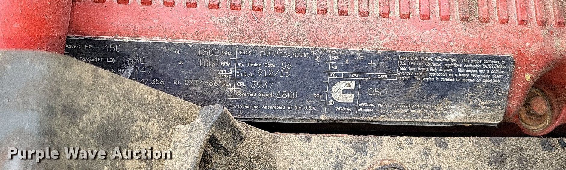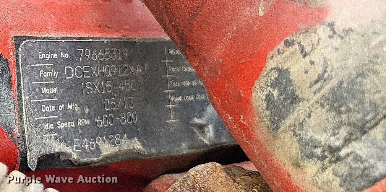 2014 International ProStar Plus semi truck. Miles: 653,056 on odometer, Hours: 17,708 on meter, VIN: 1HSDJAPR8EH431985. Engine Cummins ISX15, Displacement: 14.9L, Cylinders: 6, Fuel type: Diesel, Engine brake. Transmission Eaton Fuller, Manual, Speed: 10. Chassis Axles: Tandem, Differential lock: Inter-axle, Suspension: Air Dump valves, Brakes: Air, GVWR: 52,350 lbs FAWR: 12,350 lbs, IAWR: 20,000 lbs, RAWR: 20,000 lbs. Interior AC, Heat, Heated mirrors, Power windows, Power locks, Cruise control, Air ride cab. Features Deck plate: Aluminum, Fifth wheel type: Air operated, Fuel tank: Dual. Tires Front: 295/75R22.5, Rear: 445/50R22.5. Notes Dash warning indicator: ABS. Missouri title. Title distribution may be delayed up to 14 days from verification of funds. Ray Farms. 729 MO-105. Charleston, MO 63834
