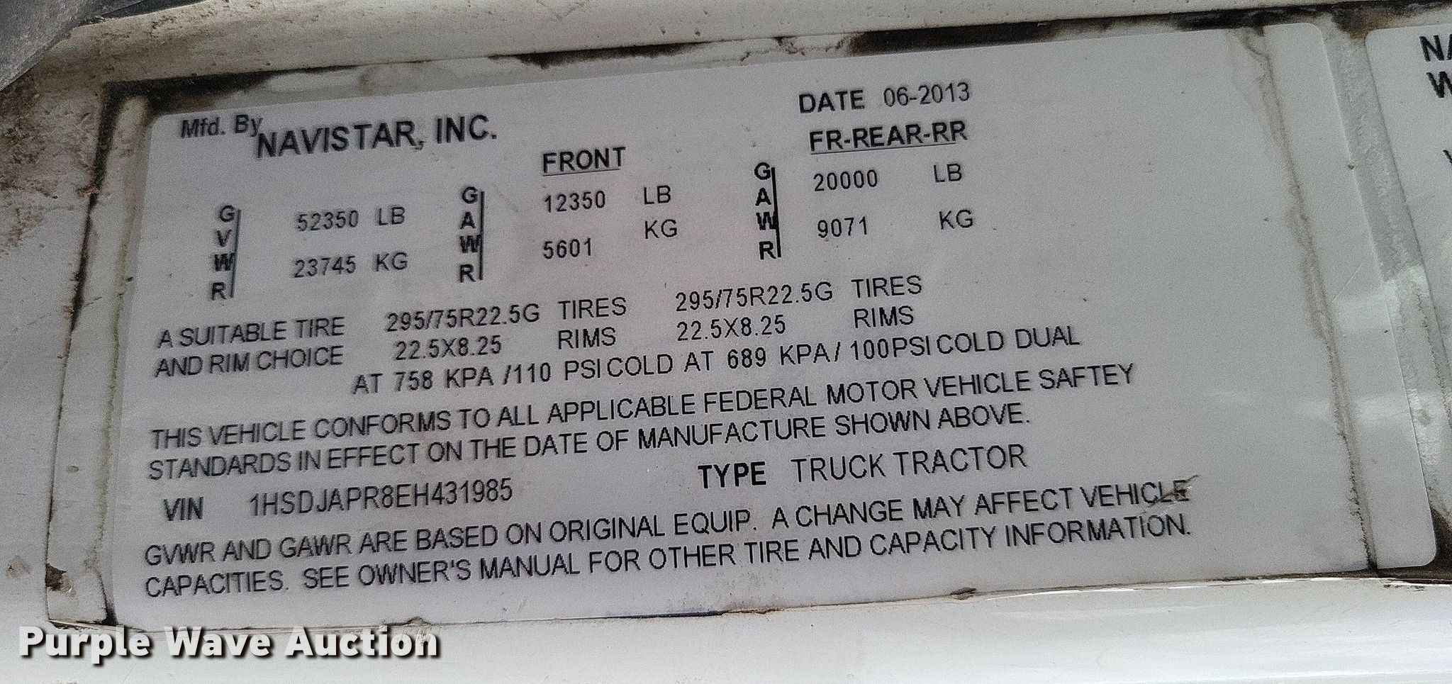 - VIN: 1HSDJAPR8EH431985