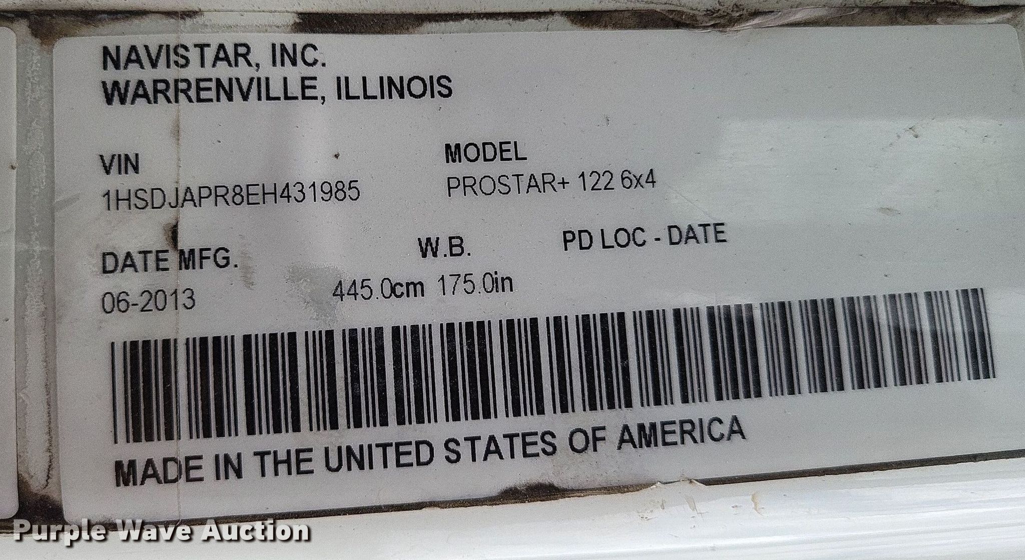Purple Wave is selling a used Truck Tractor in Missouri. This item is a 2014 International ProStar Plus semi truck with the following: Miles: 653,056 on odometer, Hours: 17,708 on meter, VIN: 1HSDJAPR8EH431985