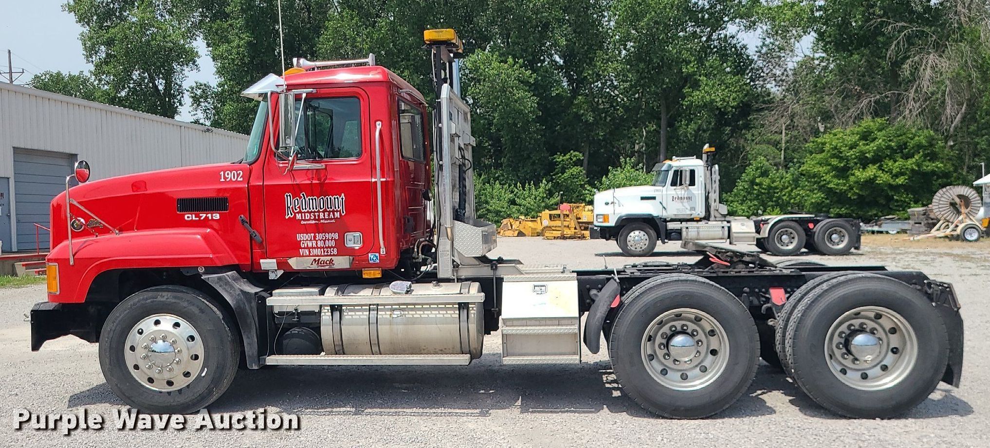 Purple Wave is selling a used Truck Tractor in Missouri. This item is a 2003 Mack CL713 semi truck with the following: Miles: 87,696 on odometer, Hours: 19,052 on meter, VIN: 1M2AD62Y33M012358
