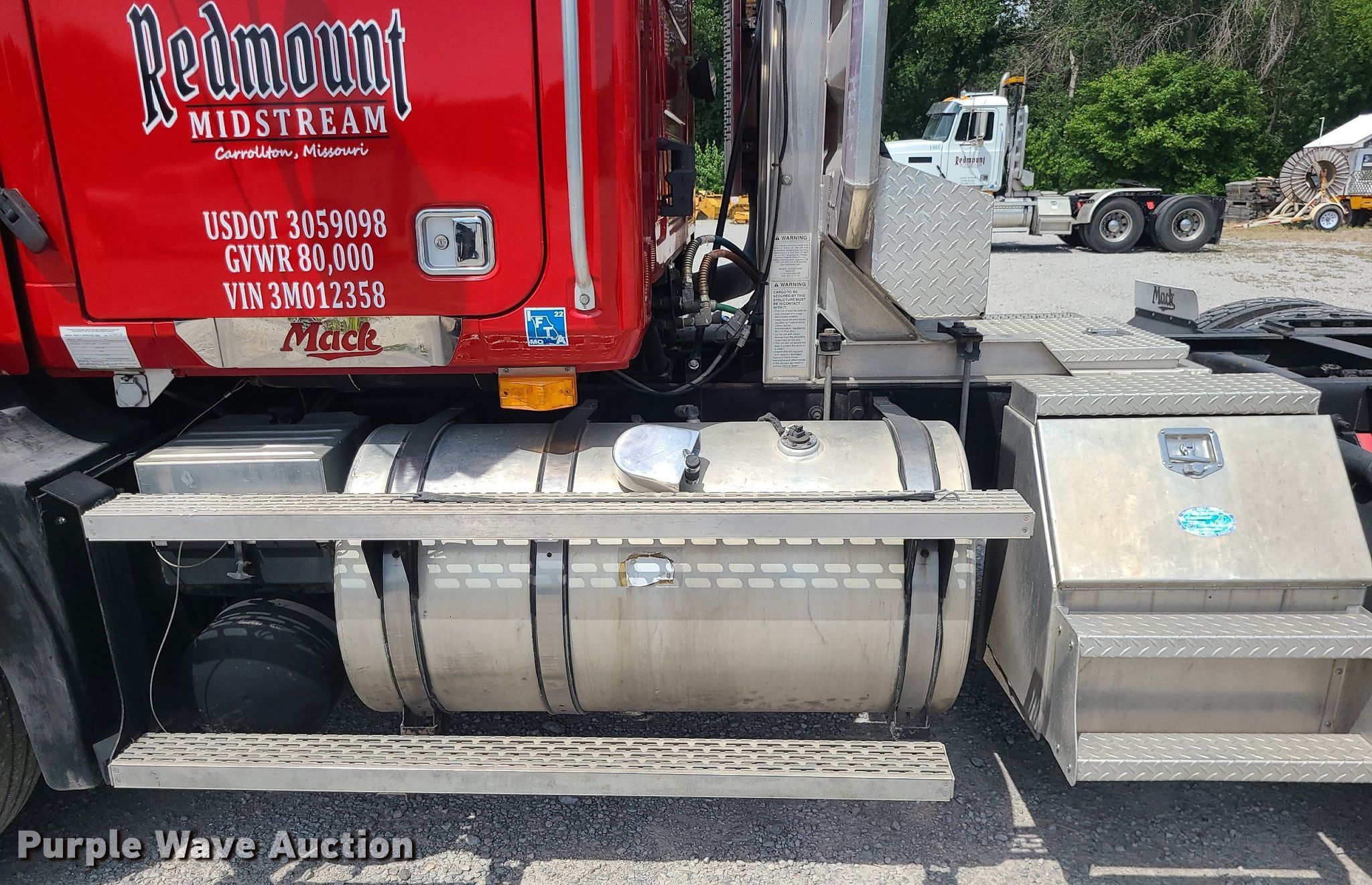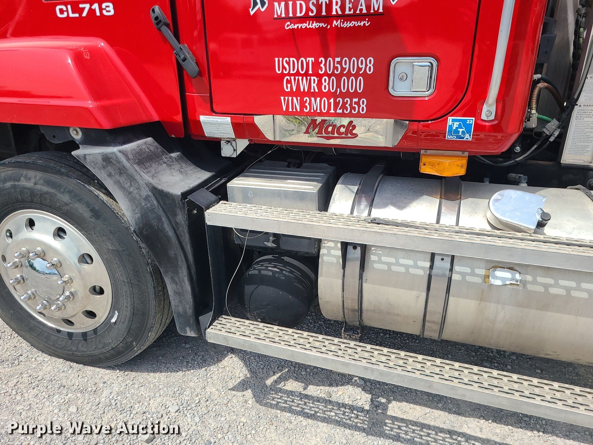2003 Mack CL713 semi truck. Miles: 87,696 on odometer, Hours: 19,052 on meter, VIN: 1M2AD62Y33M012358. Engine Displacement: 12.0L, Cylinders: 6, Fuel type: Diesel. Transmission Manual, Speed: 18. Chassis Axles: Tandem, Gear ratio: 3.94, Suspension: Air, Brakes: Air, GVWR: 60,300 lbs FAWR: 14,300 lbs, IAWR: 23,000 lbs, RAWR: 23,000 lbs. Interior AC, Heat, Cruise control. Features Deck plate: Aluminum, Fifth wheel type: Sliding, Fuel tank: Dual. Tires Size: 11R24.5. Notes Maintenance records available upon email request to [email protected]. View repairs. Missouri title. Title distribution may be delayed up to 14 days from verification of funds. Redmount Midstream llc.. 912 South Main Street. Carrollton, MO 64633