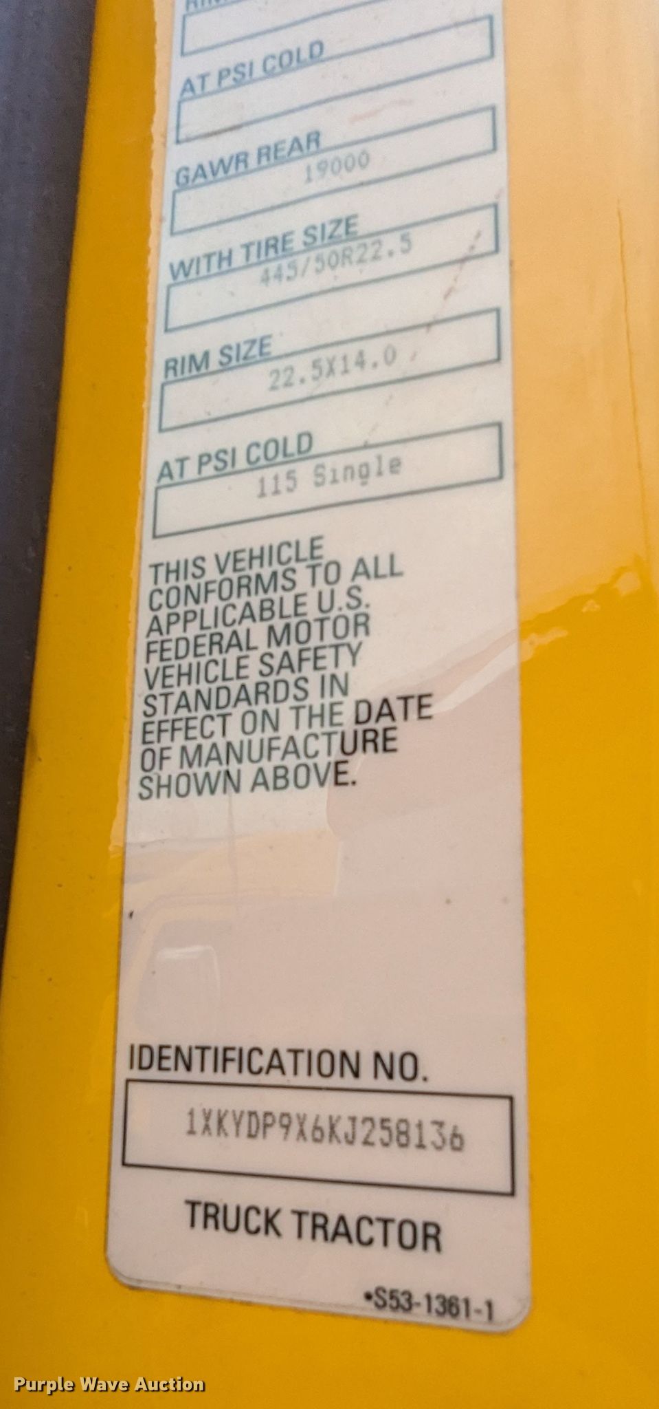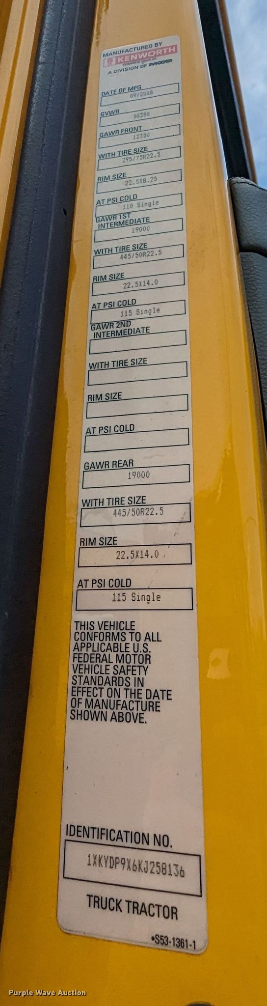 - VIN: 1XKYDP9X6KJ258136
