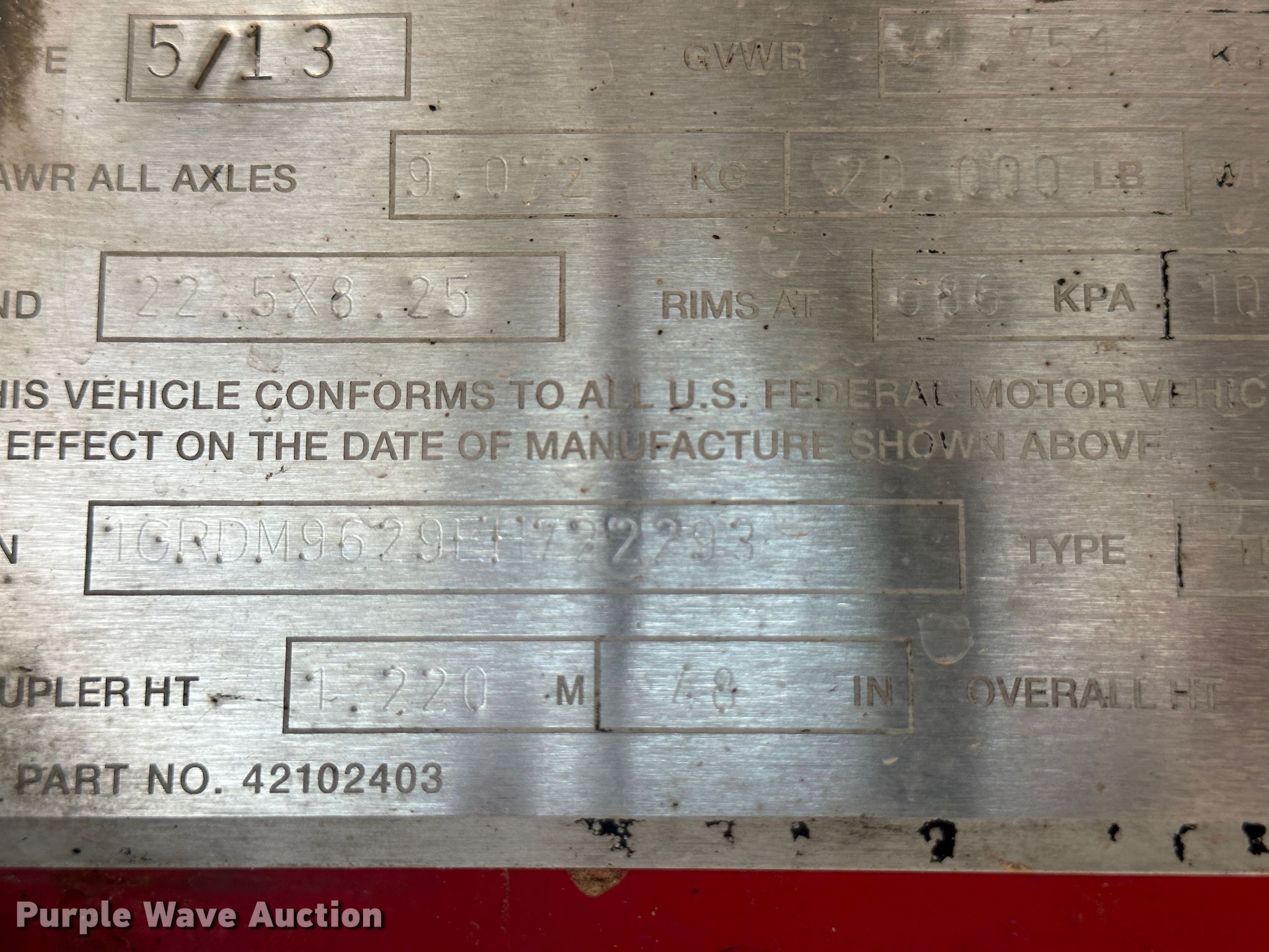 2014 Great Dane flatbed trailer. VIN: 1GRDM9629EH722293. Dimensions Overall: 48' L x 102" W, Deck: 48' L x 97" W. Features Deck type: Aluminum, Wood. Chassis Landing gear: Dual, Suspension: Air, Brakes: Air, Axles: Spread, GVWR: 76,620 lbs, GAWR: 20,000 lbs. Tires Aluminum wheels, Size: 295/75R22.5. Oklahoma title. Title has a lien that will be released following the close of the auction. Title distribution may be delayed up to 30 days from verification of funds. Wagon Burner. Woodward, OK 73801