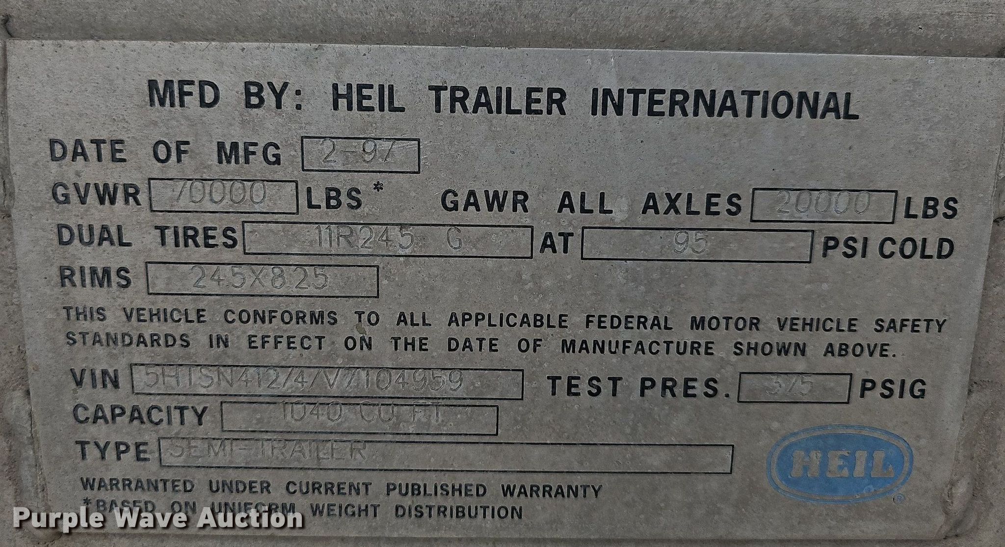 Purple Wave is selling a used Tank Trailer in Missouri. This item is a 1997 Heil pneumatic dry bulk trailer with the following: VIN: 5HTSN4124V7T04959