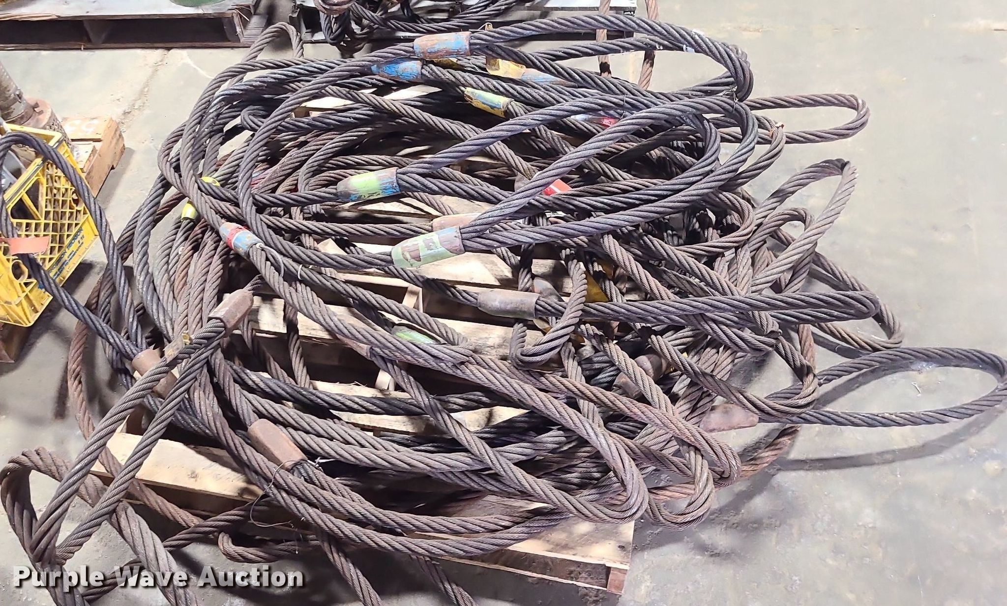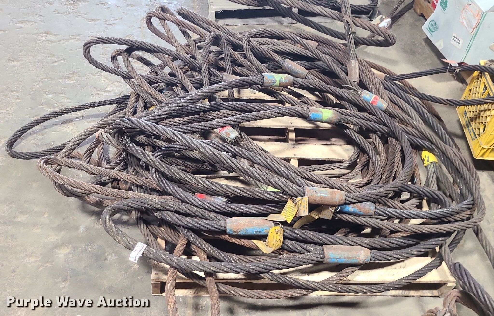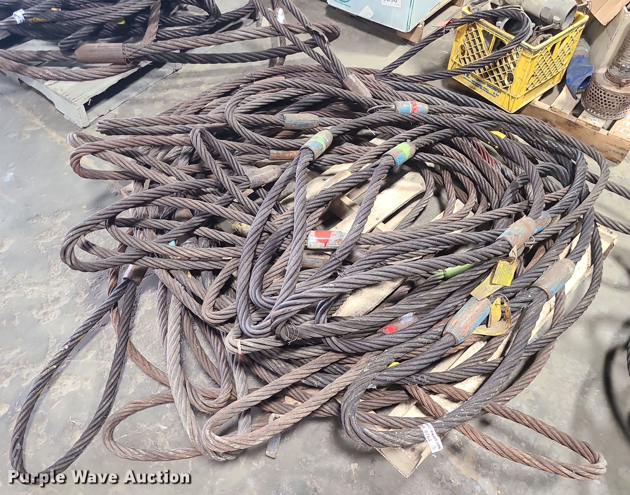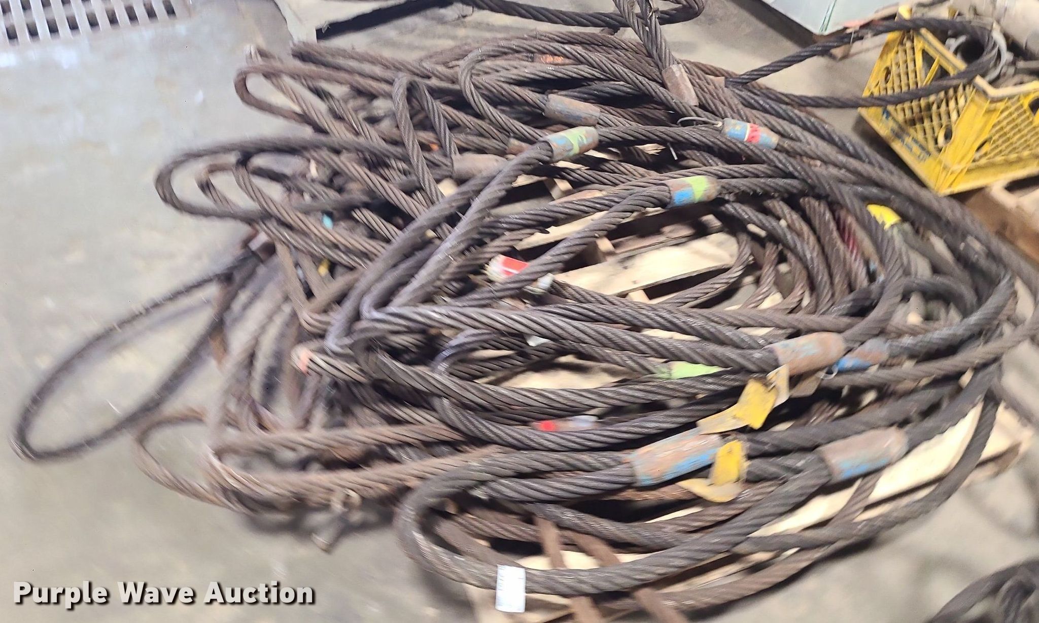Purple Wave is selling a used Lifting and Rigging in Missouri. This item is a Steel cable slings with the following: Diameter: 1"