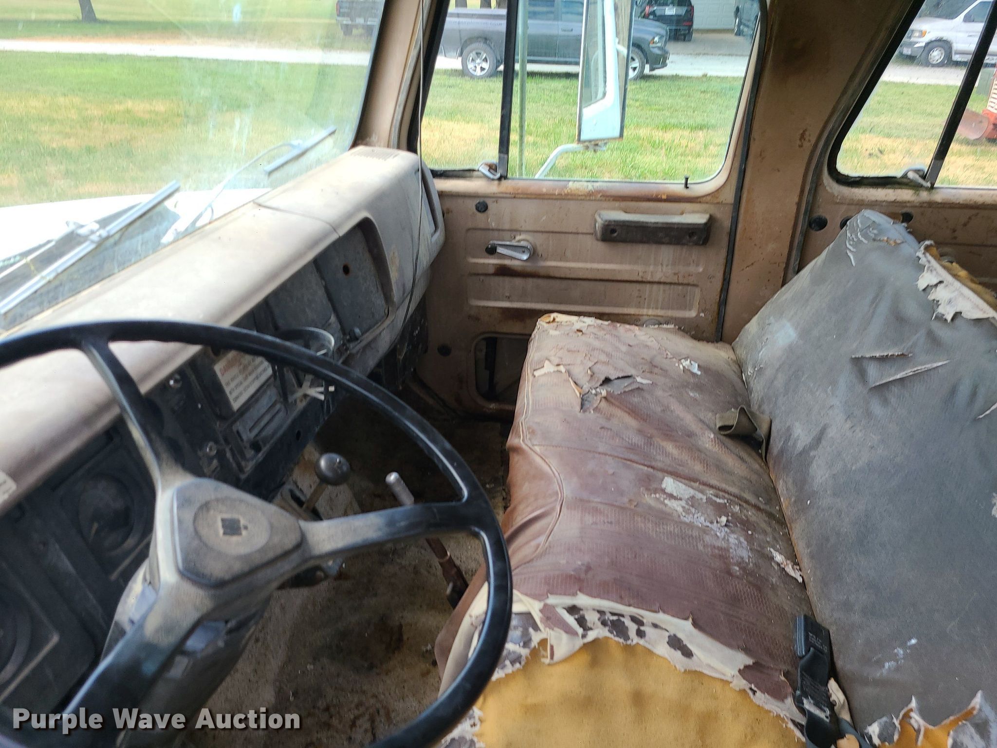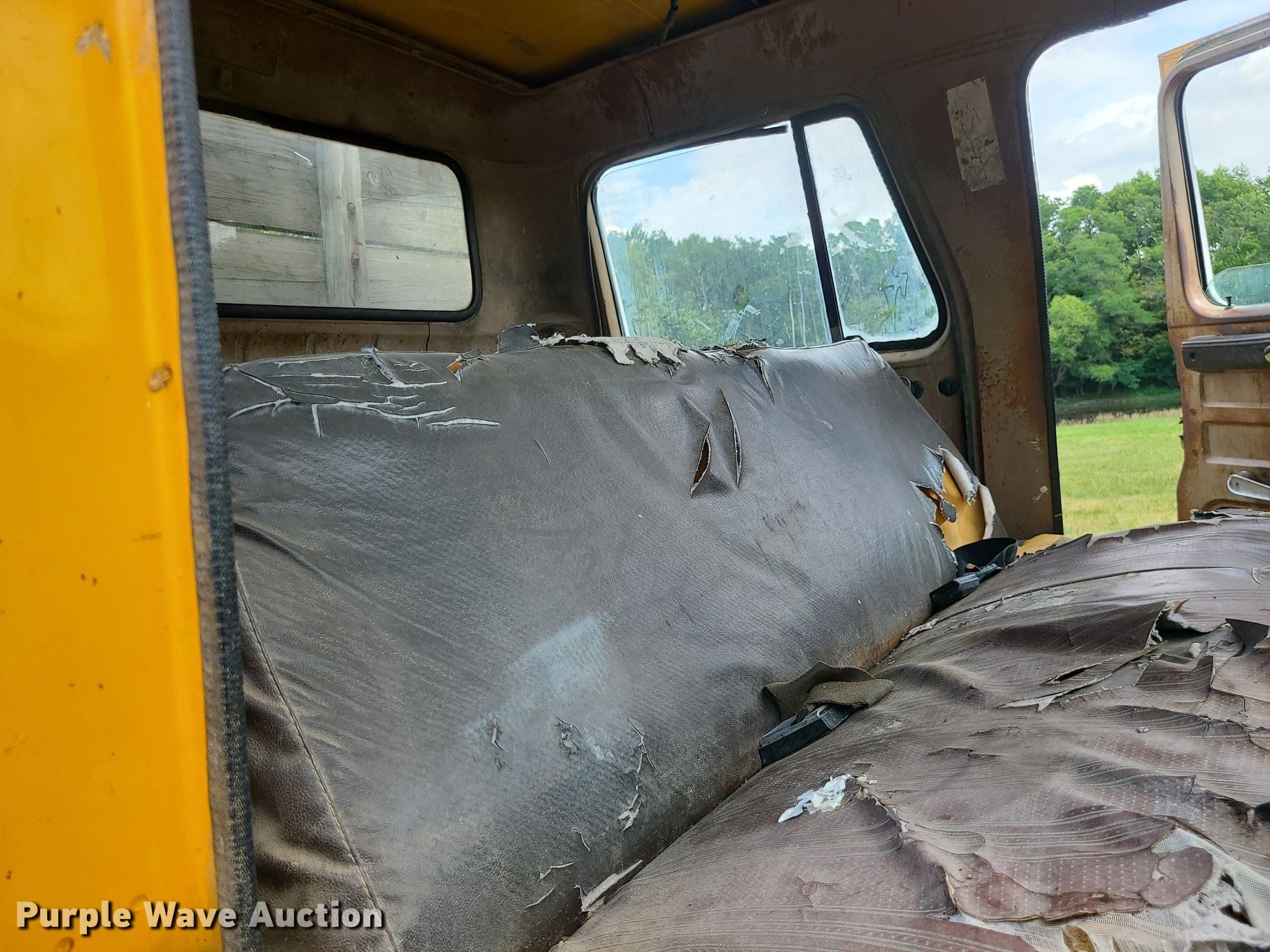 1982 International 1754 Crew Cab dump flatbed truck. Miles: 97,664 on odometer, VIN: 1HTAA17E4CHA18537. Engine Displacement: 7.6L, Cylinders: 8, Fuel type: Diesel. Transmission Automatic. Chassis Axles: Single, Suspension: Spring, Brakes: Hydraulic, PTO. Interior Heat. Features Dump flatbed 12' L x 96" W, Ram: Single. Tires Front: 10-20, Rear: 8.25-20. Missouri title. Title distribution may be delayed up to 14 days from verification of funds. Richard Mather Builders Inc. 16500 Route 291. Lee's Summit, MO 64082