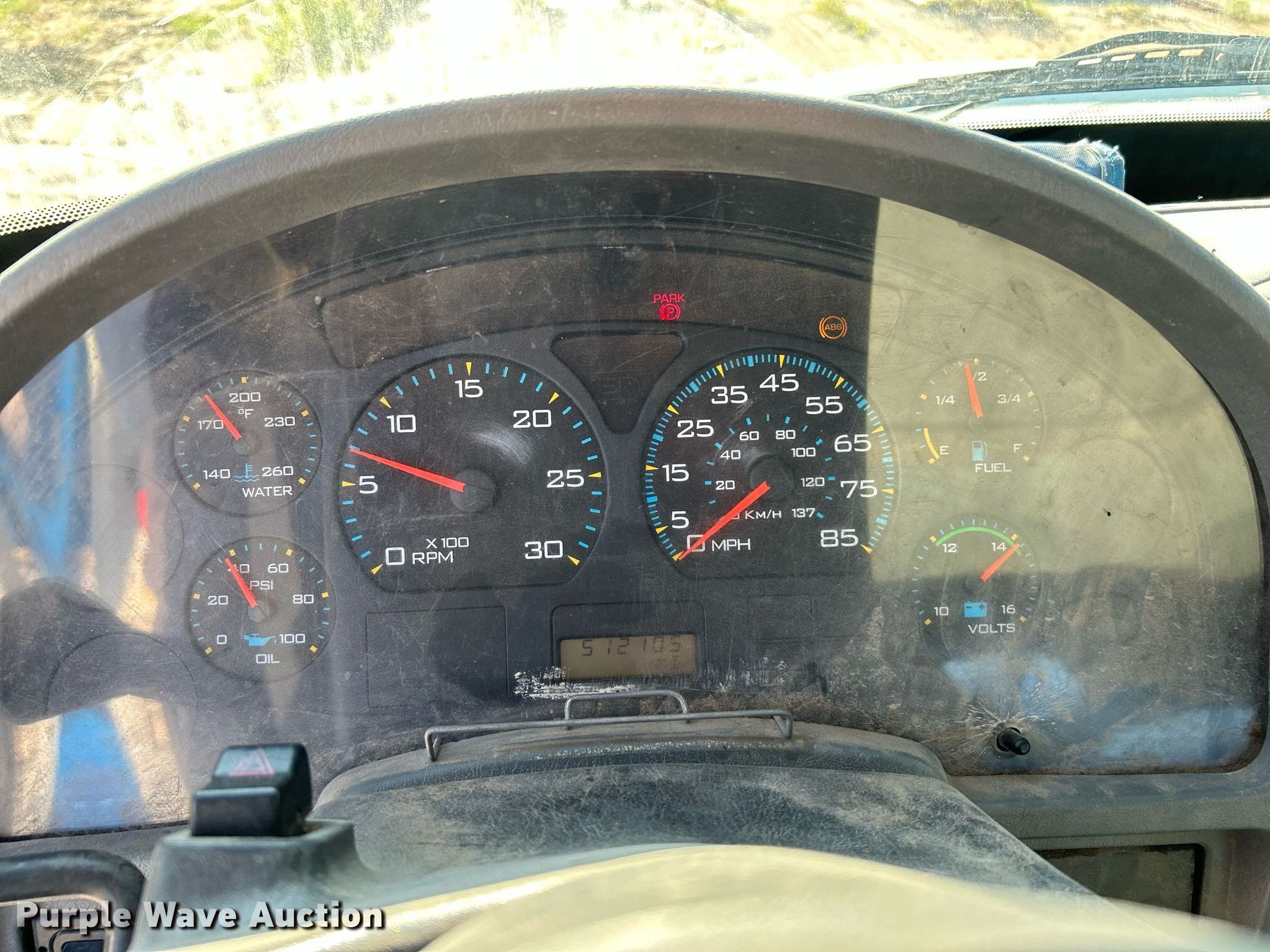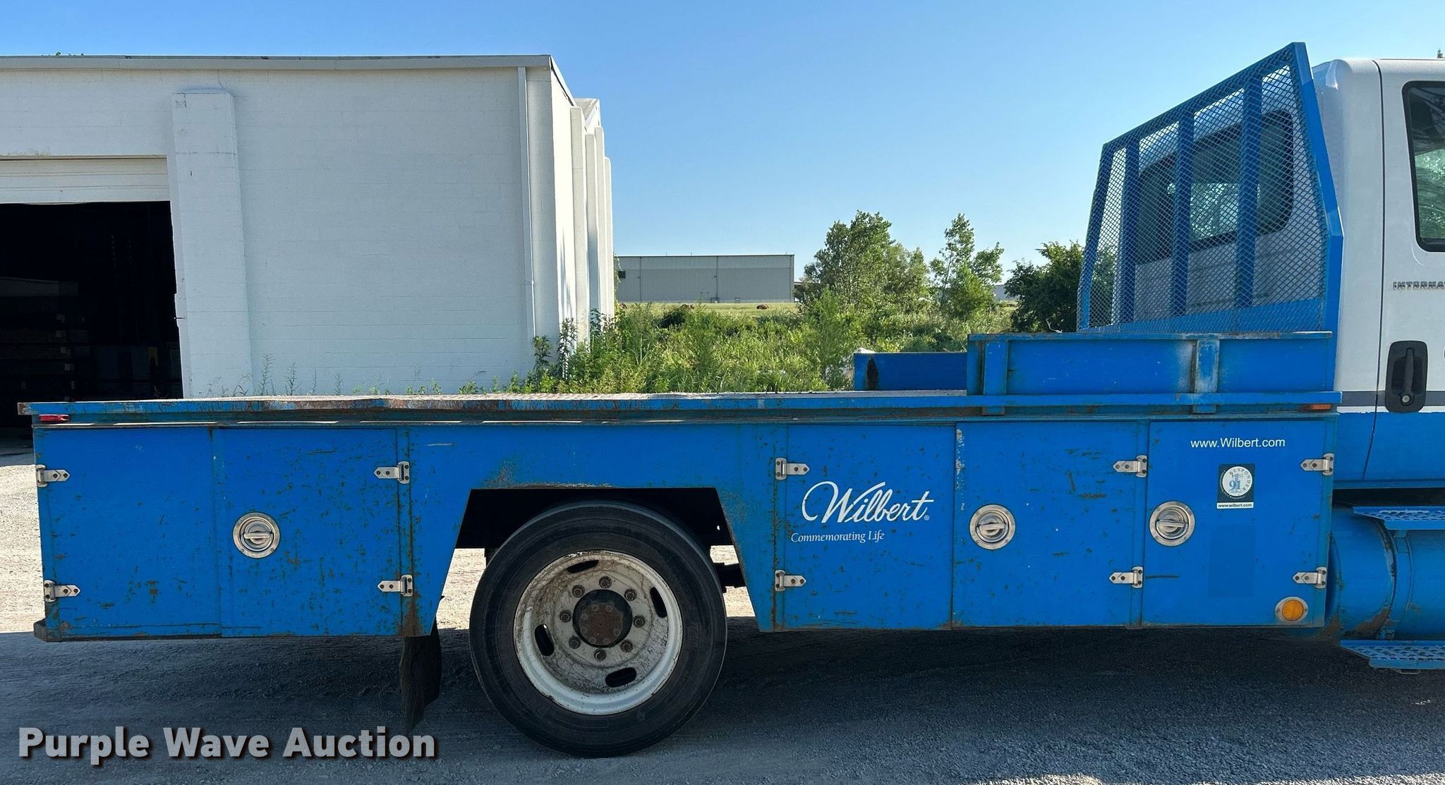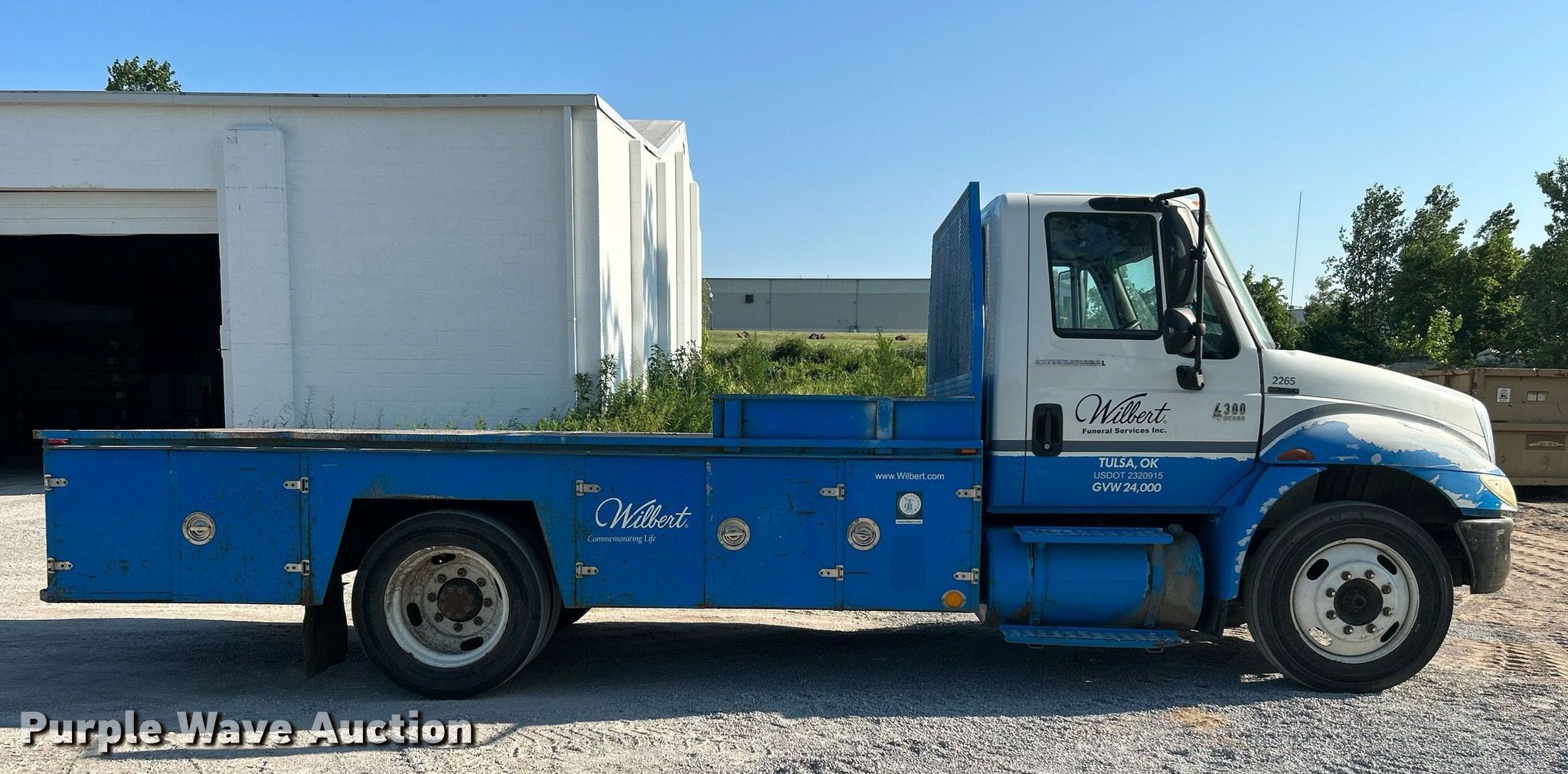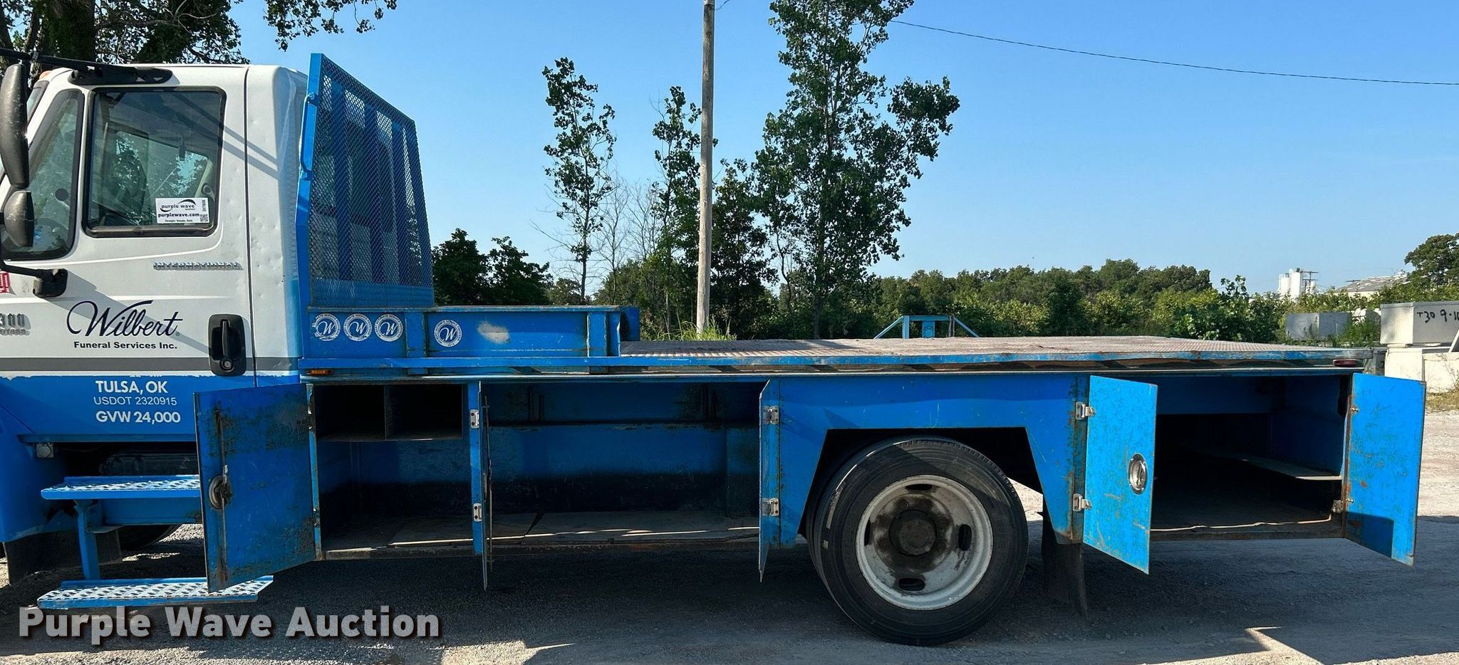 2002 International 4300 flatbed truck. Miles: 512,105 on odometer, Hours: 16,268 on meter, Miles or hours may vary, unit still in use, VIN: 1HTMMAAM12H540719. Engine International DT466, Displacement: 7.6L, Cylinders: 6, Fuel type: Diesel. Transmission Manual, Speed: 6. Chassis Axles: Single, Suspension: Spring, Brakes: Hydraulic. Interior AC, Cruise control. Features Flatbed 14' 7" L x 95" W. Tires Size: 255/70R22.5. Notes Dash warning indicator: ABS, Windshield chipped or cracked. Oklahoma title. Title distribution may be delayed up to 14 days from verification of funds. Wilbert Funeral Services. 6505 South 57th West Avenue. Tulsa, OK 74131