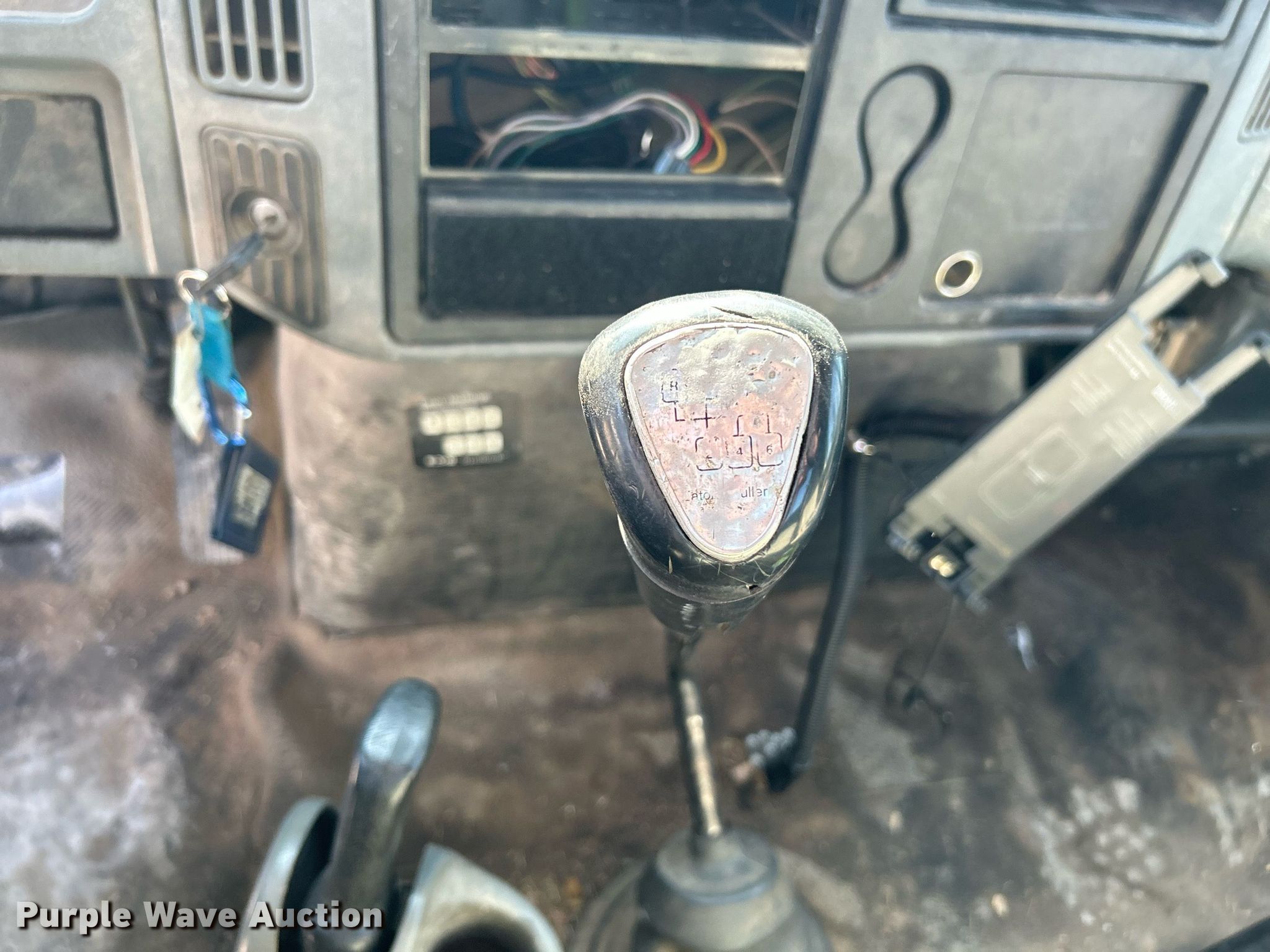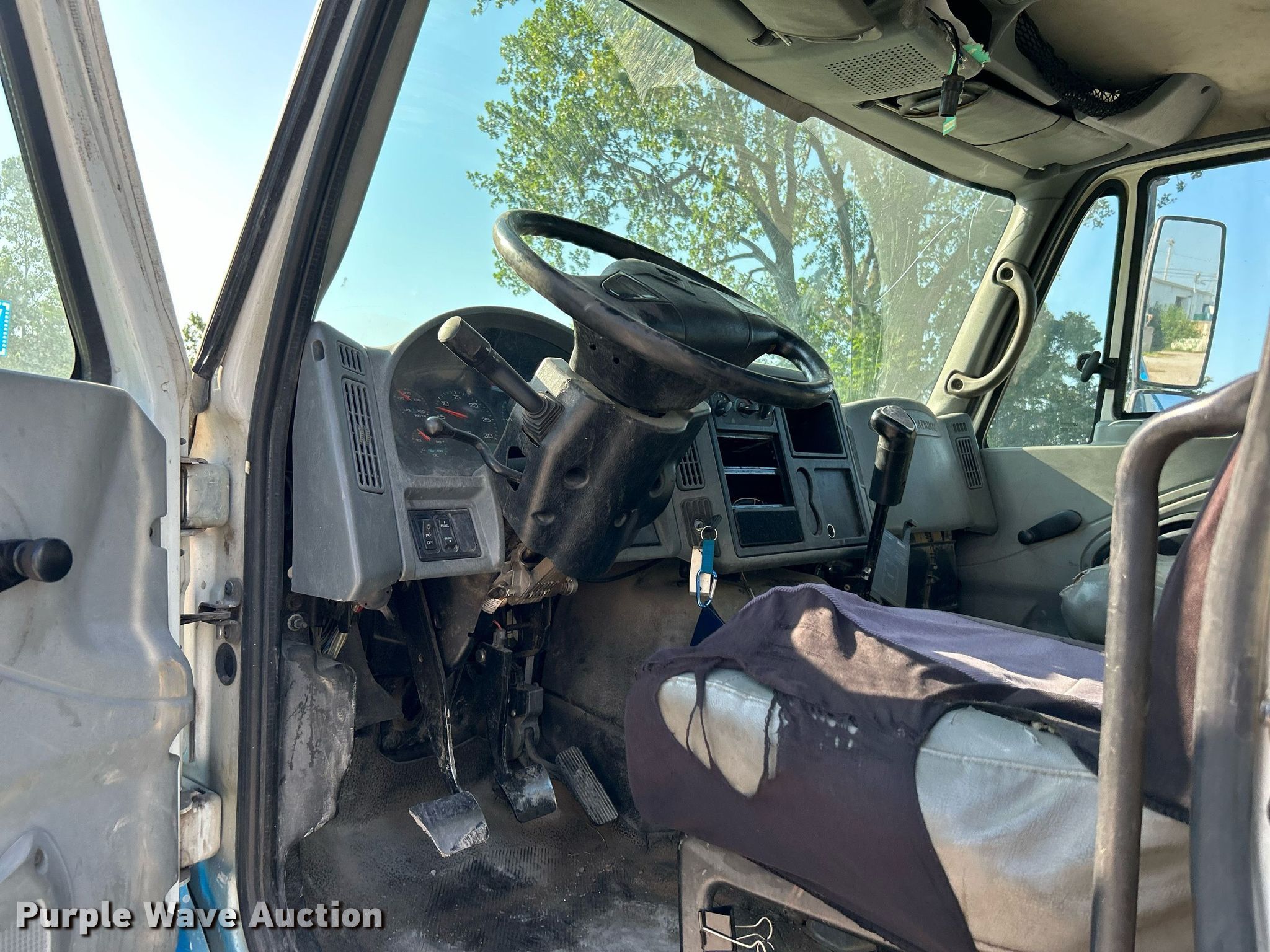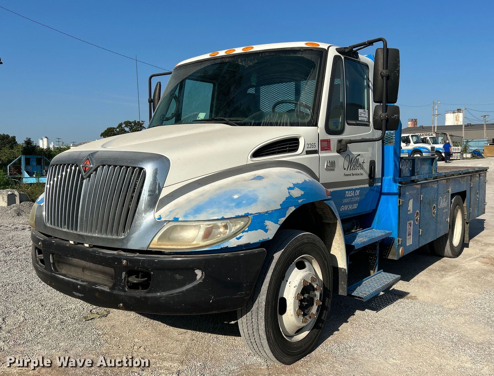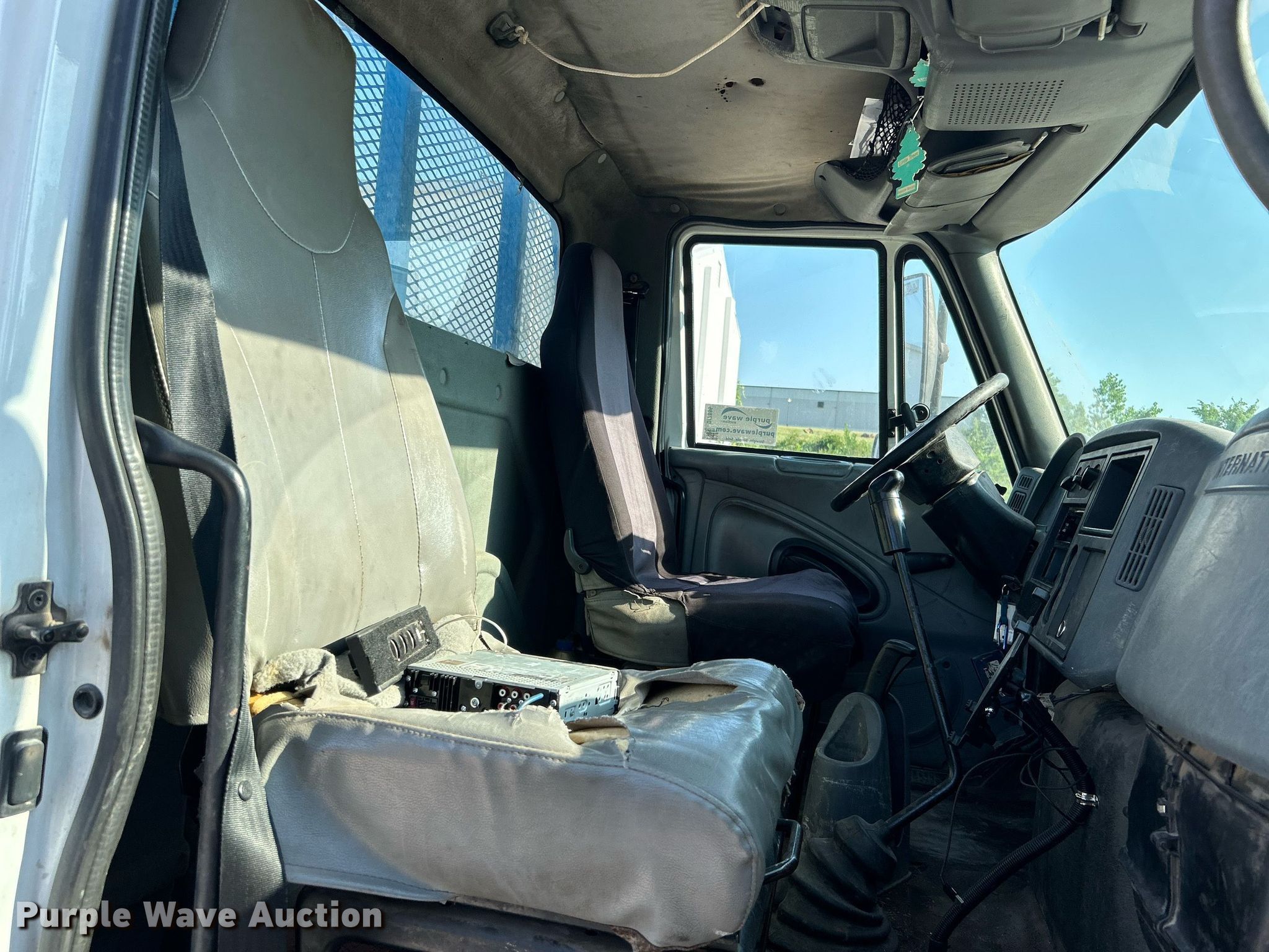 2002 International 4300 flatbed truck. Miles: 512,105 on odometer, Hours: 16,268 on meter, Miles or hours may vary, unit still in use, VIN: 1HTMMAAM12H540719. Engine International DT466, Displacement: 7.6L, Cylinders: 6, Fuel type: Diesel. Transmission Manual, Speed: 6. Chassis Axles: Single, Suspension: Spring, Brakes: Hydraulic. Interior AC, Cruise control. Features Flatbed 14' 7" L x 95" W. Tires Size: 255/70R22.5. Notes Dash warning indicator: ABS, Windshield chipped or cracked. Oklahoma title. Title distribution may be delayed up to 14 days from verification of funds. Wilbert Funeral Services. 6505 South 57th West Avenue. Tulsa, OK 74131