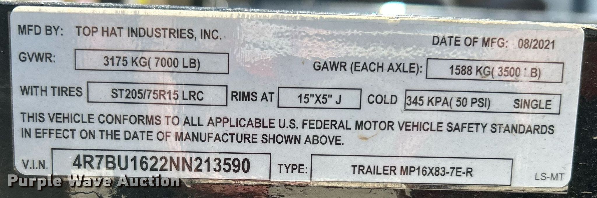 Purple Wave is selling a used Car or Utility Trailer in Oklahoma. This item is a 2022 Top Hat MP16X38-7E-R utility trailer with the following: VIN: 4R7BU1622NN213590