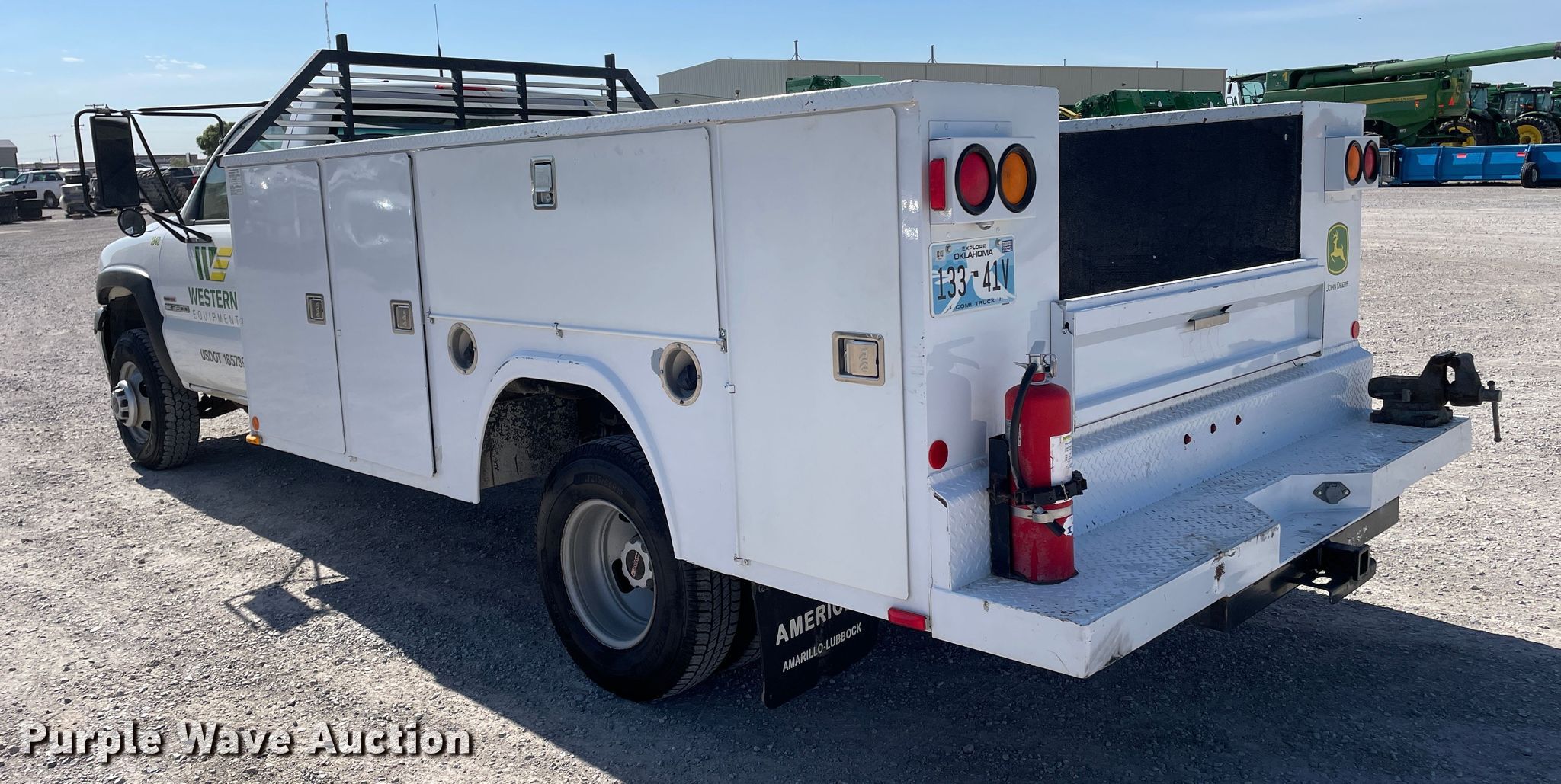 2001 GMC Sierra 3500 utility bed pickup truck. Miles: 197,287 on odometer, VIN: 1GDJC34151F135338. Engine Displacement: 6.6L V8 OHV, Cylinders: 8, Fuel type: Diesel. Transmission Automatic. Interior AC, Heat, Cruise control. Features Utility bed RKI S84DW94, 12' L x 94" W. Tires Size: 215/85R16. Notes Dash warning indicator: Airbag, Service engine soon. Oklahoma title. Title distribution may be delayed up to 14 days from verification of funds. Western Lease LLC. 10800 Interstate 27. Amarillo, TX 79119