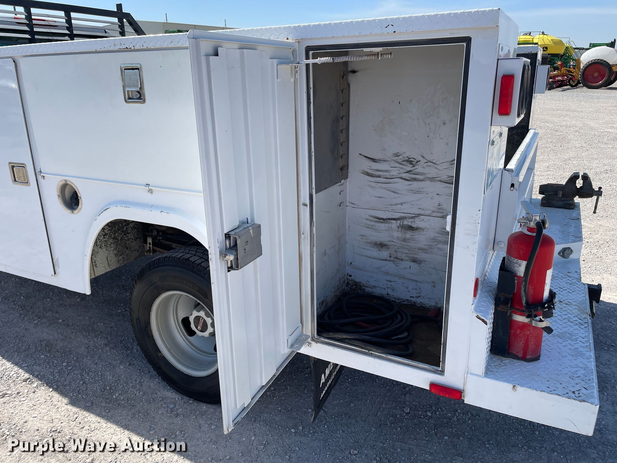 This 2001 GMC Sierra 3500 utility bed pickup truck will sell to the highest bidder regardless of price.