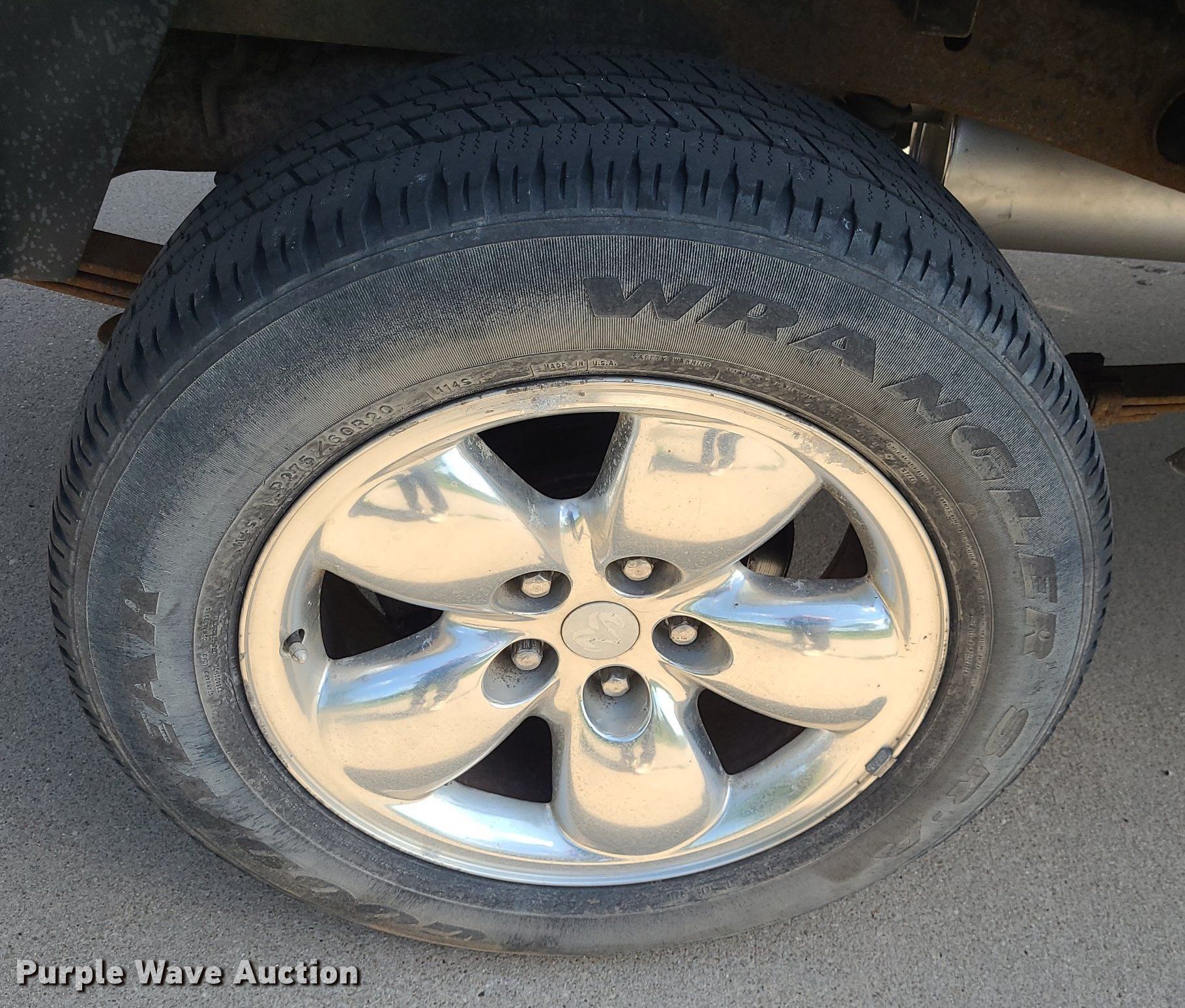 2003 Dodge Ram 1500 SLT Quad Cab pickup truck. Miles: 126,431 on odometer, VIN: 1D7HU18Z43S131673. Engine Displacement: 5.9L V8 OHV, Cylinders: 8, Fuel type: Gas. Transmission Automatic, Four wheel drive. Interior AC, Heat, Heated mirrors, Power windows, Power locks, Cruise control. Tires Size: P275/60R20. Notes Non-operational passenger power window. Kansas title. Title distribution may be delayed up to 14 days from verification of funds. Manhattan, KS 66502