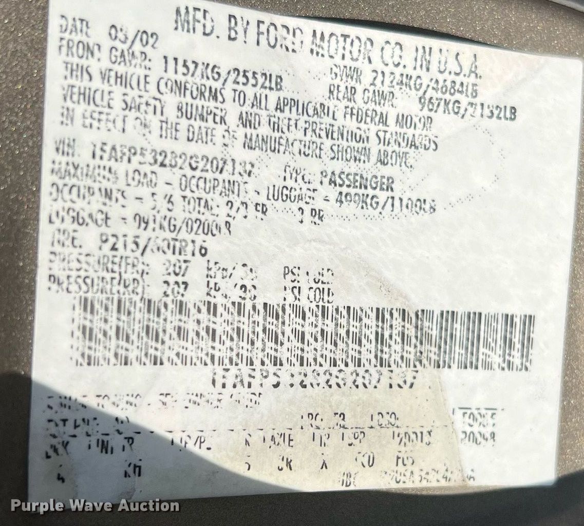 2002 Ford Taurus | SOLD! August 02 Vehicles and Equipment Auction