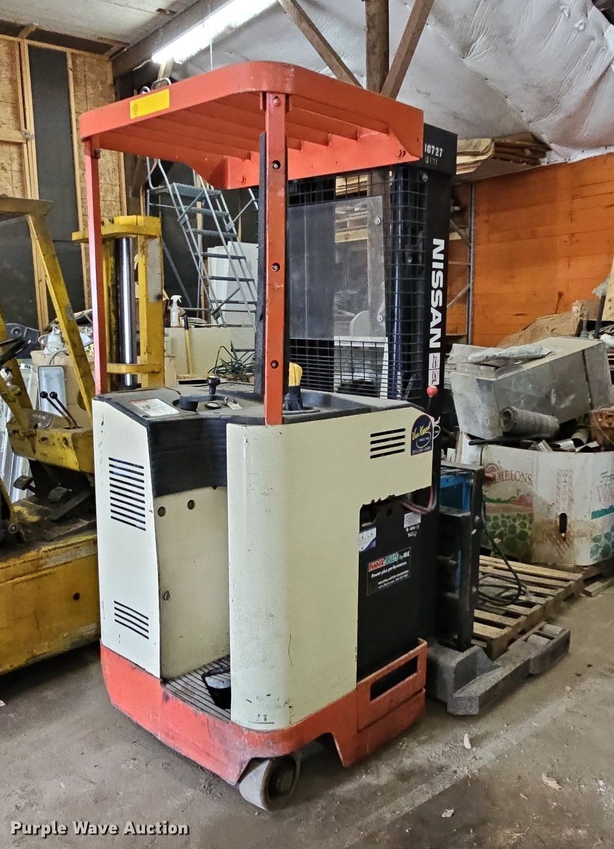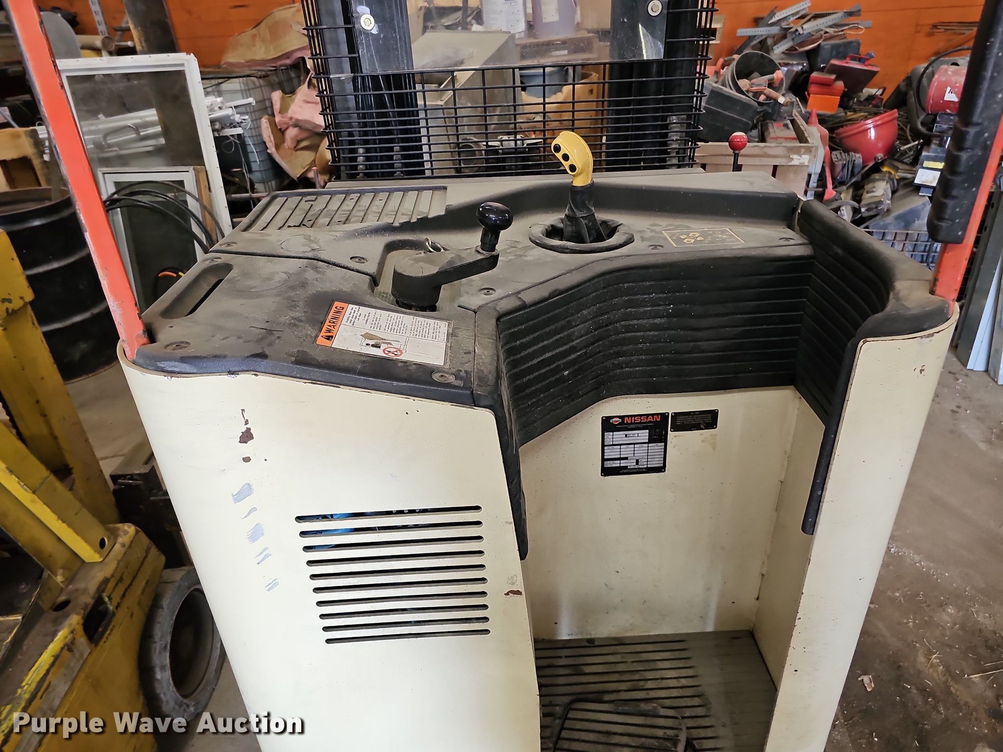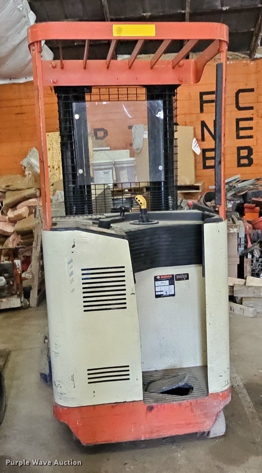 Purple Wave is selling a used Warehouse Forklift in Nebraska. This item is a Nissan OR35 order picker with the following: Hours: Unknown, Serial: OR35-A98-70213