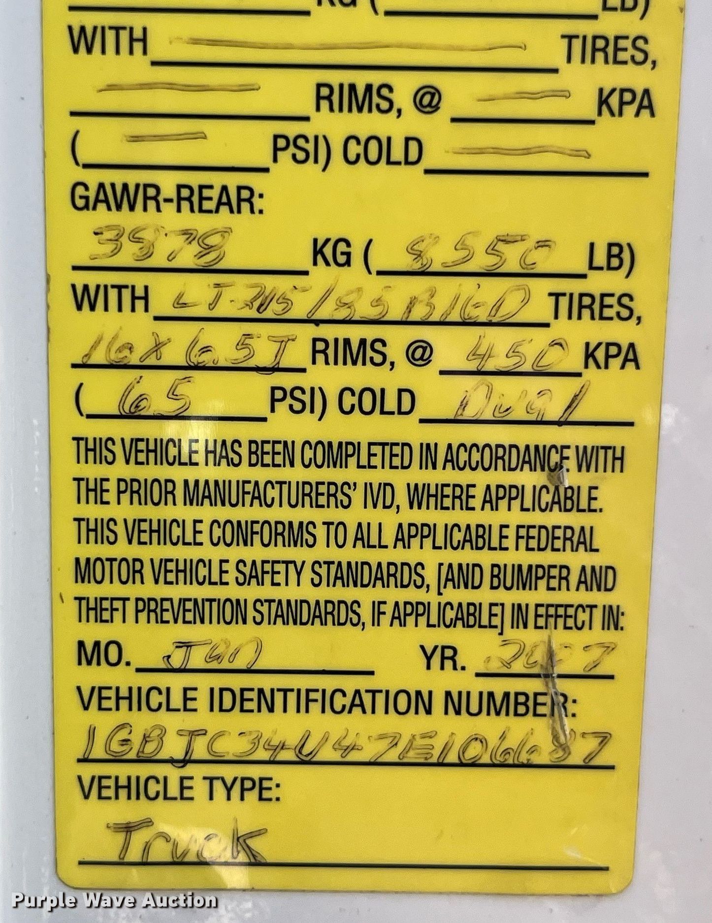 - VIN: 1GBJC34U47E106687