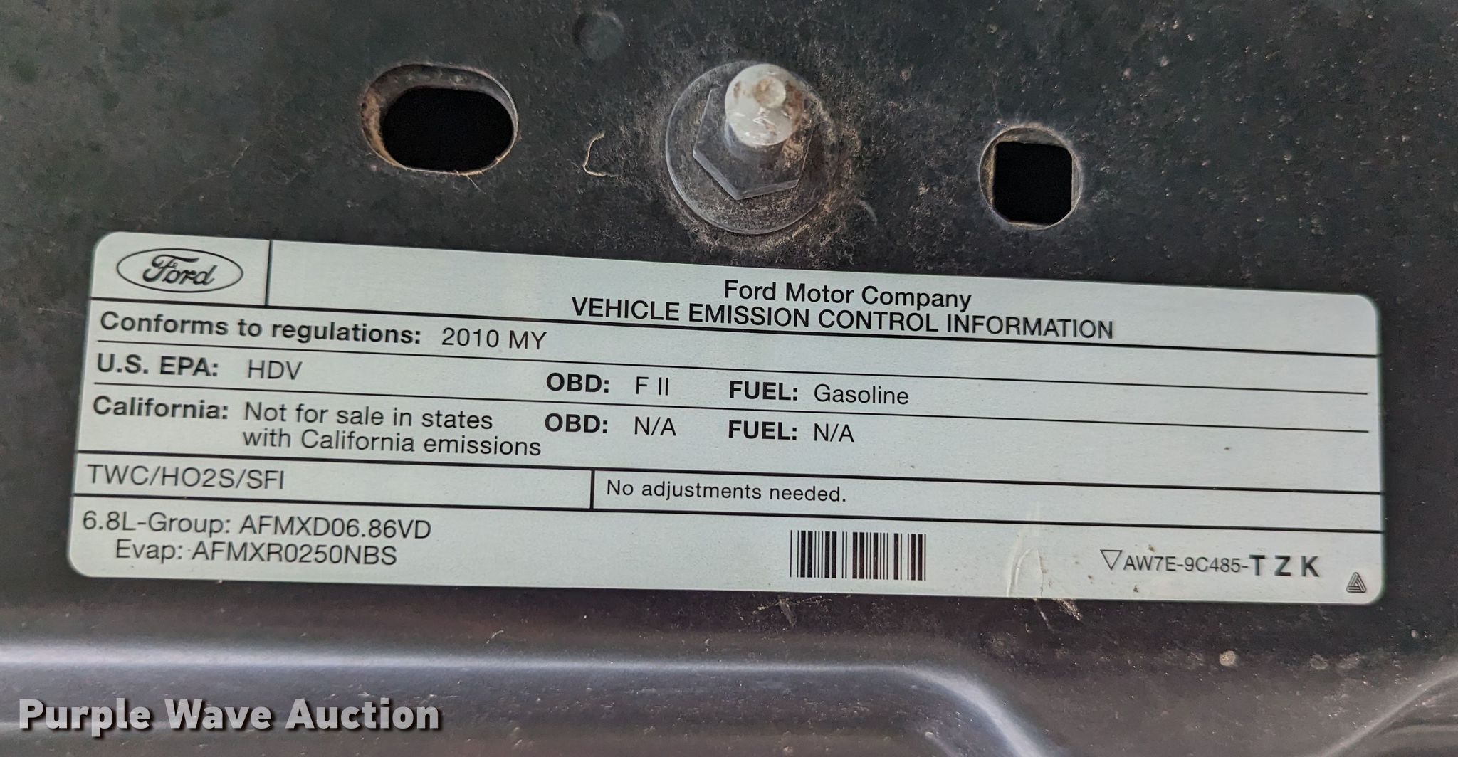 2010 Ford F250 Super Duty Crew Cab pickup truck cab and chassis. Miles: 264,537 on odometer, VIN: 1FTSW2BYXAEB19815. Engine Displacement: 6.8L V10 SOHC, Cylinders: 10, Fuel type: Gas. Transmission Automatic, Four wheel drive. Interior AC, Heat, Heated mirrors, Power windows, Power locks, Cruise control. Tires Size: 245/75R17. Notes Dash warning indicator: Check engine, TPMS, ABS, Brake, No battery, Non-operational unit. Texas title. Title distribution may be delayed up to 30 days from verification of funds. NCX, Inc.. 3118 S 9th St. Purcell, OK 73080