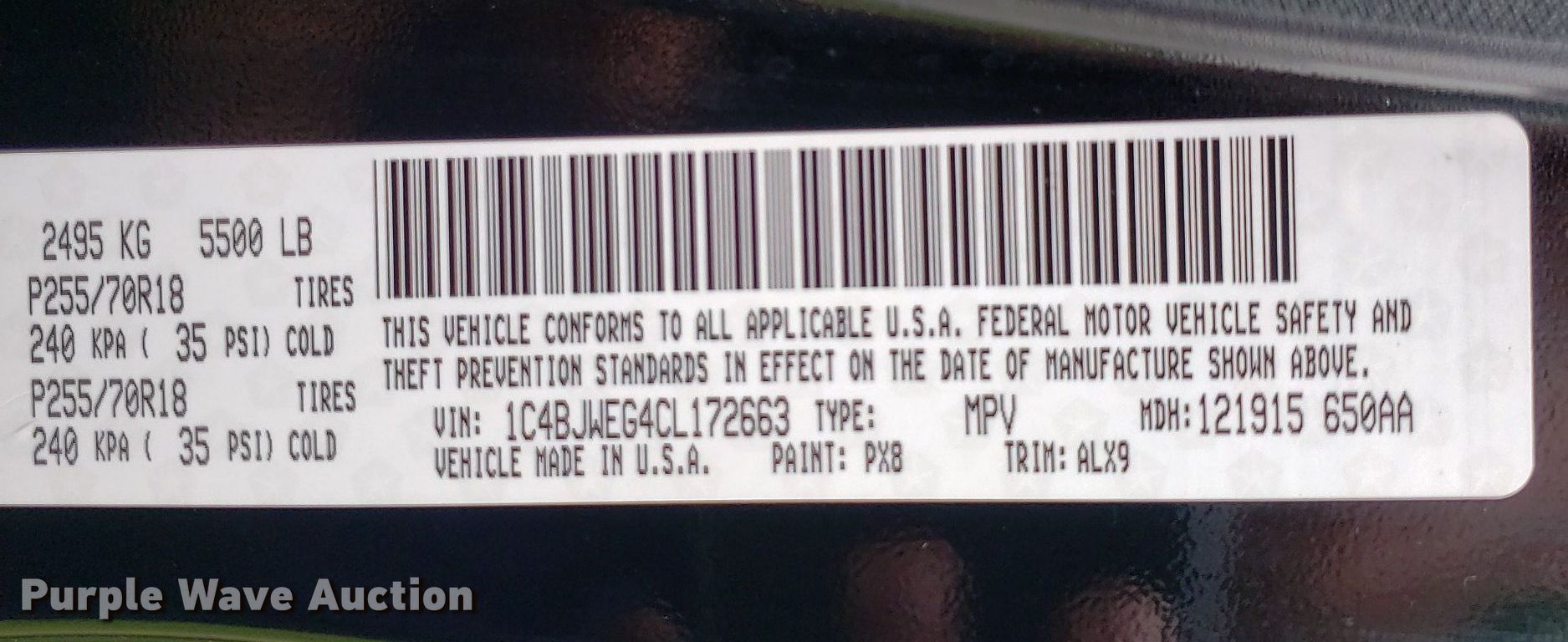 Purple Wave is selling a used Passenger Vehicle in Kansas. This item is a 2012 Jeep Wrangler SUV with the following: Miles: 122,345 on odometer, VIN: 1C4BJWEG4CL172663