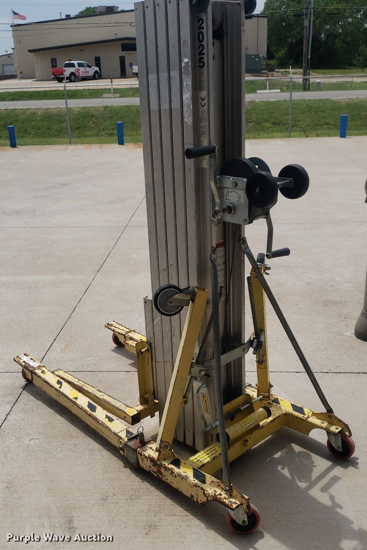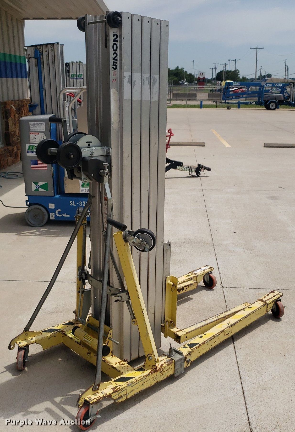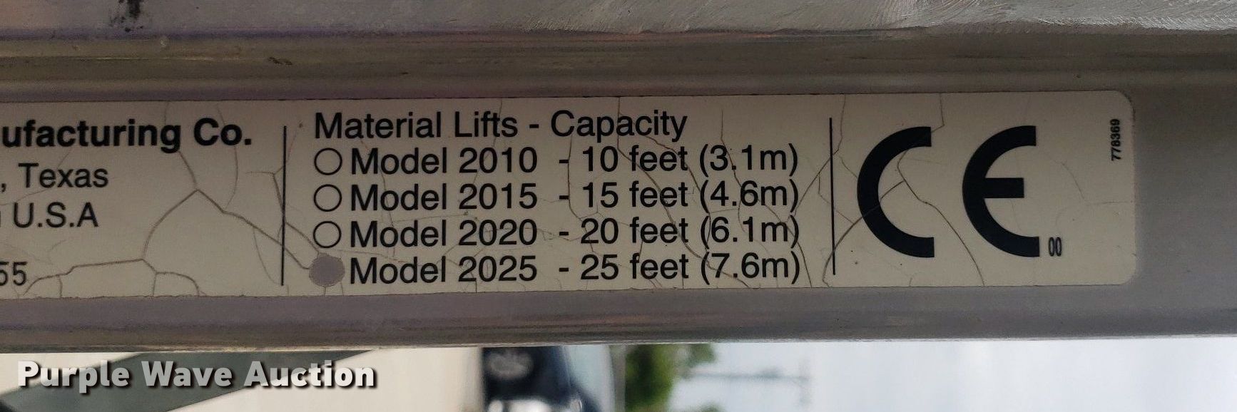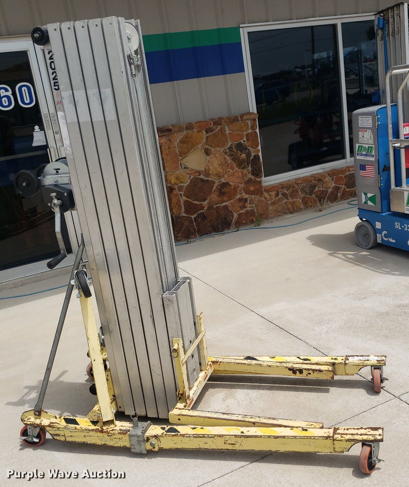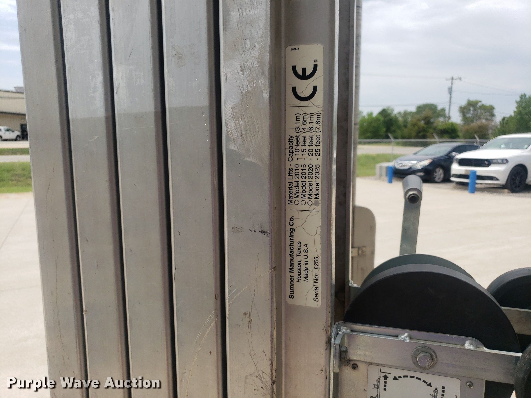 Purple Wave is selling a used Tools in Kansas. This item is a Sumner 2025 material lift with the following: Serial: 6255, Maximum lift height: 25'