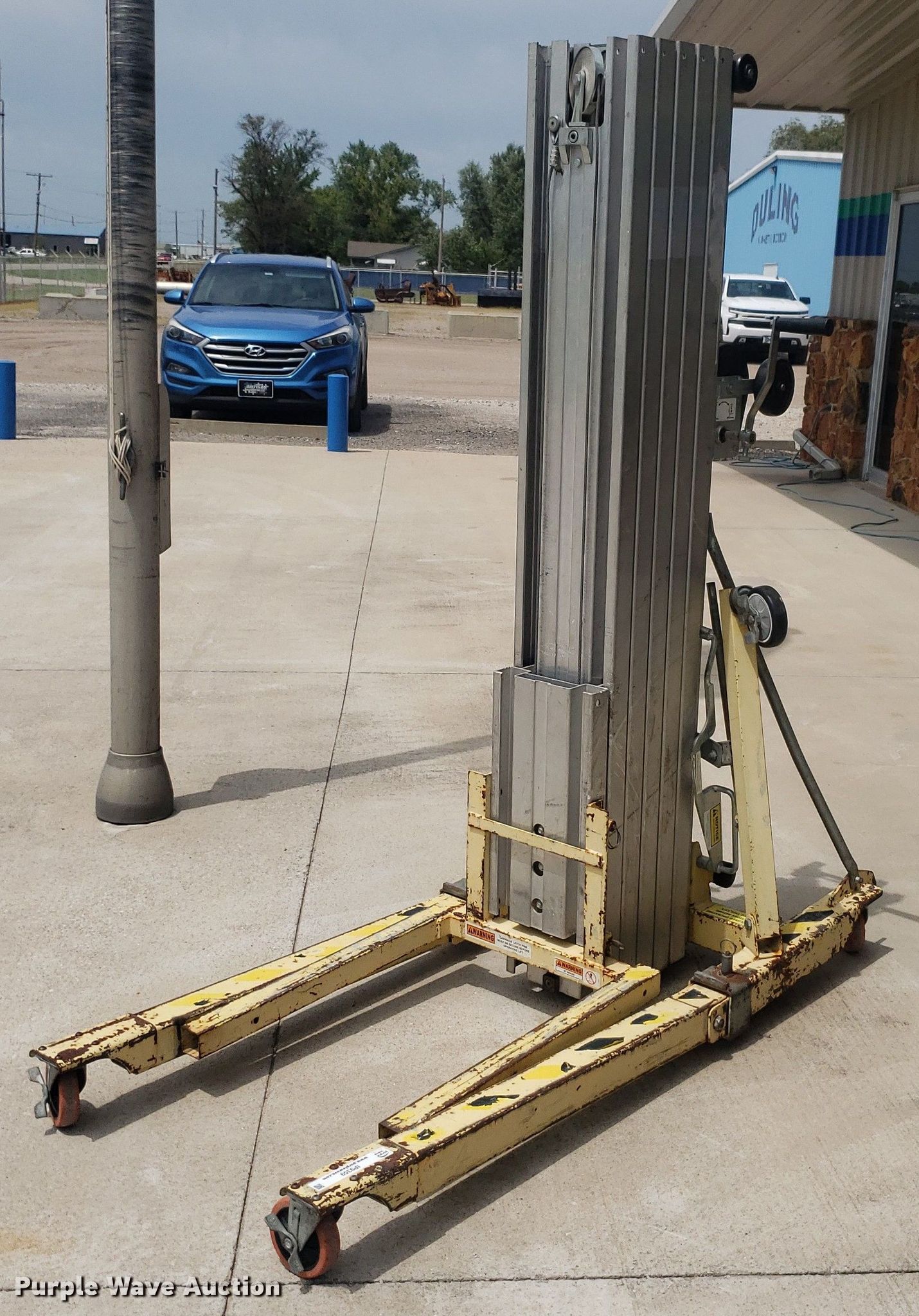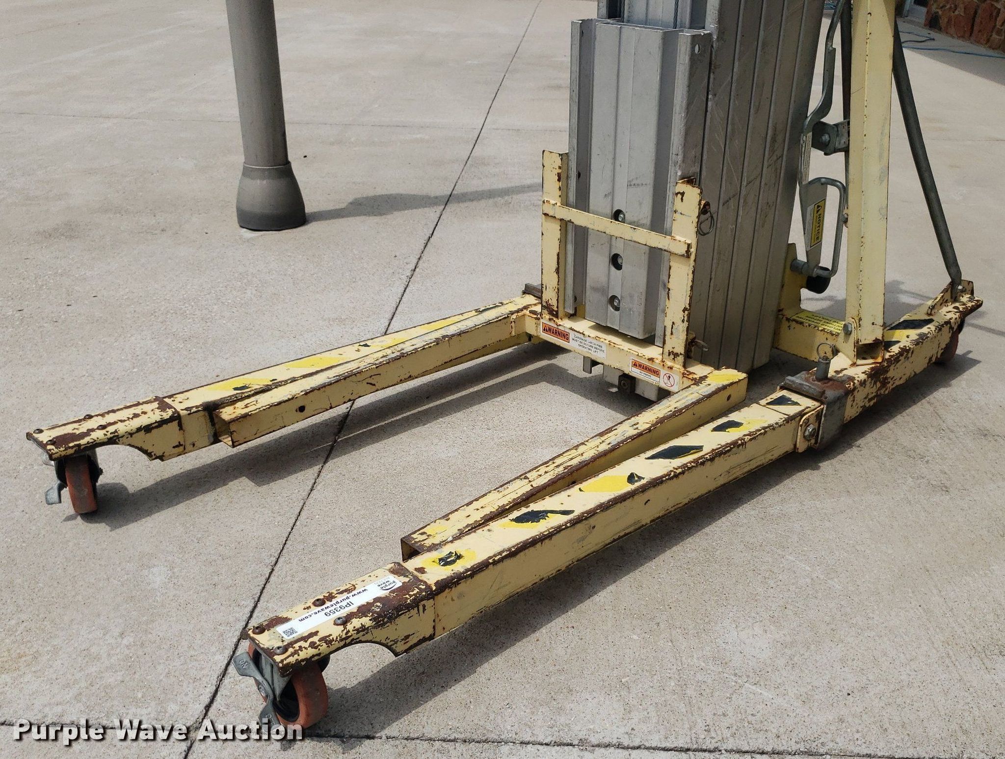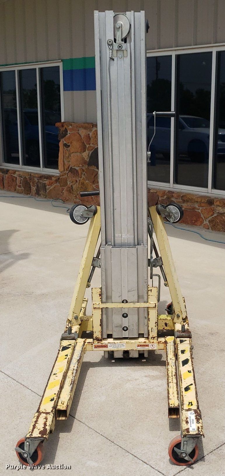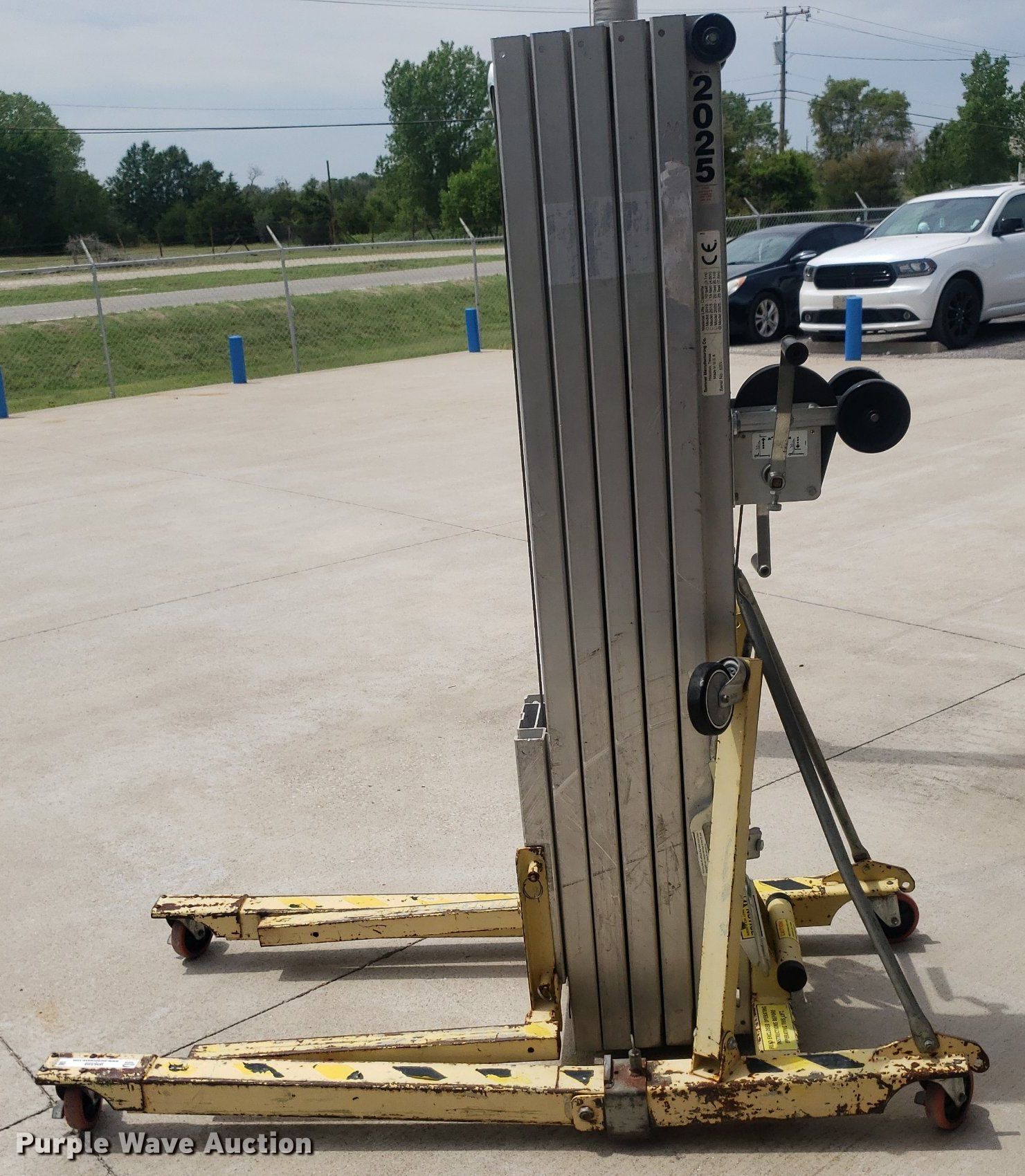 Purple Wave is selling a used Tools in Kansas. This item is a Sumner 2025 material lift with the following: Serial: 6255, Maximum lift height: 25'