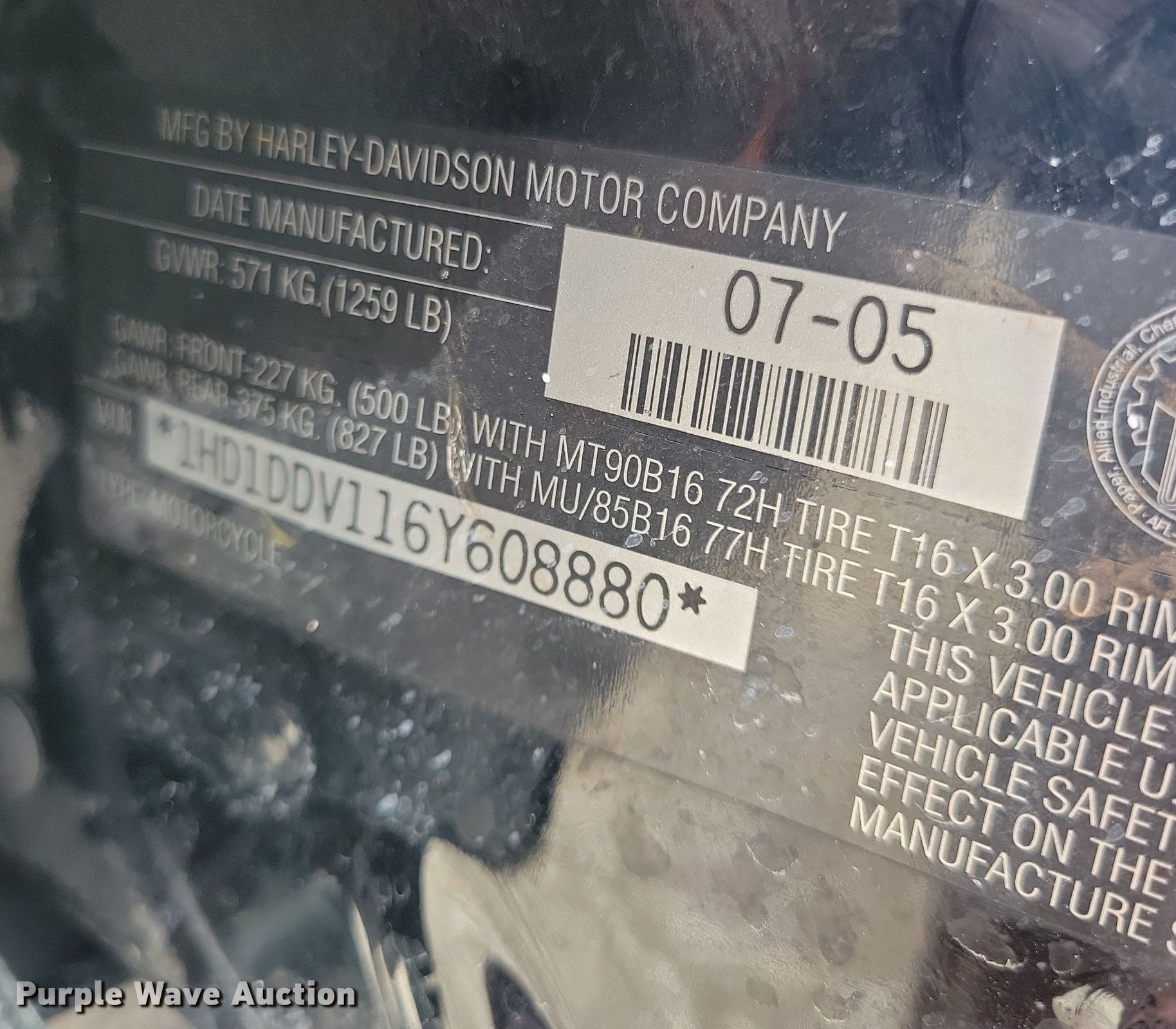2006 Harley Davidson Electra Glide motorcycle. Miles: 42,149 on odometer, VIN: 1HD1DDV116Y608880. Engine Serial: DDV6608880, Displacement: 1450 cc, Cylinders: 2, Fuel type: Gas. Transmission Manual, Speed: 6. Tires Front: MT90B16, Rear: 85B16. Iowa title. Title distribution may be delayed up to 14 days from verification of funds. Russ's Construction, Inc. 2169 235th Street. Fort Dodge, IA 50501