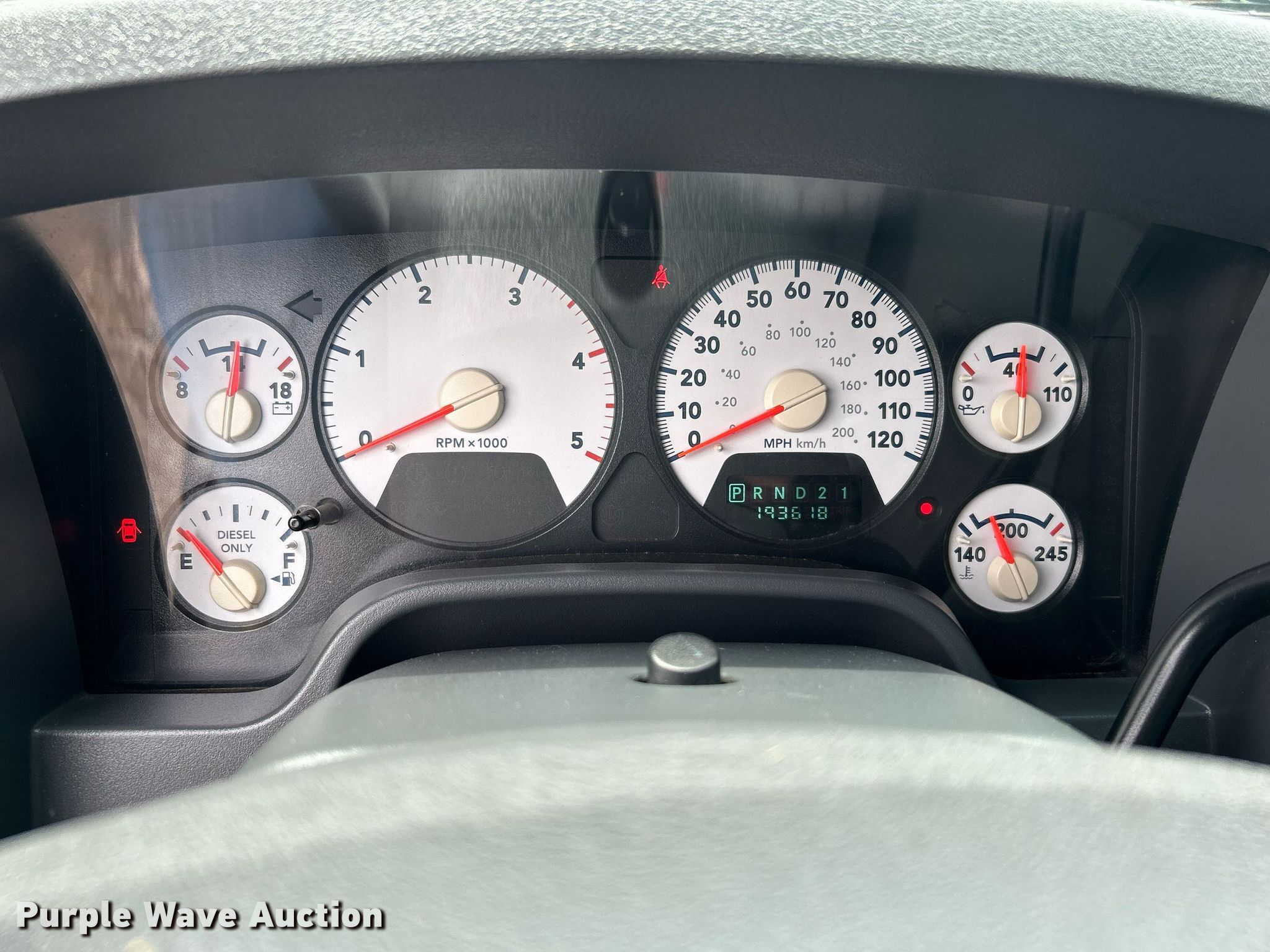 2006 Dodge Ram 2500 Mega Cab pickup truck. Miles: 193,618 on odometer, VIN: 3D7KS29C46G201549. Engine Displacement: 5.9L L6 OHV, Cylinders: 6, Fuel type: Diesel. Transmission Automatic, Four wheel drive. Interior AC, Heat, Seat: Power driver, Heated mirrors, Power windows, Power locks, Cruise control. Tires Size: 35x12.50R20LT. Oklahoma title. Title distribution may be delayed up to 14 days from verification of funds. 15107 North 137th East Avenue. Collinsville, OK 74021