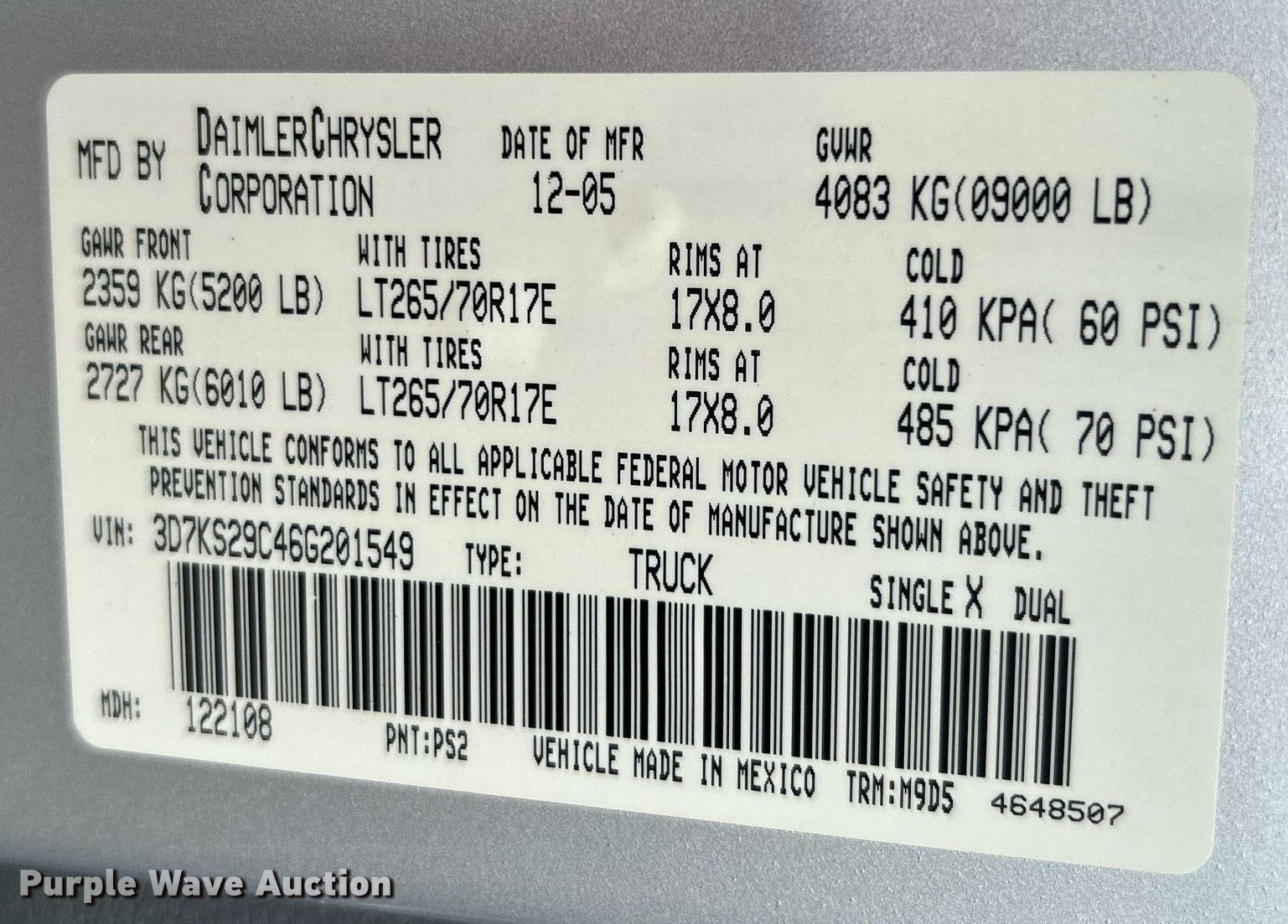 Take a look at this used 2006 Dodge Ram 2500 Mega Cab pickup truck being sold on August 2nd, 2023 in the SOLD! August 02 Vehicles and Equipment Auction made by Dodge. Take a look at all of the item information below or take a look at similar auctions for Pickups and Vans.