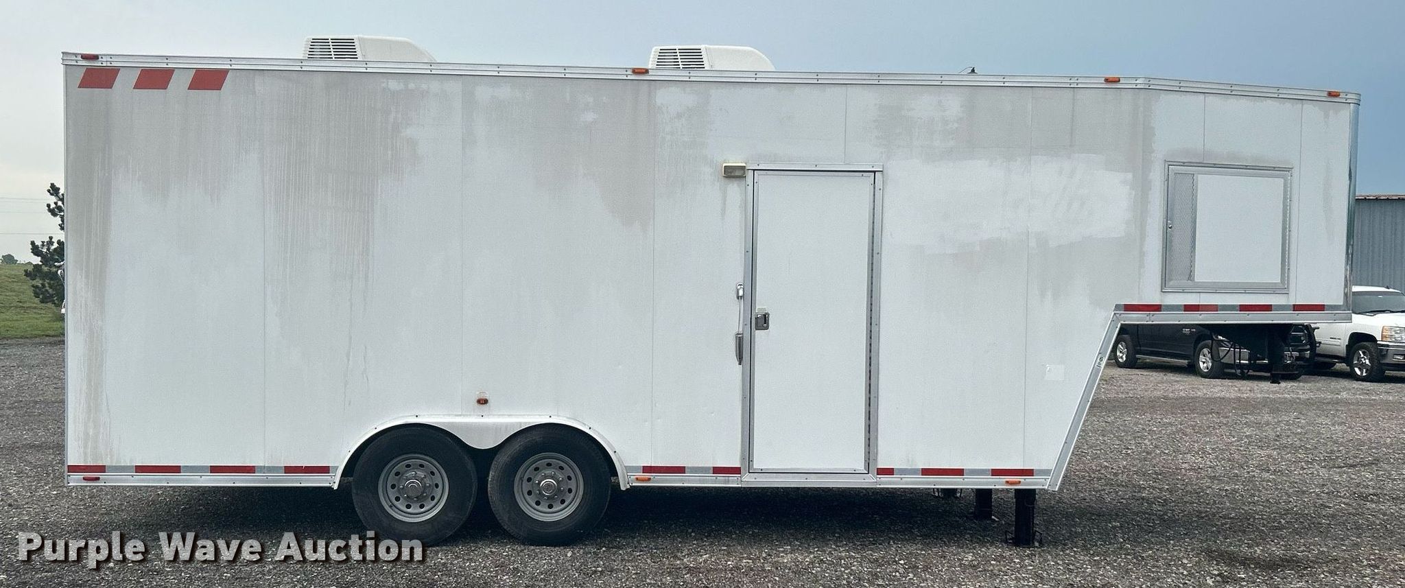 2014 Vintage Trailers, LTD. OL828GN enclosed cargo trailer. VIN: 5BWUV2824E1000179. Dimensions Overall: 28' L x 101" W, Body: 21' 6" L x 99" W. Features Storage cabinets , Electrical outlets, (2) AC units. Chassis Hitch: Gooseneck, Landing gear: Dual, Suspension: Spring, Brakes: Electric, Axles: Tandem, GVWR: 12,000 lbs, GAWR: 6,000 lbs. Tires Size: 235/85R16. Oklahoma title. Title distribution may be delayed up to 14 days from verification of funds. 15107 North 137th East Avenue. Collinsville, OK 74021