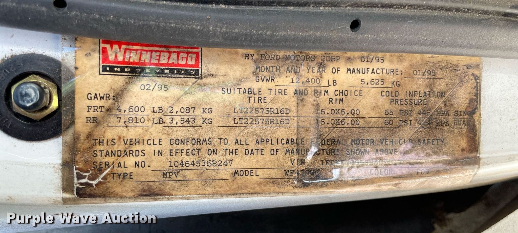 Purple Wave is selling a used RV or Camper in Kansas. This item is a 1995 Winnebago Minnie Winnie RV with the following: Miles: 45,666 on odometer, VIN: 1FDKE30G6SHA89517