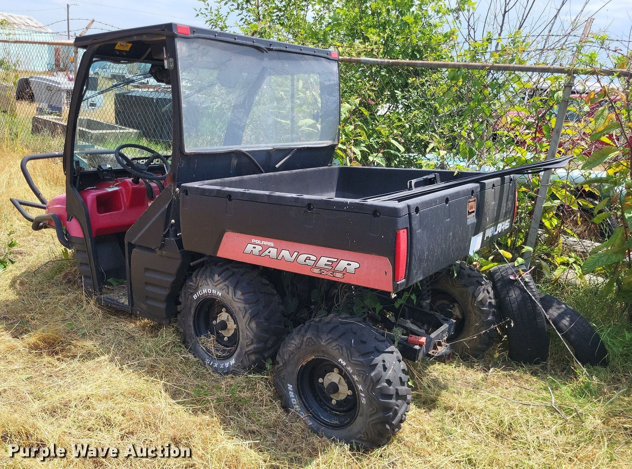 2008 Polaris Ranger 6x6 utility vehicle. Miles: Unknown, VIN: 4XARF68A984725338. Engine Polaris , Serial: 0120354523041, Displacement: 700, Cylinders: 2, Fuel type: Gas, Electric start. Transmission CVT. Chassis Four wheel drive. Operators station Enclosed cab, Canopy, Passengers: 3. Features Grill guard, Receiver hitch, Dump bed 46" L x 57" W, Dump bed type: Manual. Tires Rear: AT25x10R12. Notes Driver side door removed but included, Front tires and wheels missing, Unknown operating condition. Transfer of ownership documentation will be a bill of sale. City of Bernie. Bernie, MO 63822