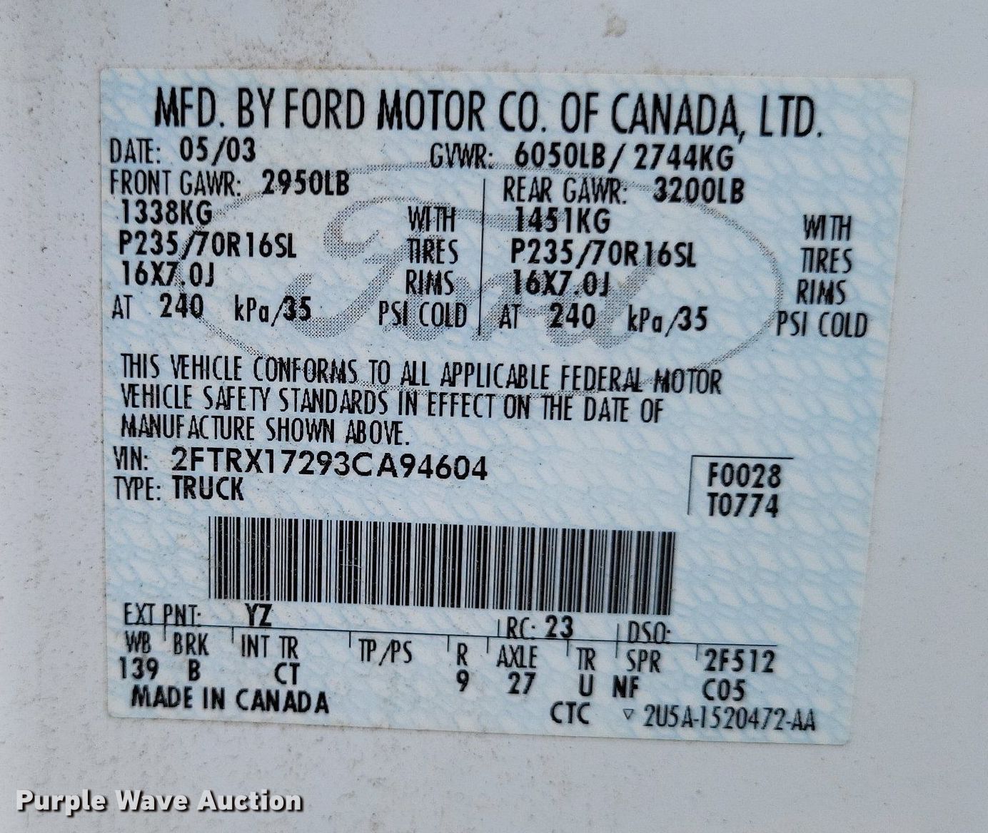 Purple Wave is selling a used 1/2 Ton Pickup or Van in Missouri. This item is a 2003 Ford F150 XL SuperCab pickup truck with the following: Miles: Unknown, VIN: 2FTRX17293CA94604