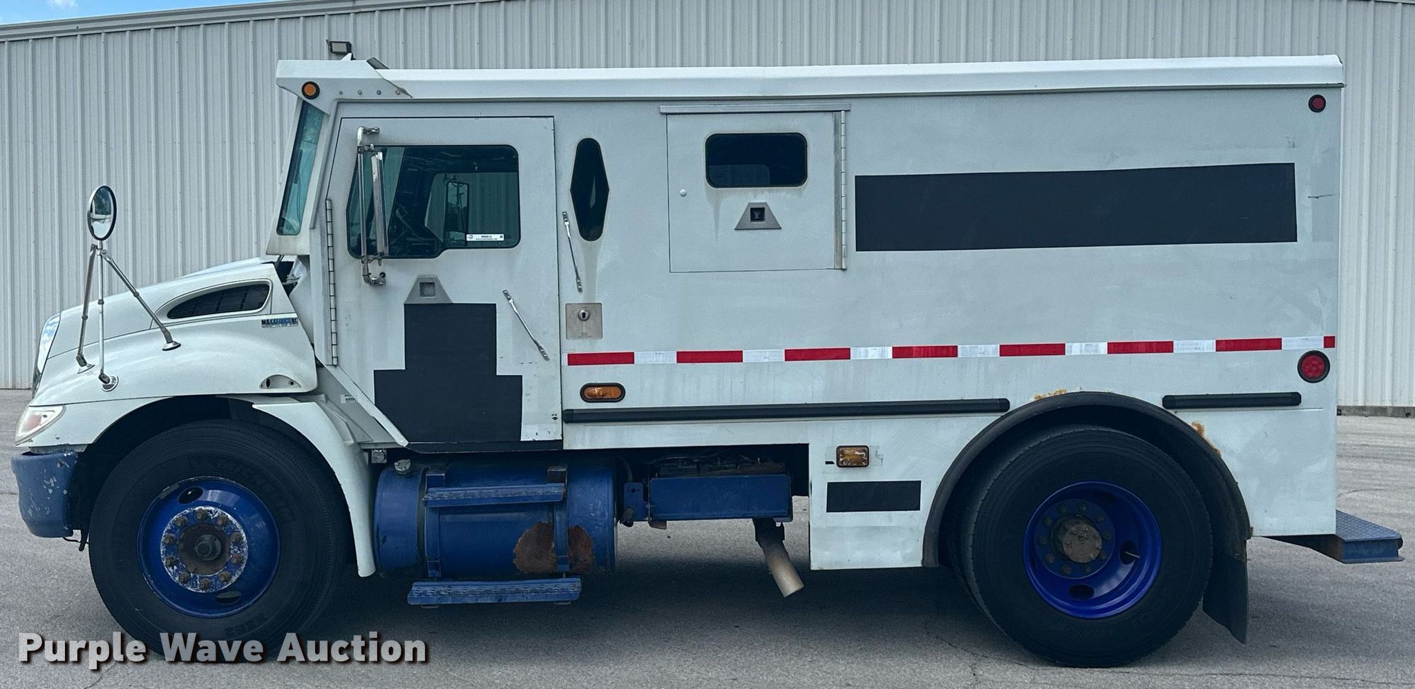 2010 International 4300 armored truck. Miles: 492,302 on odometer, VIN: 1HTMMAAM7AH273360. Engine International Maxxforce DT, Displacement: 7.6L, Cylinders: 6, Fuel type: Diesel. Transmission Automatic. Chassis Axles: Single, Suspension: Spring, Brakes: Hydraulic, Wheelbase: 370". Interior AC, Heat, Heated mirrors, Cruise control, Auxiliary controls. Features Box bed Floor: Steel. Tires Size: 11R22.5. Notes Drivers side window cracked. Oklahoma title. Title distribution may be delayed up to 14 days from verification of funds. 13780 E 146th St N. Collinsville, OK 74021