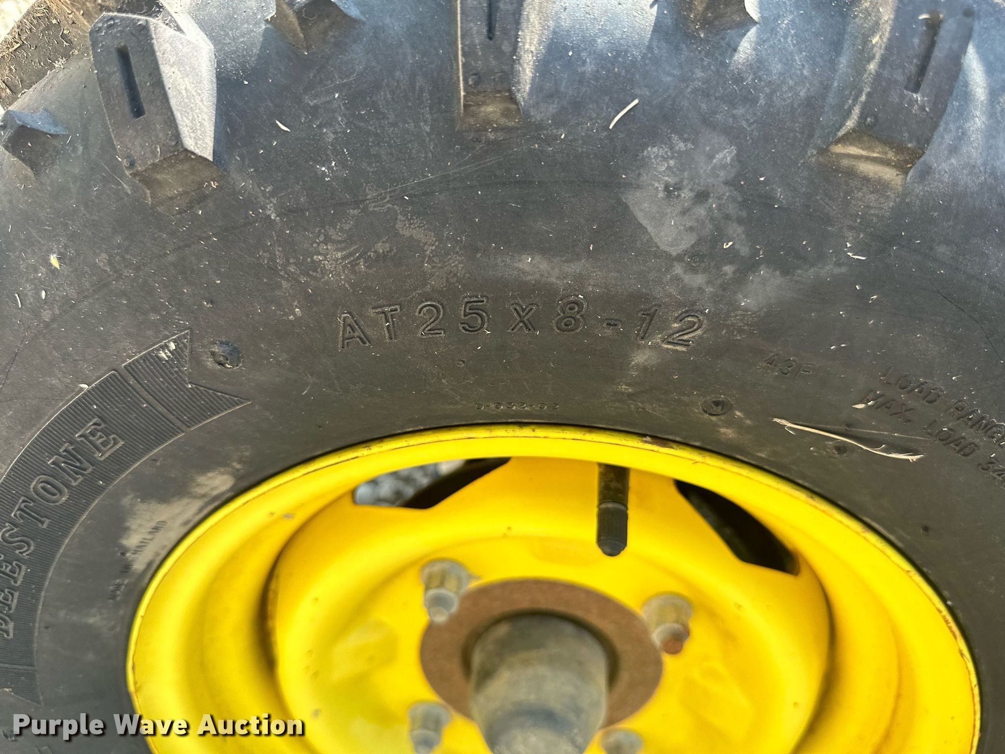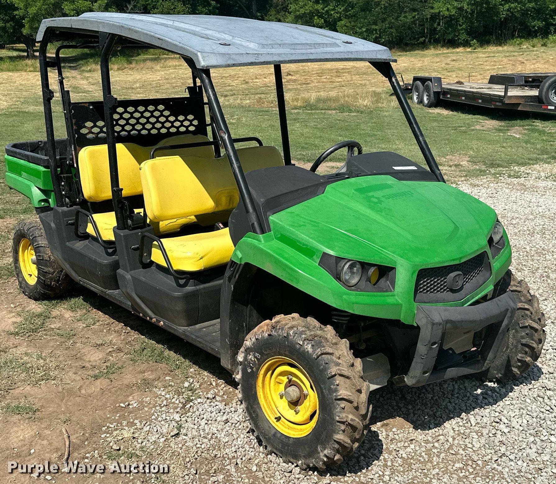2014 John Deere 550 S4 utility vehicle. Hours: 1,701 on meter, Serial: 1M0550FBKEM09558. Engine Cylinders: 2, Fuel type: Gas. Transmission Hydrostatic. Chassis Four wheel drive. Operators station Canopy, Passengers: 3. Features Dump bed 48" L x 32" W, Dump bed type: Manual. Tires Size: 25x8-12. Notes Non-operational transmission. Transfer of ownership documentation will be a bill of sale. Oologah, OK 74053