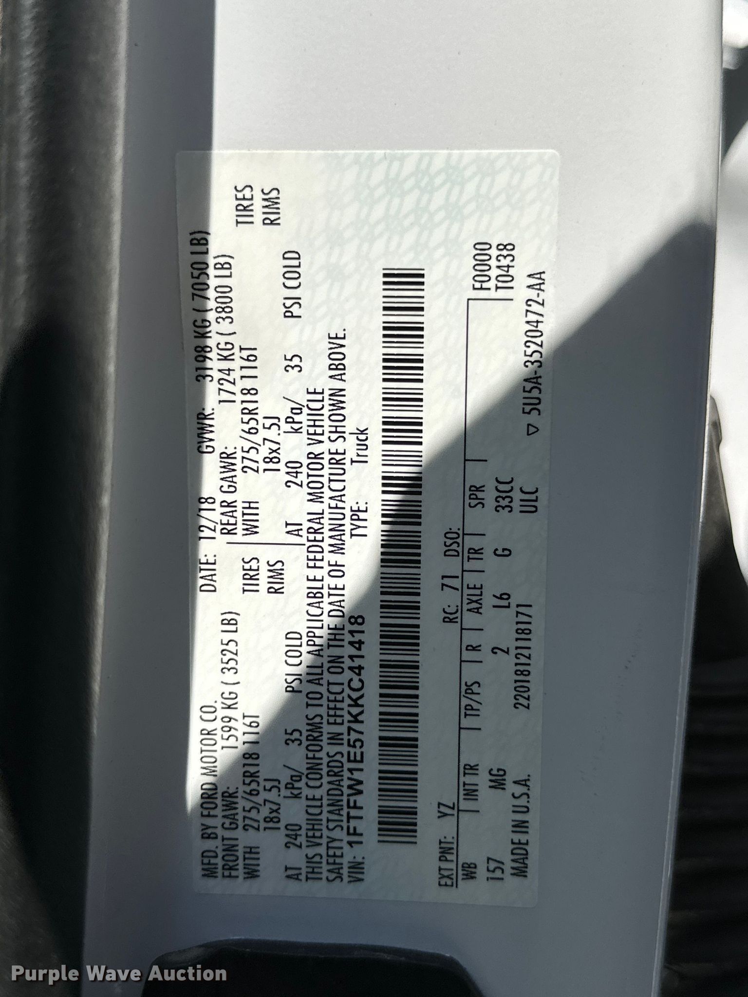 Purple Wave is selling a used 1/2 Ton Pickup or Van in Arkansas. This item is a 2019 Ford F150 SuperCrew pickup truck with the following: Miles: 154,208 on odometer, VIN: 1FTFW1E57KKC41418