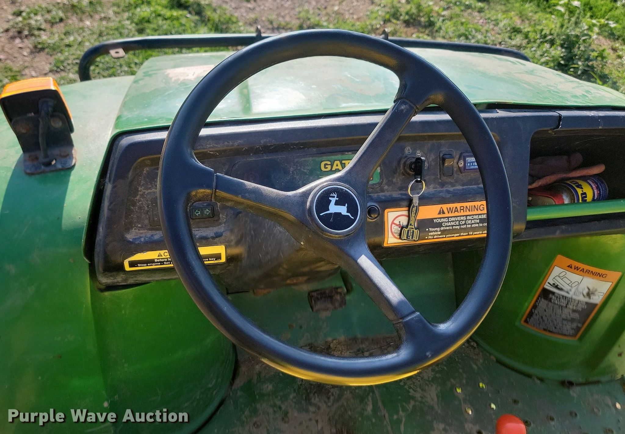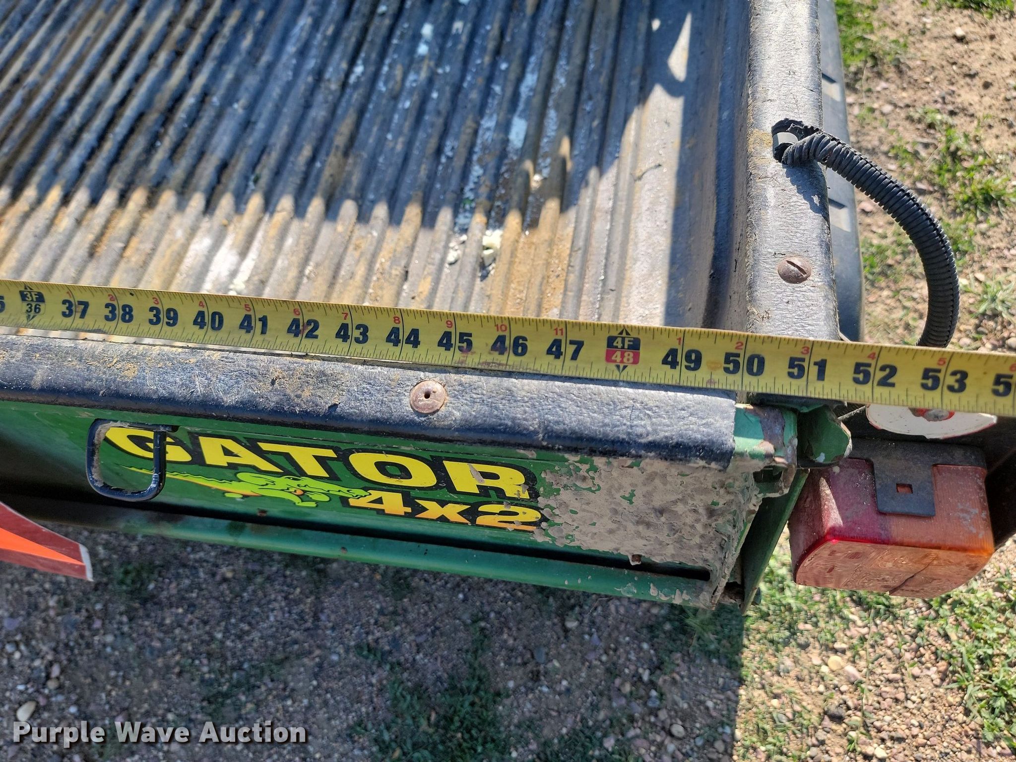 1997 John Deere Gator 4x2 utility vehicle. Hours: 2,823 on meter, Serial: W004X2X025738. Engine Kawasaki, Cylinders: 1, Fuel type: Gas, Electric start. Transmission Automatic. Operators station Passengers: 2. Features Dump bed 40" L x 51" W, Dump bed type: Manual. Tires Front: 22.5x10-8, Rear: 25x12-9. Transfer of ownership documentation will be a bill of sale. 30876 475th Avenue. Alcester, SD 57001