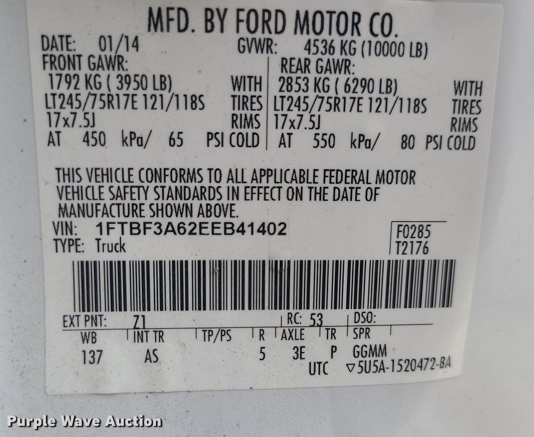 - VIN: 1FTBF3A62EEB41402