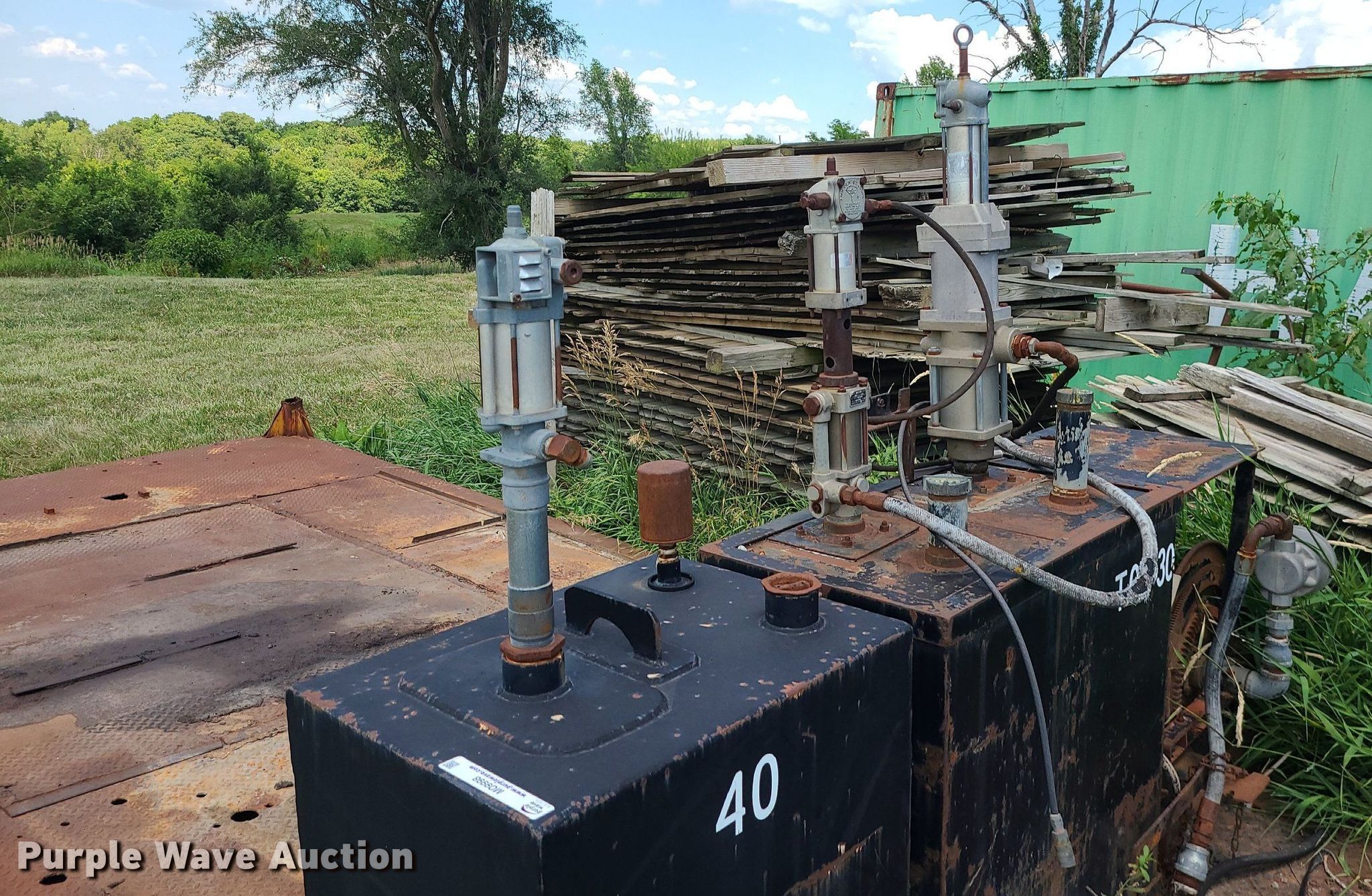 Purple Wave is selling a used Truck Part and Attach. in Missouri. This item is a Truck accessories with the following: Oil tanks, Pneumatic pumps, Hose reel, (2) 5' x 24" x 24" toolboxes, 6' W headache rack, Toolbox