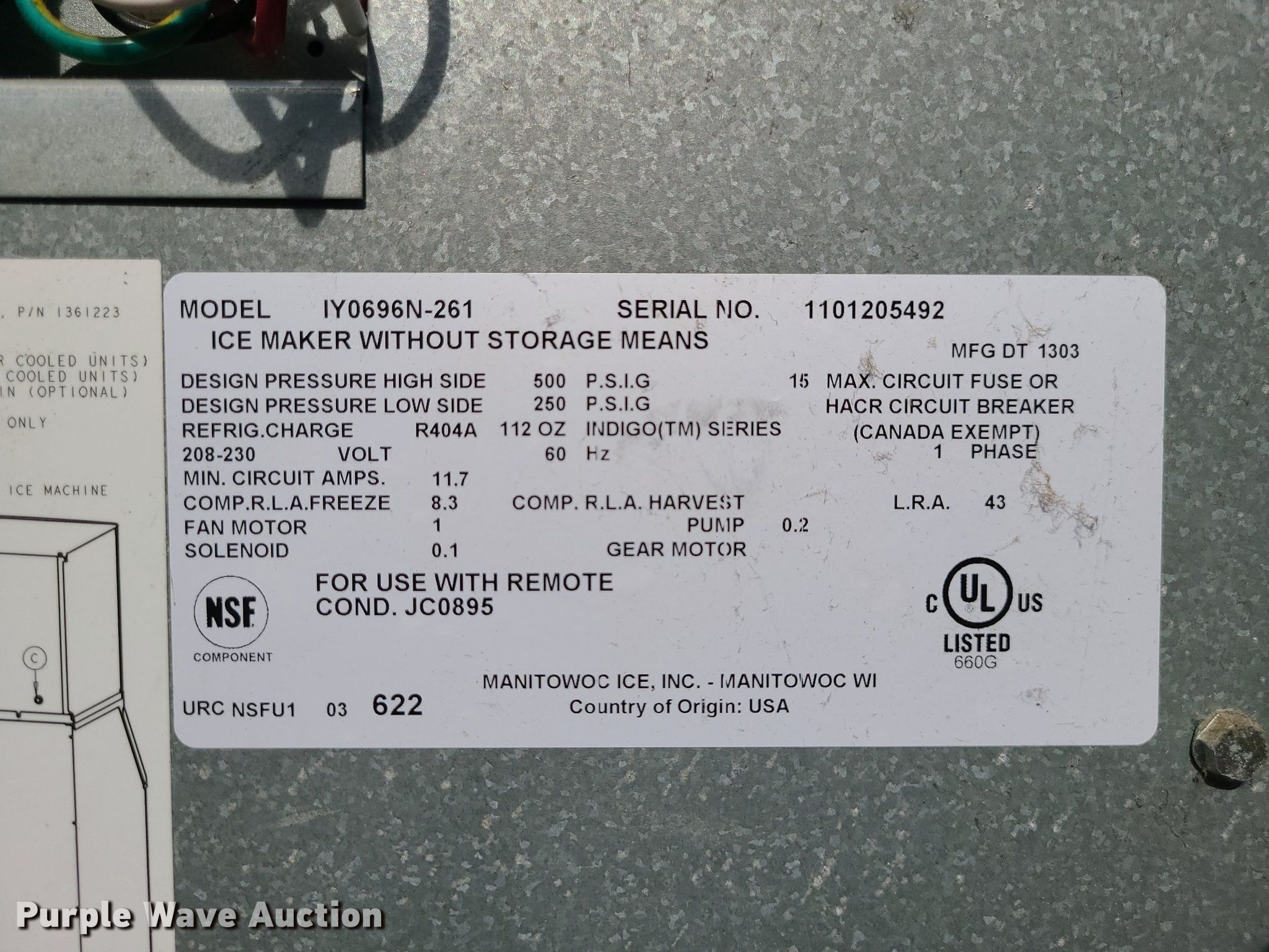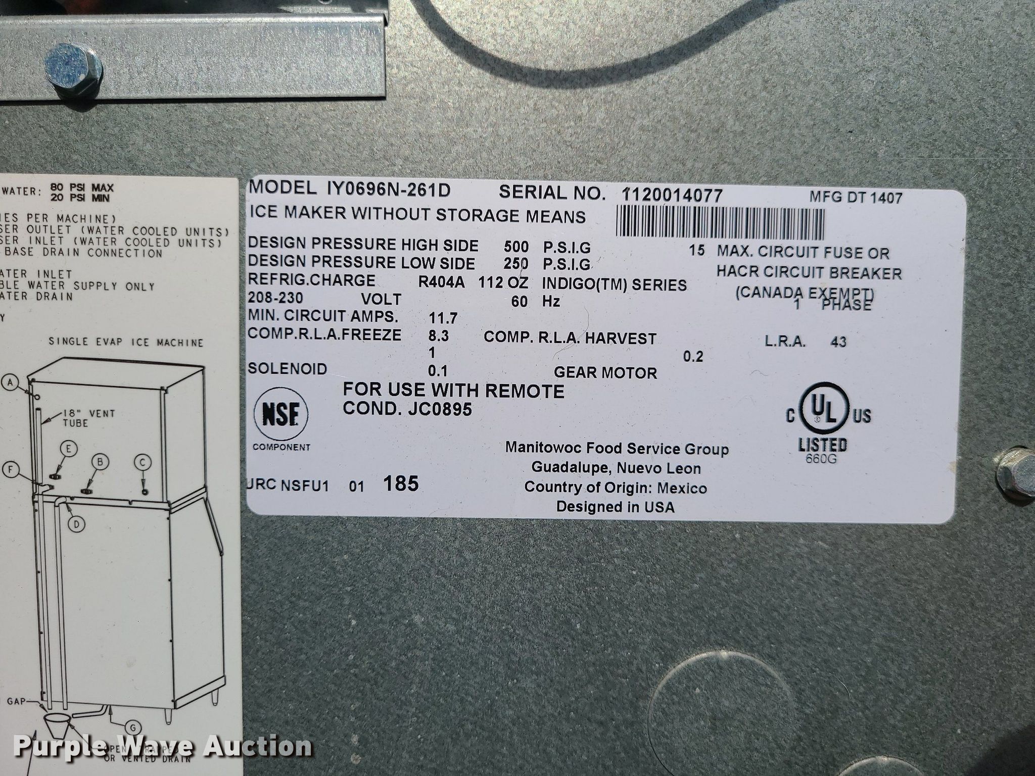Purple Wave is selling a used Appliances in Missouri. This item is a (2) Manitowoc B570 ice makers with the following: 208V, Condensers not included