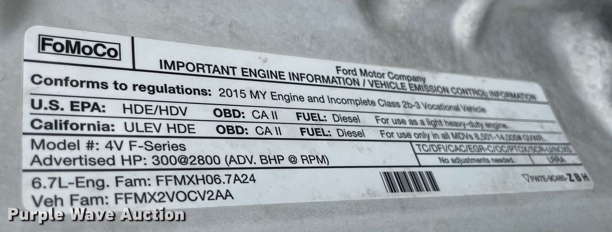 2015 Ford F350 Super Duty Crew Cab flatbed pickup truck. Miles: 251,660 on odometer, VIN: 1FD8W3HT2FEA10442. Engine Displacement: 6.7L V8 OHV, Cylinders: 8, Fuel type: Diesel. Transmission Automatic, Four wheel drive. Interior AC, Heat, Heated mirrors, Power windows, Power locks, Cruise control. Features Flatbed 10' L x 93" W, Hitch: Gooseneck. Tires Size: 245/75R17. Notes Dash warning indicator: Check engine, Airbag, Windshield chipped or cracked, Back seat missing, Dead battery. Oklahoma title. Robinson Construction, LLC. Limestone Road. Wilburton, OK 74578