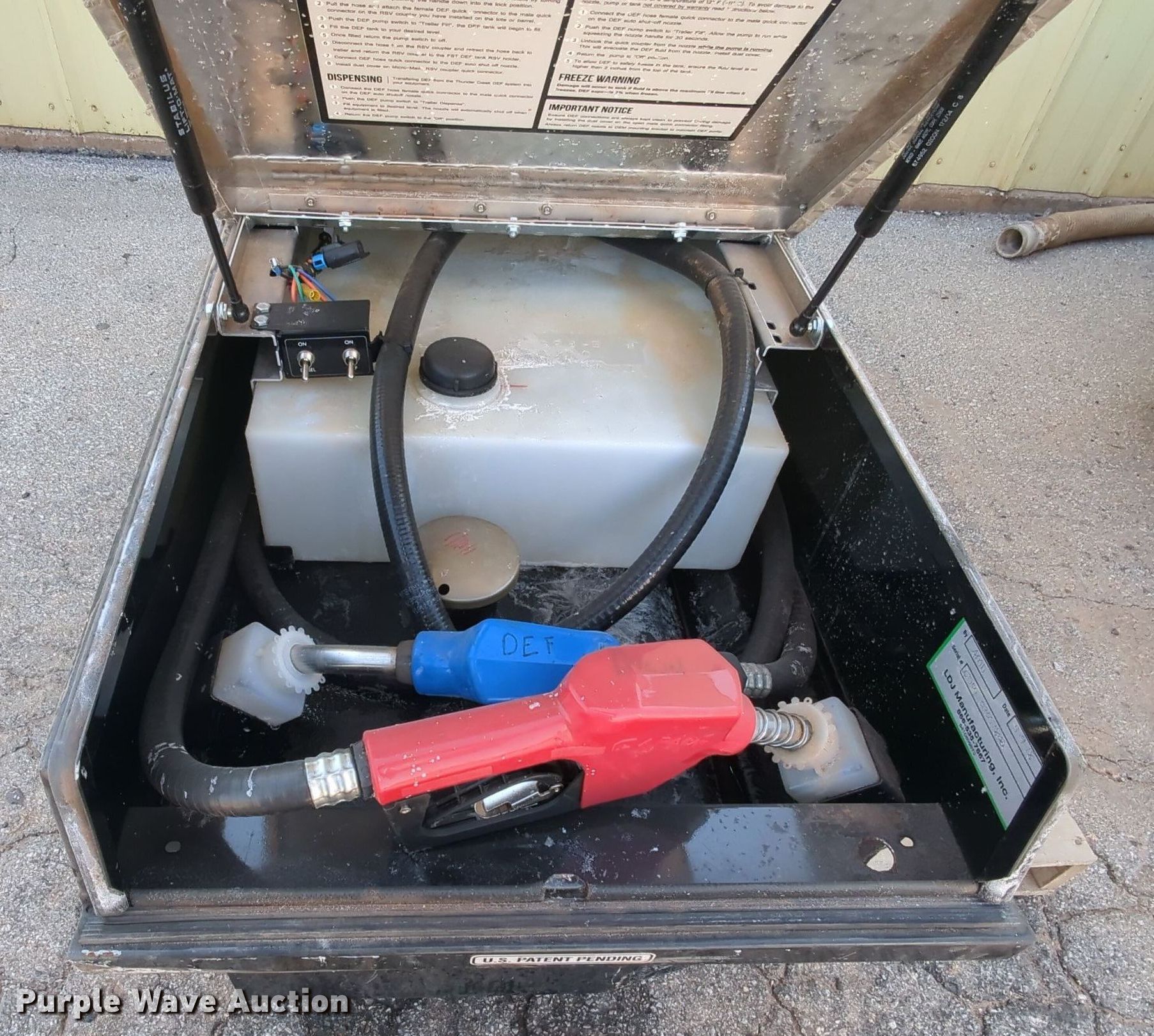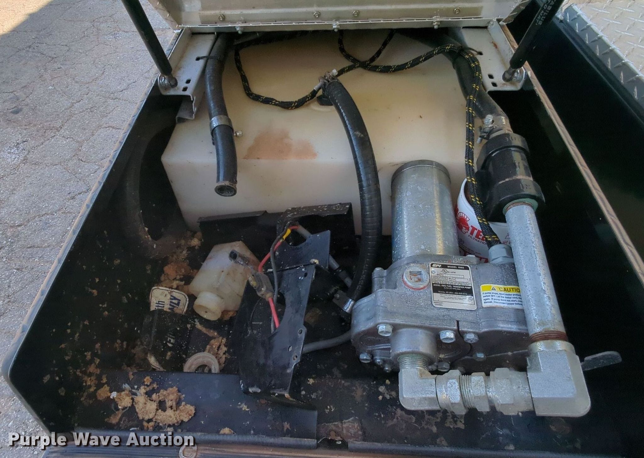 (3) Thunder Creek auxiliary DEF tank/toolboxes. Dimensions: 68" L x 22" W x 29 H. Features (3) GPI 150S transfer pump, (3) nozzles , (3) poly tanks, Unknown operating condition. Silver Star Construction Co., Inc.. 2401 South Broadway Avenue. Moore, OK 73160