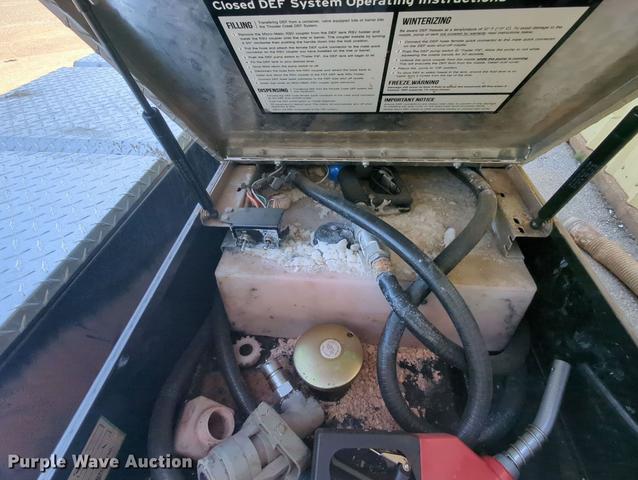 Purple Wave is selling a used Truck Part and Attach. in Oklahoma. This item is a (3) Thunder Creek auxiliary DEF tank/toolboxes with the following: Dimensions: 68" L x 22" W x 29 H