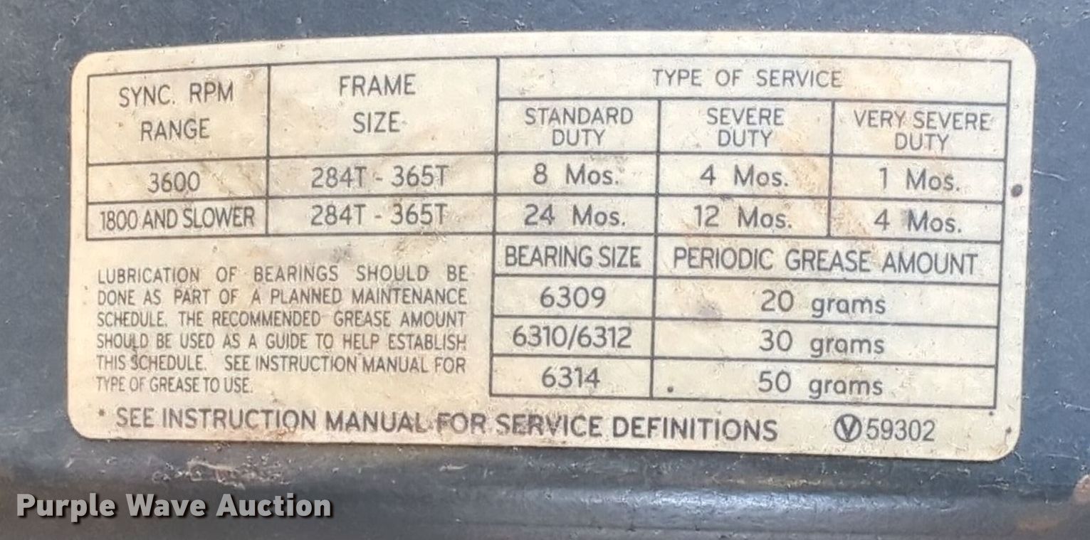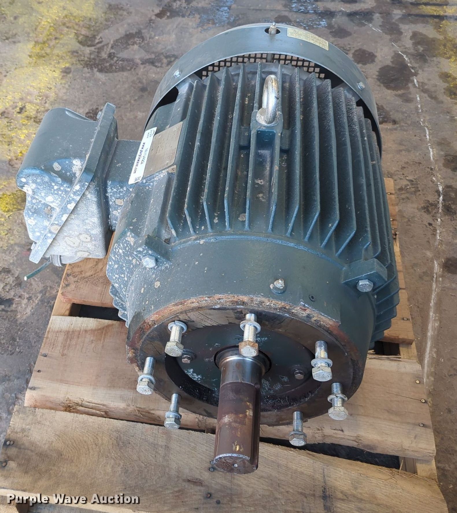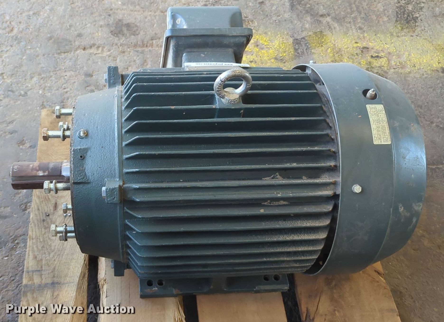 Purple Wave is selling a used Electric Motor in Oklahoma. This item is a Toshiba 0854SDR42A-P electric motor with the following: Serial: 19090237175, HP: 75, Volts: 230/480, Phase: Three