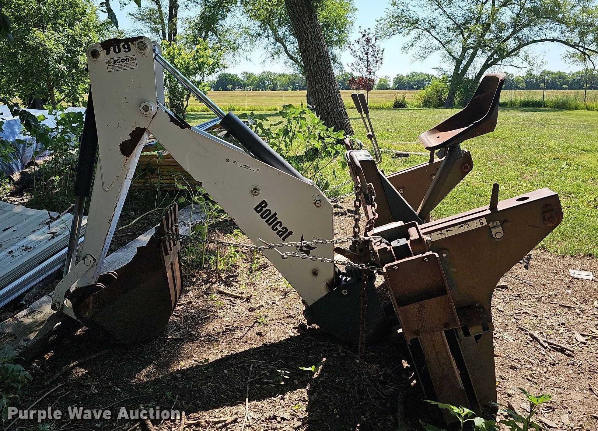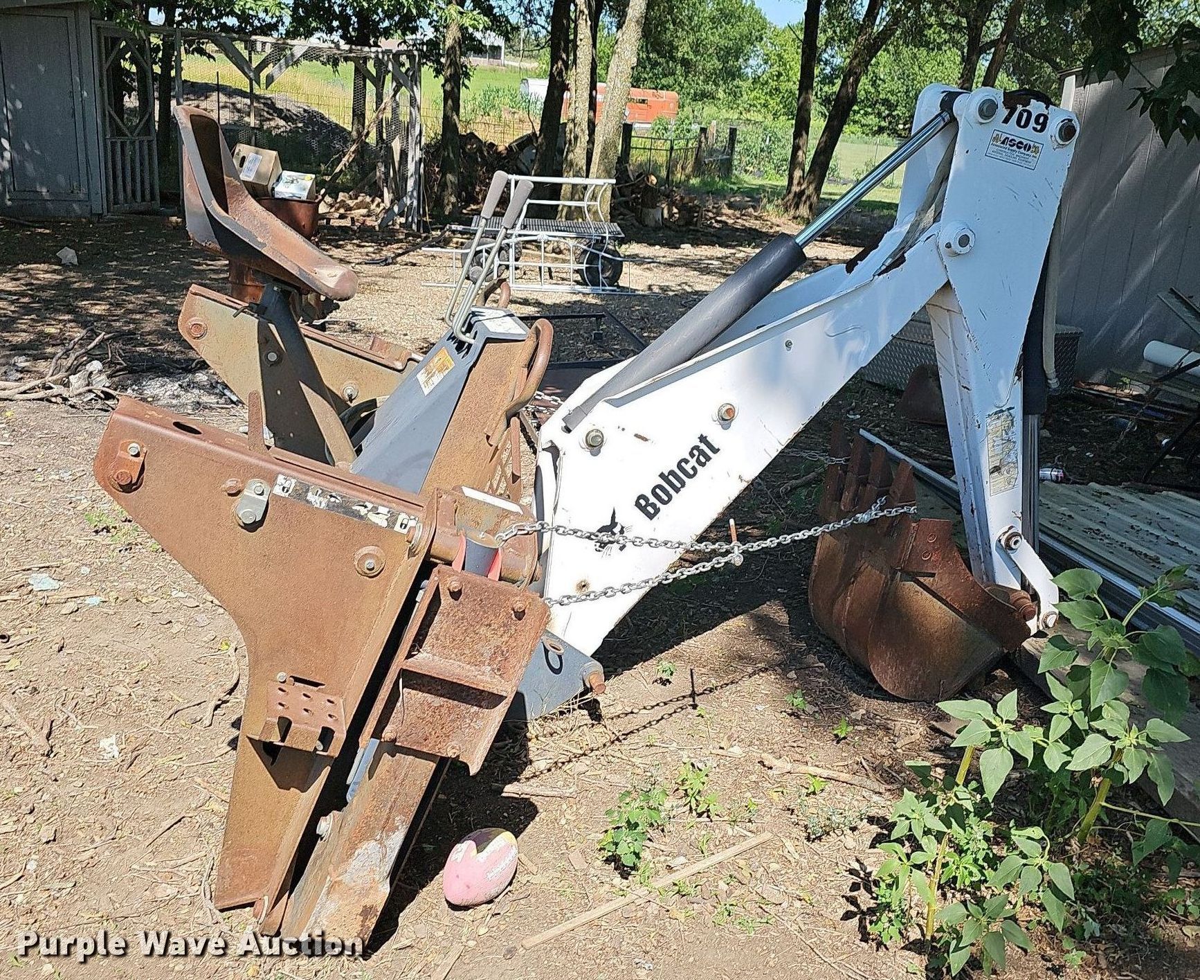 Purple Wave is selling a used Skid Steer Attach. in Kansas. This item is a Bobcat 709FDS skid steer backhoe with the following: Serial: 584102848, Bucket width: 16", Teeth: Bolt-on, Stick length: 45"